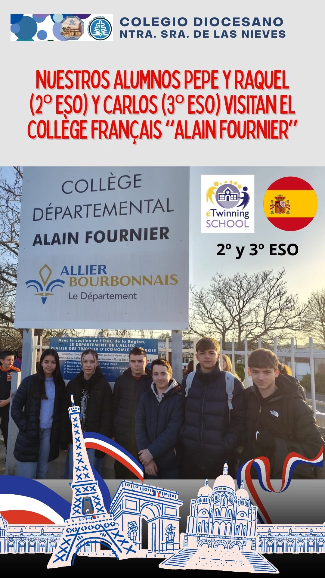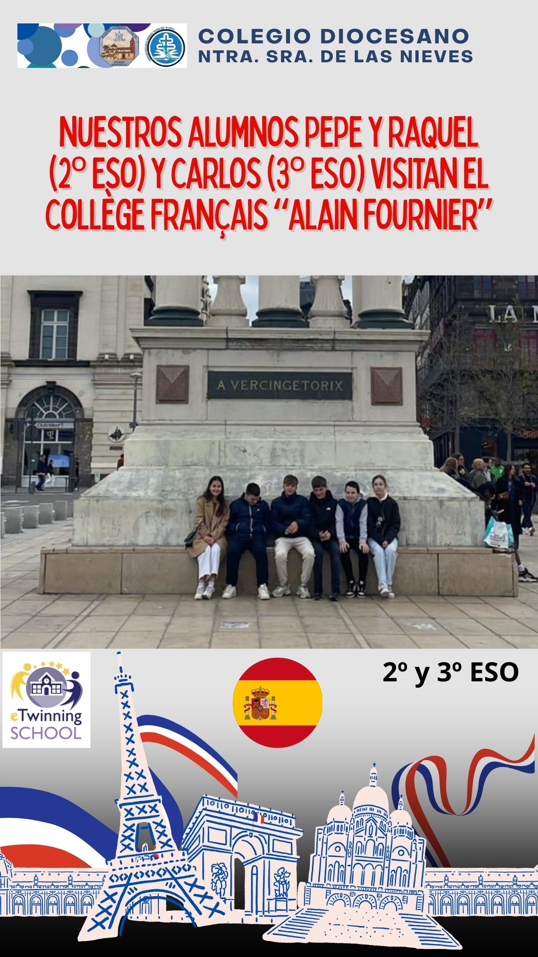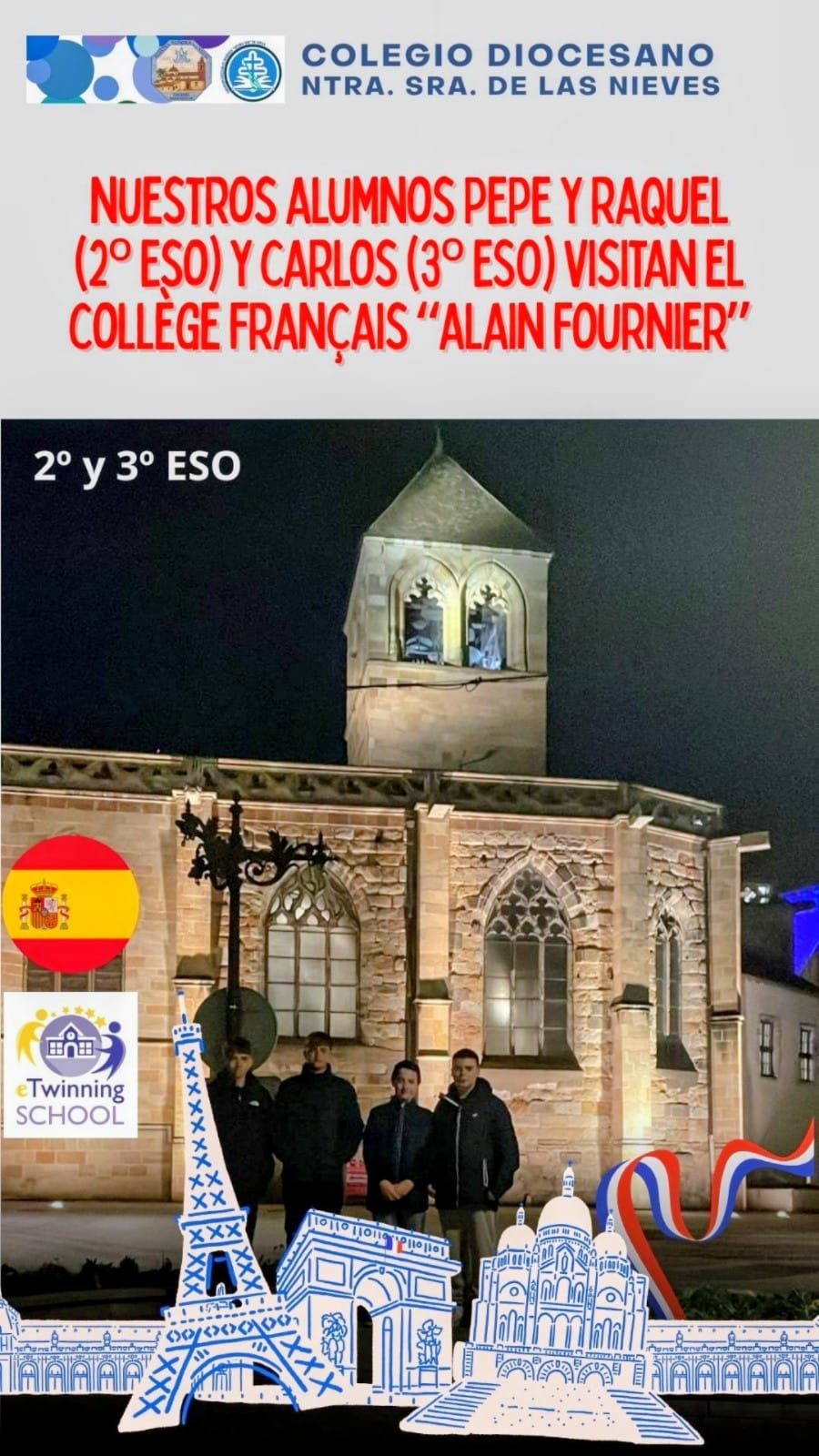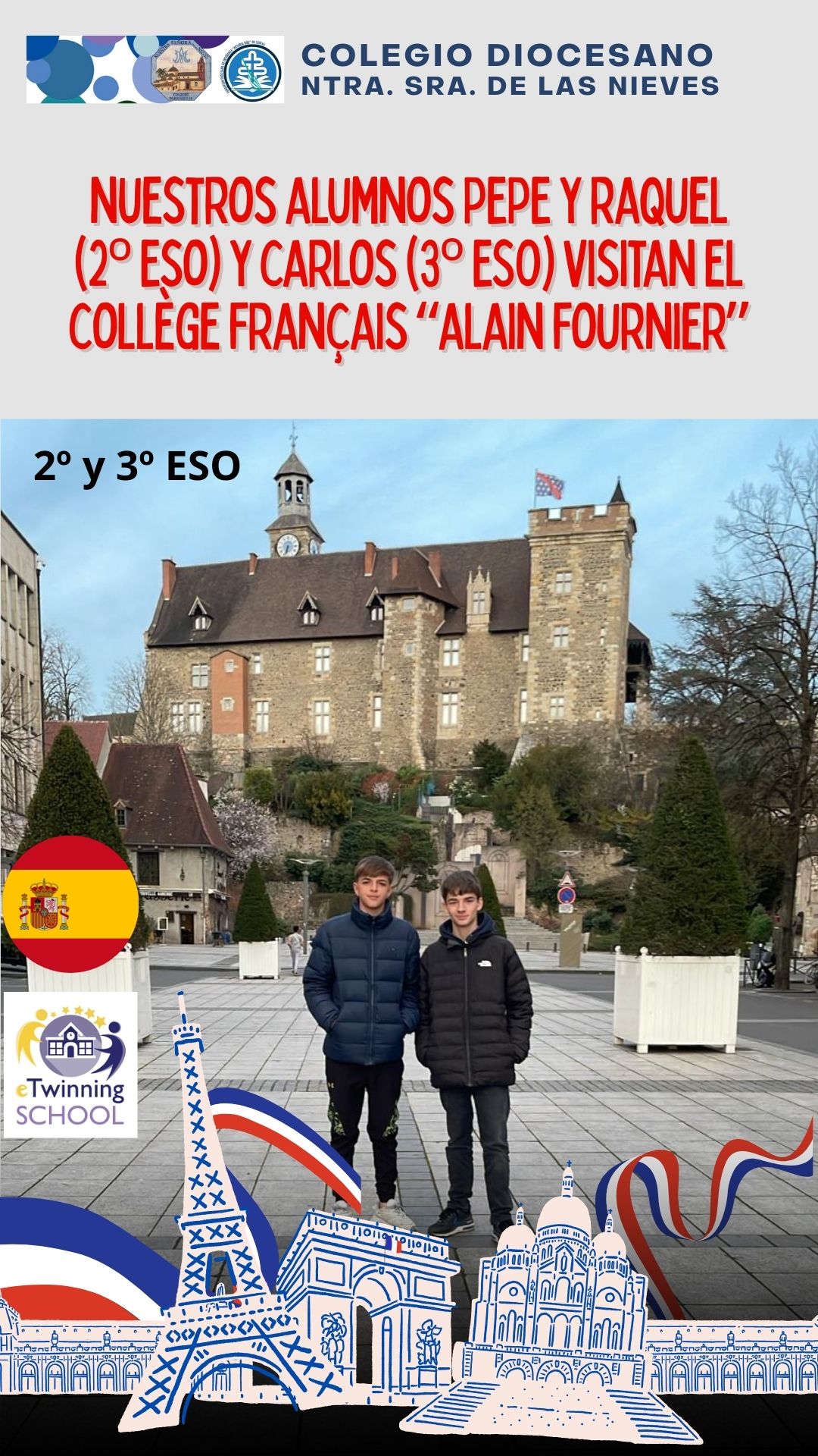 ✨ ¡Nuestros alumnos Pepe Tejero y Raquel Piedra (2° ESO) y Carlos Sánchez (3° ESO) visitan el Collège Francés Alain Fournier!