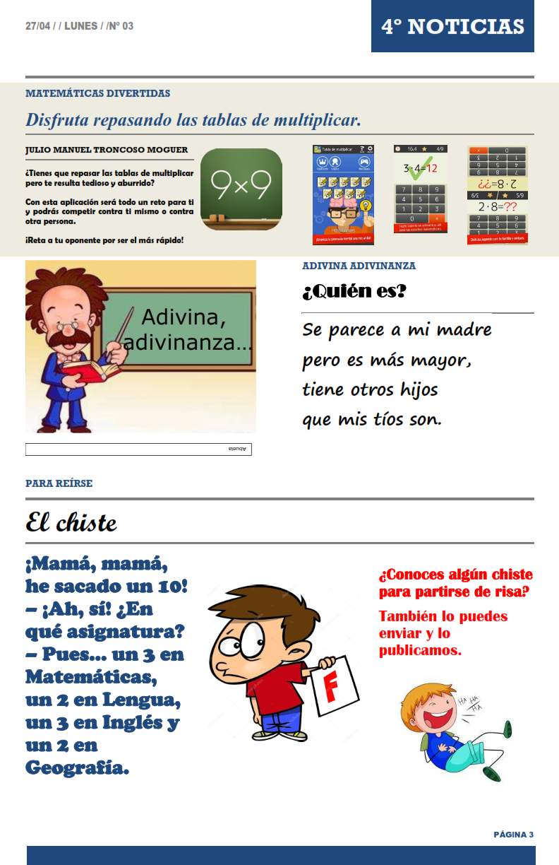 Comenzamos la semana, con la publicación de un nuevo número del periódico «4º NOTICIAS».
