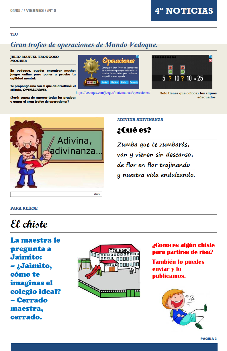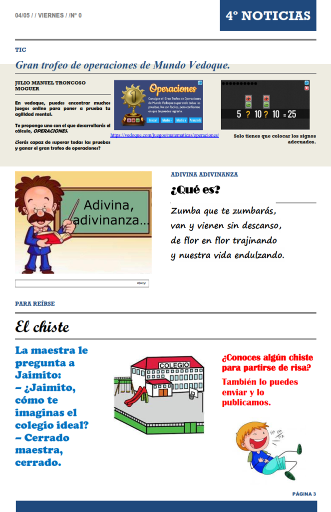 Comenzamos la semana, con la publicación de un nuevo número del periódico «4º NOTICIAS».