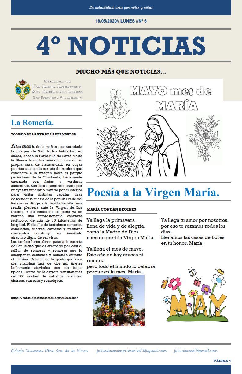 Las circunstancias que nos están tocando vivir, nos dan la oportunidad de contar nuestras vivencias, dar nuestras opiniones o crear noticias. De este modo, diferentes niños y niñas, de forma voluntaria, siguen aportando sus textos para que cada semana se publique un nuevo ejemplar.