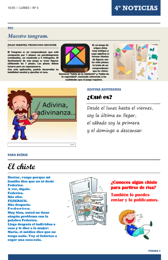Comenzamos la semana, con la publicación de un nuevo número del periódico «4º NOTICIAS».