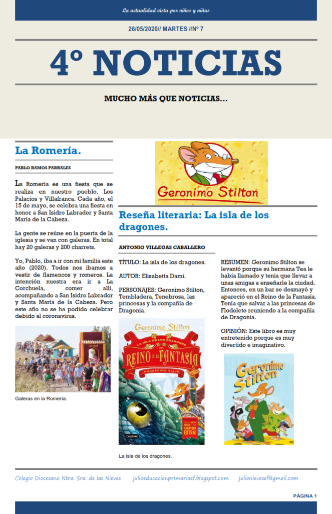 Las circunstancias que nos están tocando vivir, nos dan la oportunidad de contar nuestras vivencias, dar nuestras opiniones o crear noticias. De este modo, diferentes niños y niñas, de forma voluntaria, siguen aportando sus textos para que cada semana se publique un nuevo ejemplar.