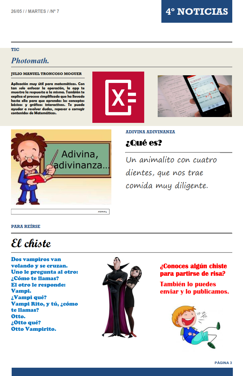 Comenzamos la semana, con la publicación de un nuevo número del periódico «4º NOTICIAS».
