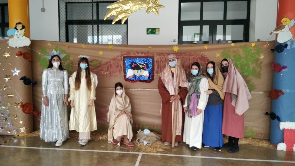 Quisiéramos agradecer al profesorado (montaje del decorado), al alumnado de 2º ESO (realización del decorado) y al AMPA su participación y colaboración en este magnífico proyecto de Navidad. Especialmente quisiéramos agradecer a nuestras compañeras Mamen Cabello y Amparo Ribelles su iniciativa y su labor de coordinación en la realización y el montaje del decorado.