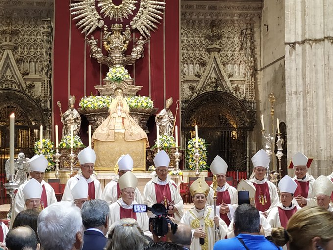 Los directores de los Colegios Diocesanos junto al Sr. Gerente felicitan al Sr. Arzobispo Mons. D. Juan José Asenjo Pelegrina en la Misa de Acción de Gracias por sus bodas de oro sacerdotales. (Sábado 21 de septiembre 2019).