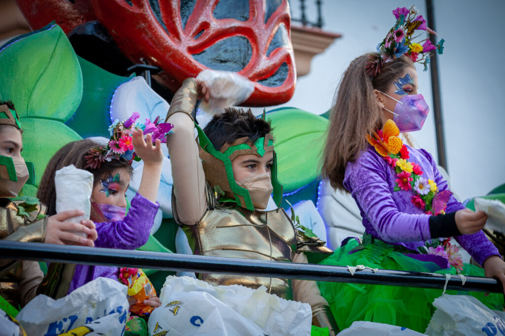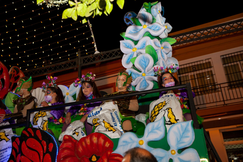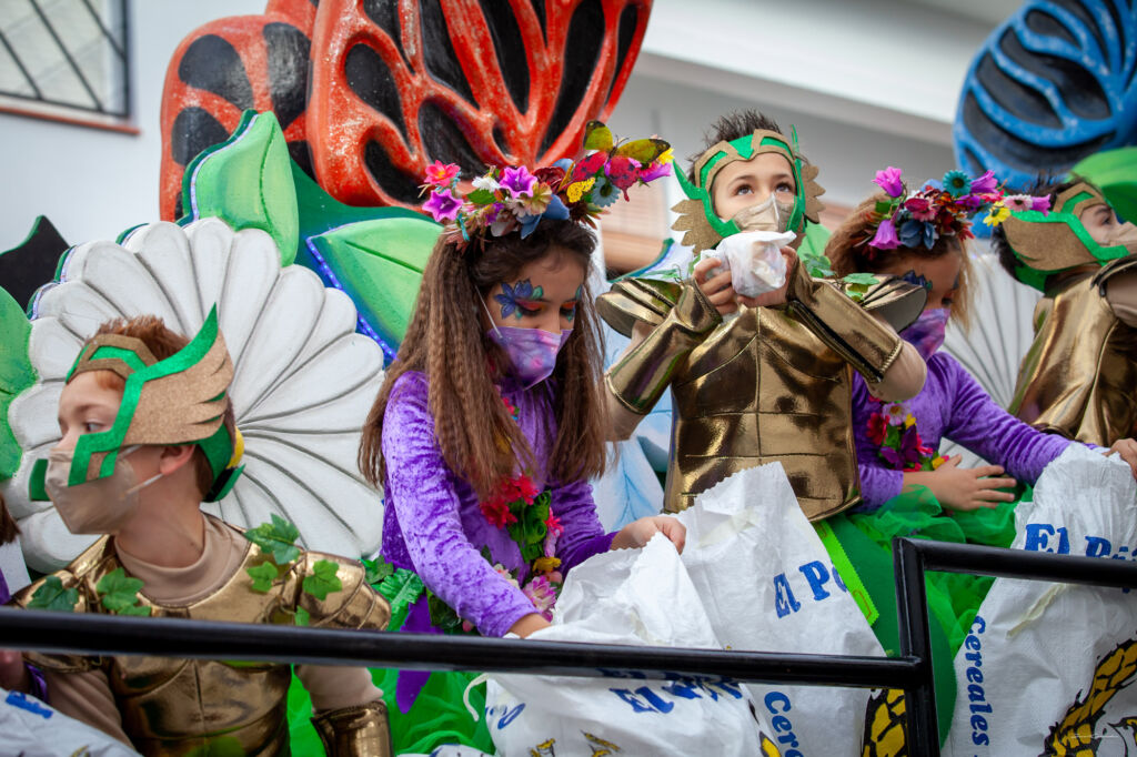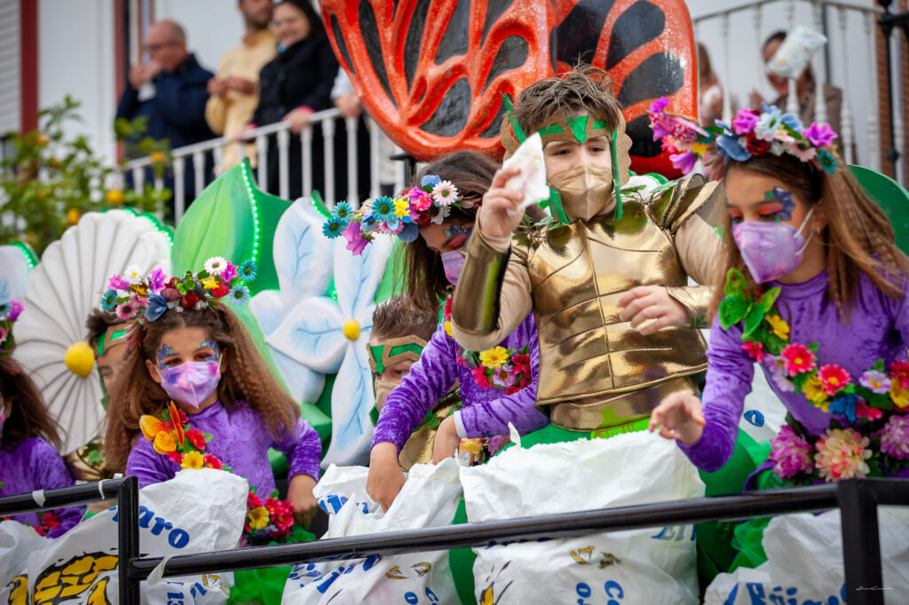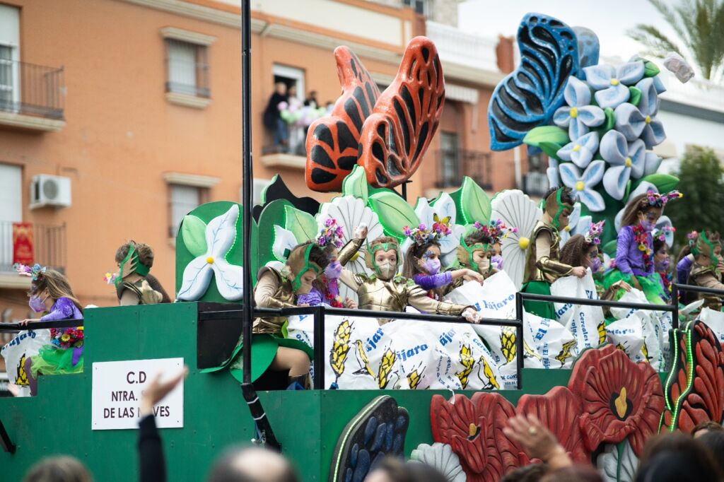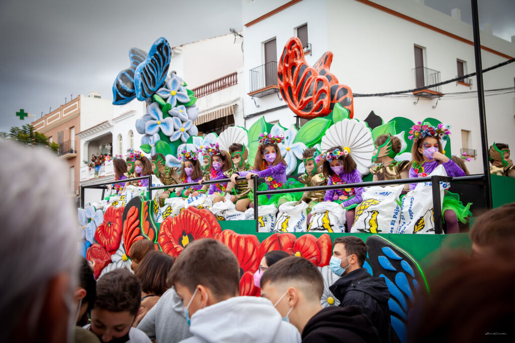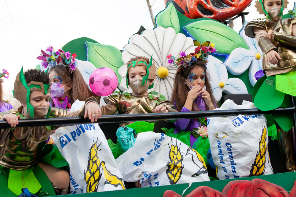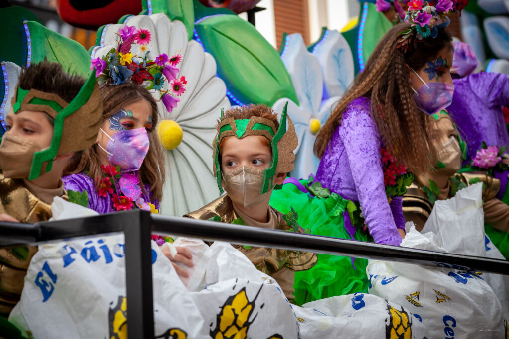 Seguidamente, se abría paso por nuestras calles la carroza “La Primavera”, cargada con los caramelos (bolsas de papel reciclado) y la ilusión que llevaban los alumnos de 3º de Primaria de nuestro Centro.