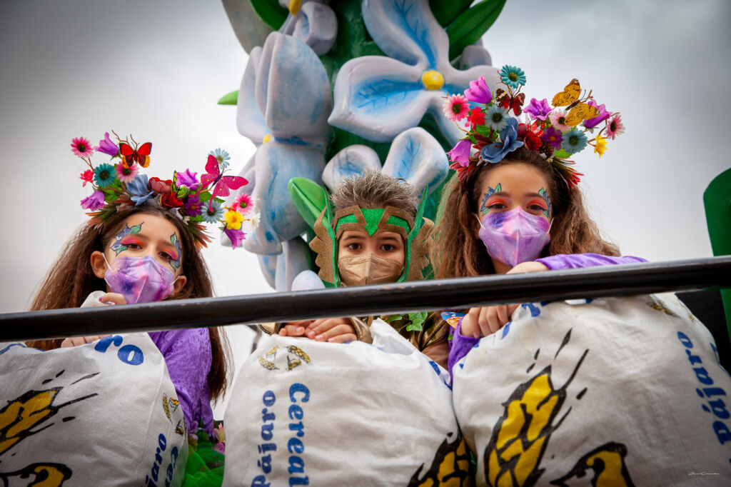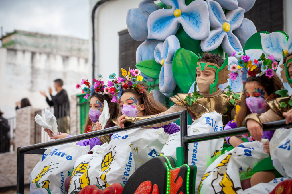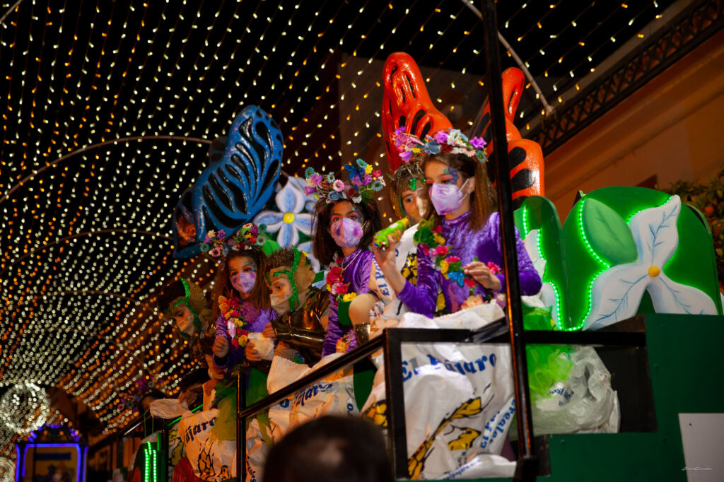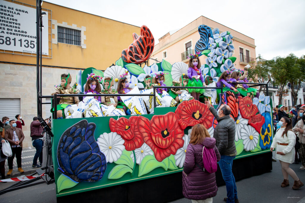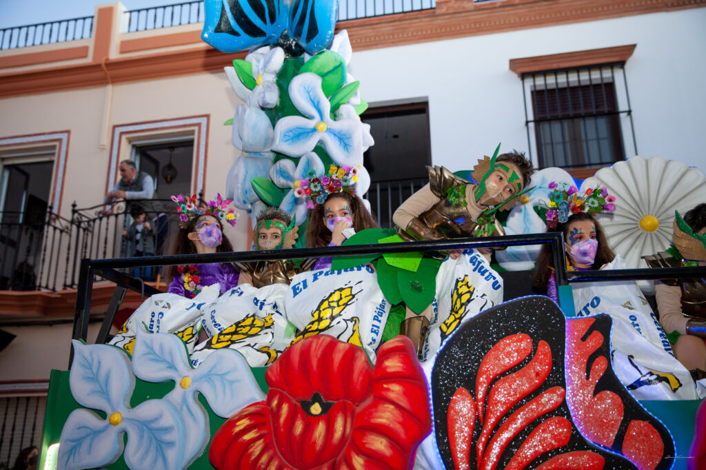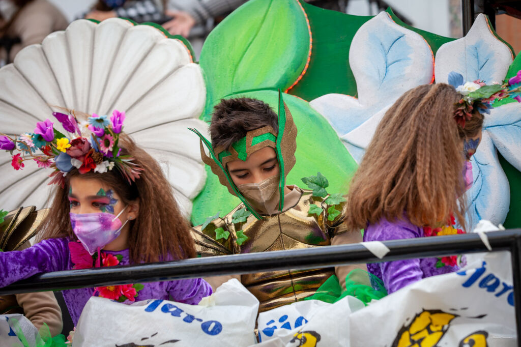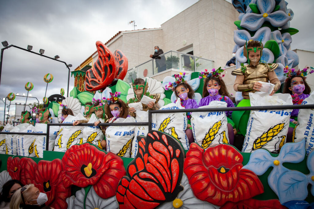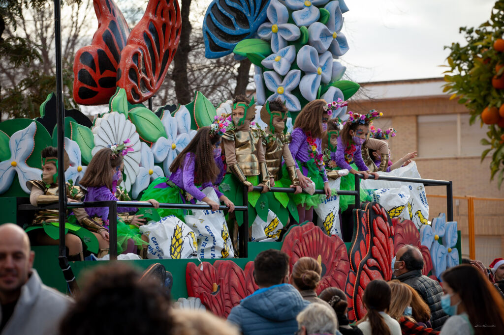 Seguidamente, se abría paso por nuestras calles la carroza “La Primavera”, cargada con los caramelos (bolsas de papel reciclado) y la ilusión que llevaban los alumnos de 3º de Primaria de nuestro Centro.