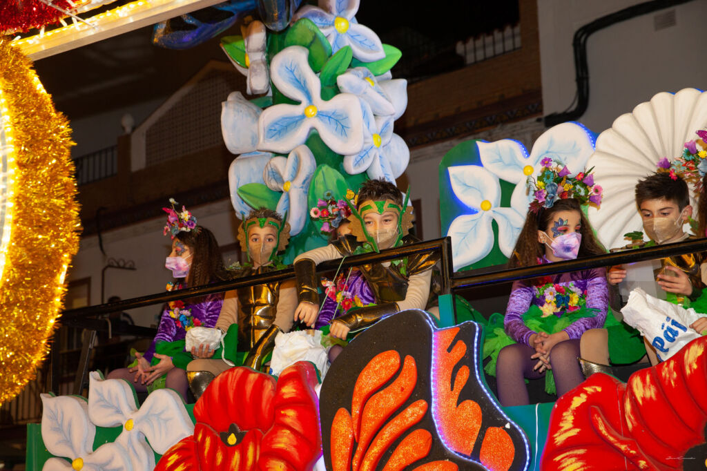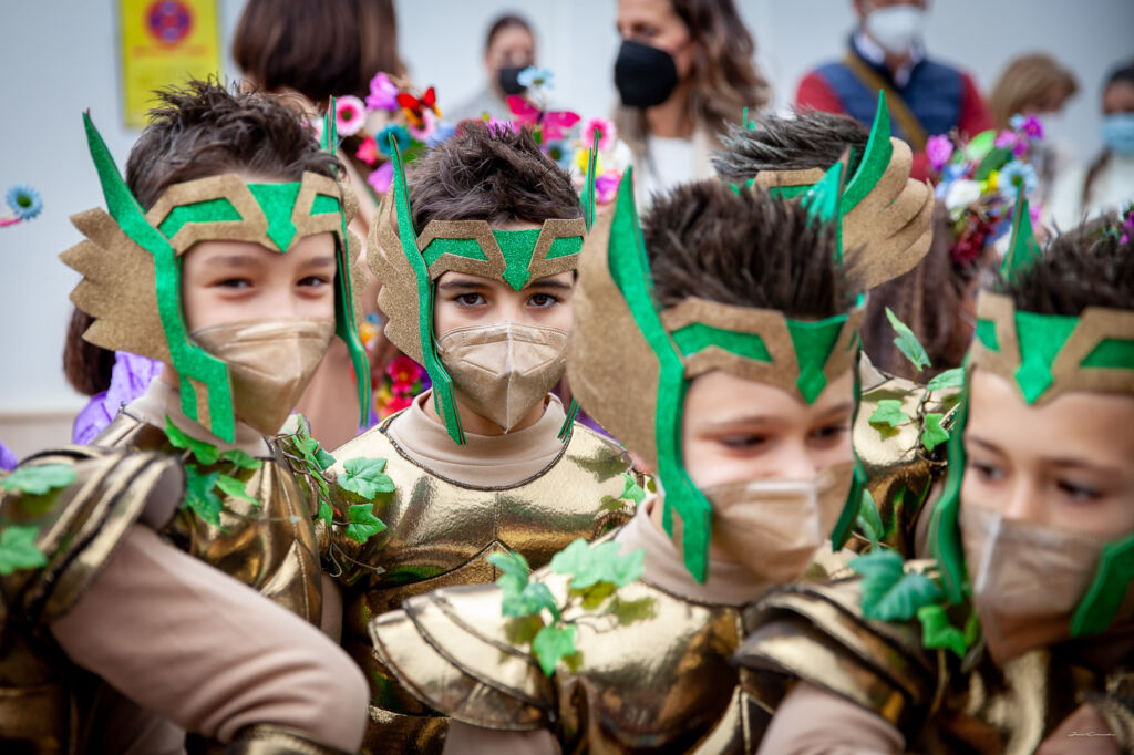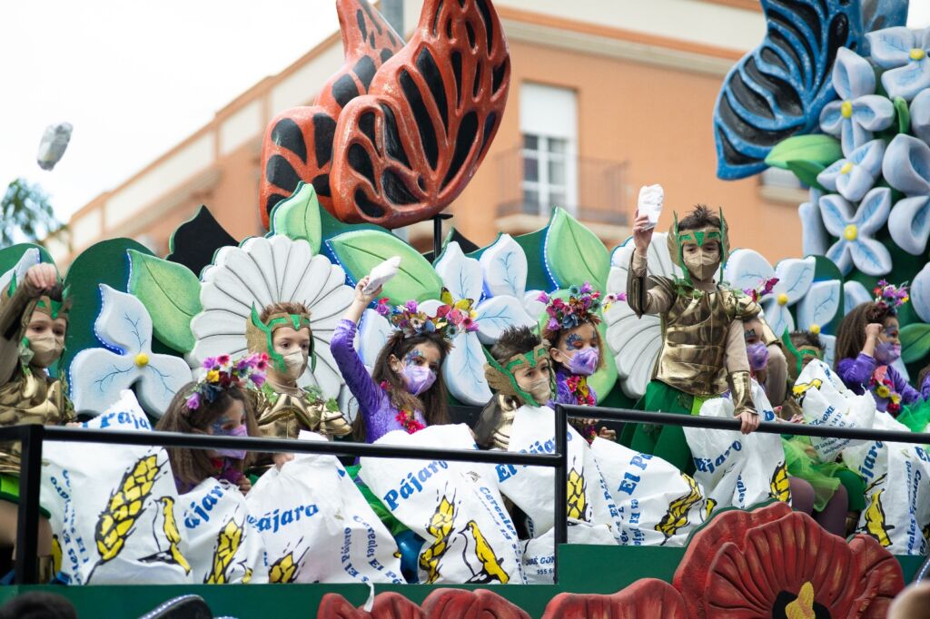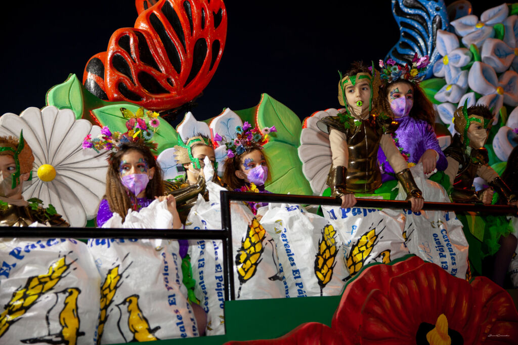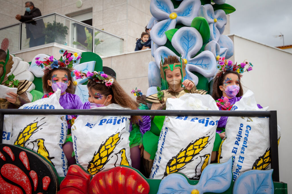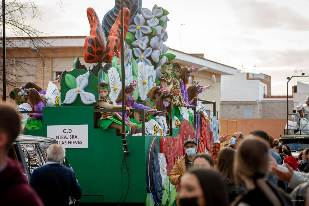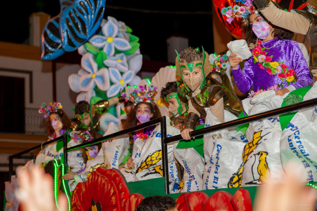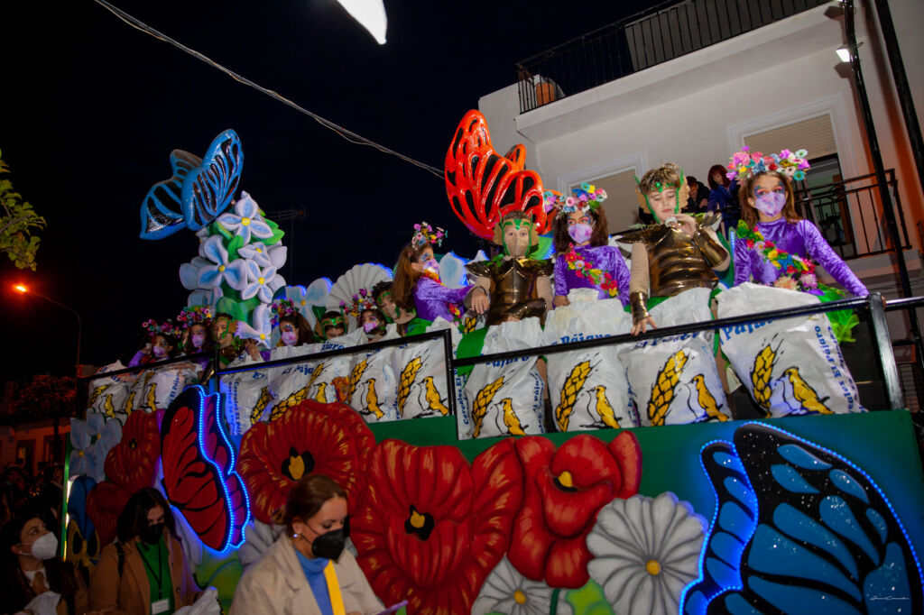 Seguidamente, se abría paso por nuestras calles la carroza “La Primavera”, cargada con los caramelos (bolsas de papel reciclado) y la ilusión que llevaban los alumnos de 3º de Primaria de nuestro Centro.