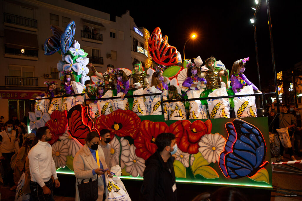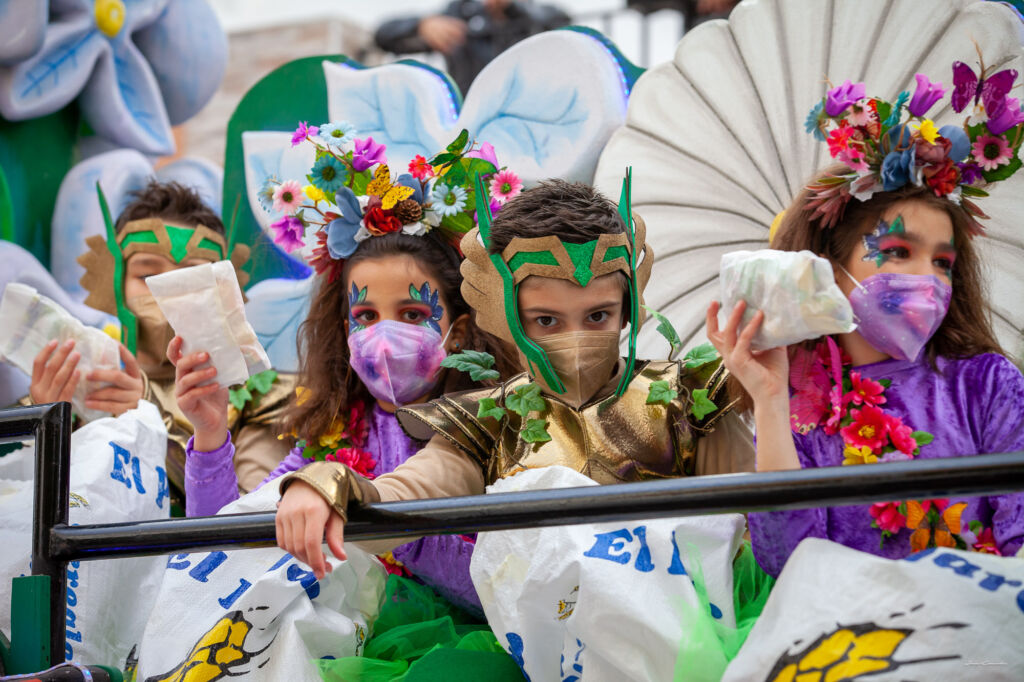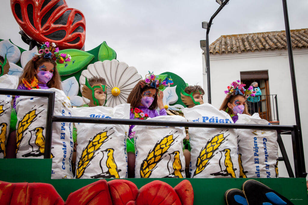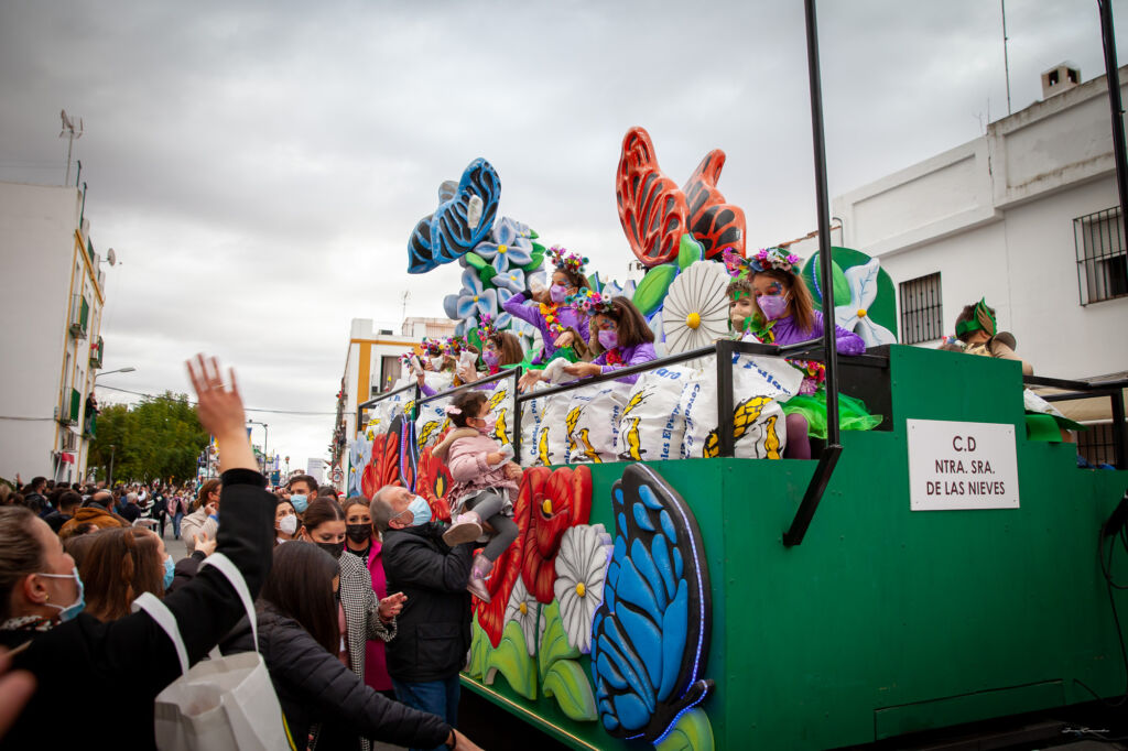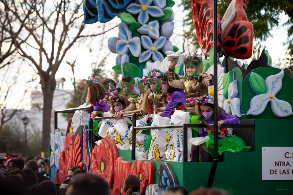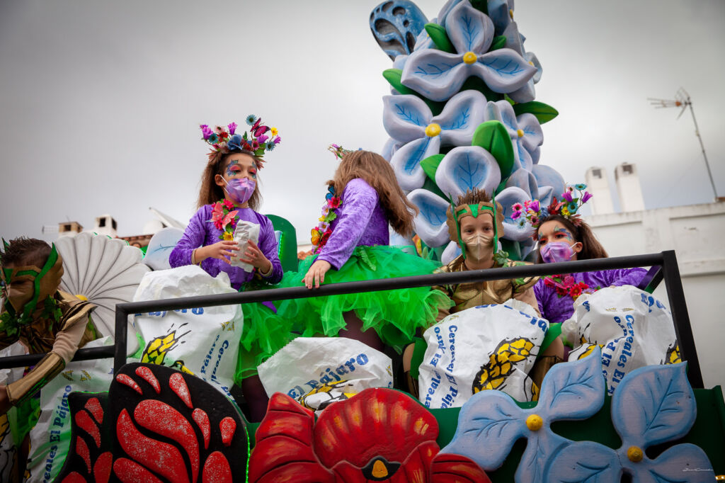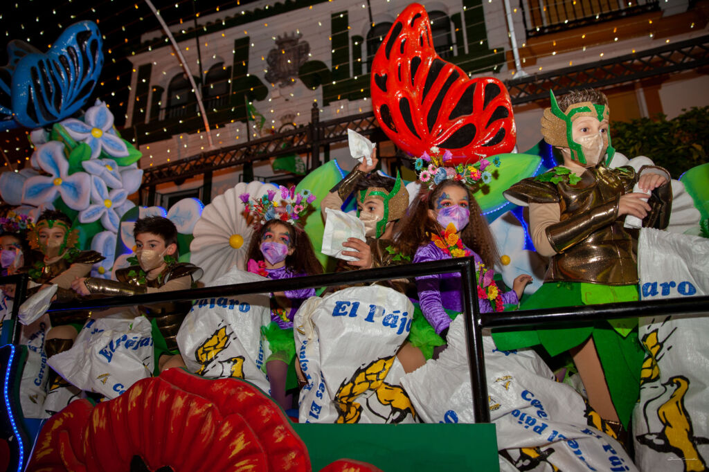Seguidamente, se abría paso por nuestras calles la carroza “La Primavera”, cargada con los caramelos (bolsas de papel reciclado) y la ilusión que llevaban los alumnos de 3º de Primaria de nuestro Centro.