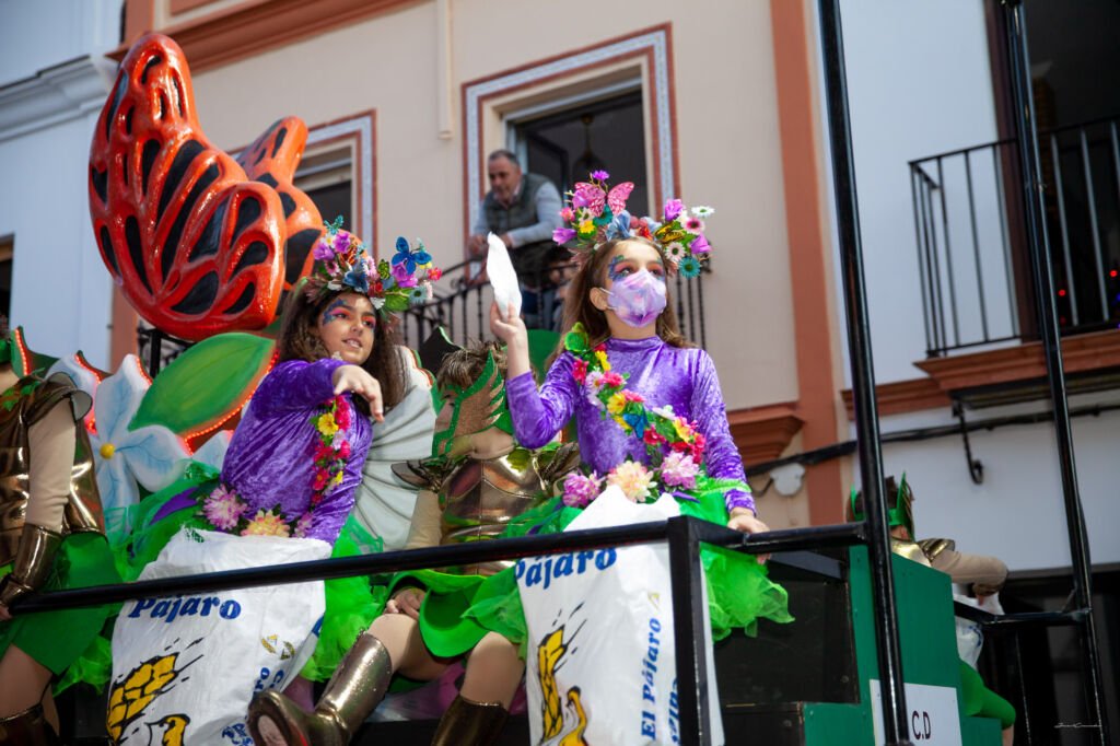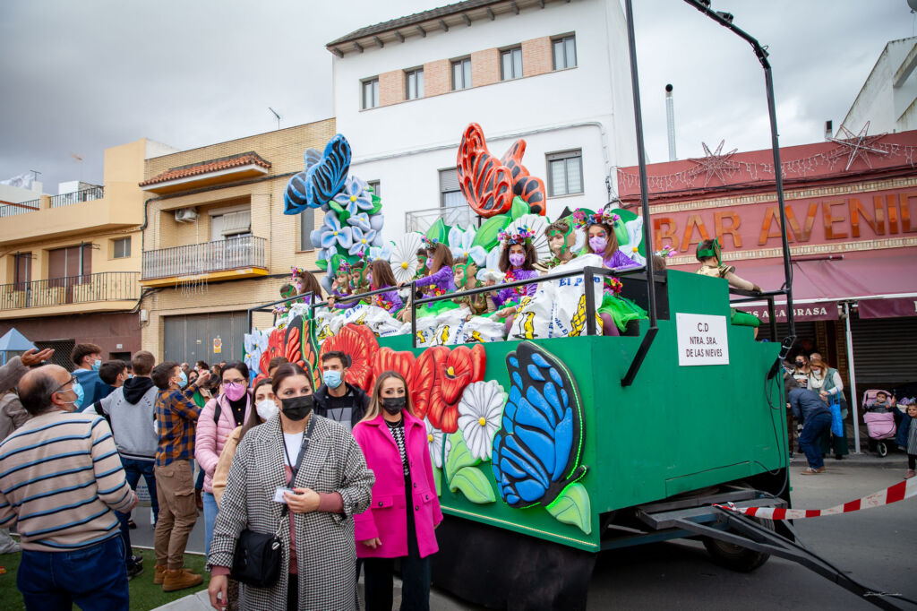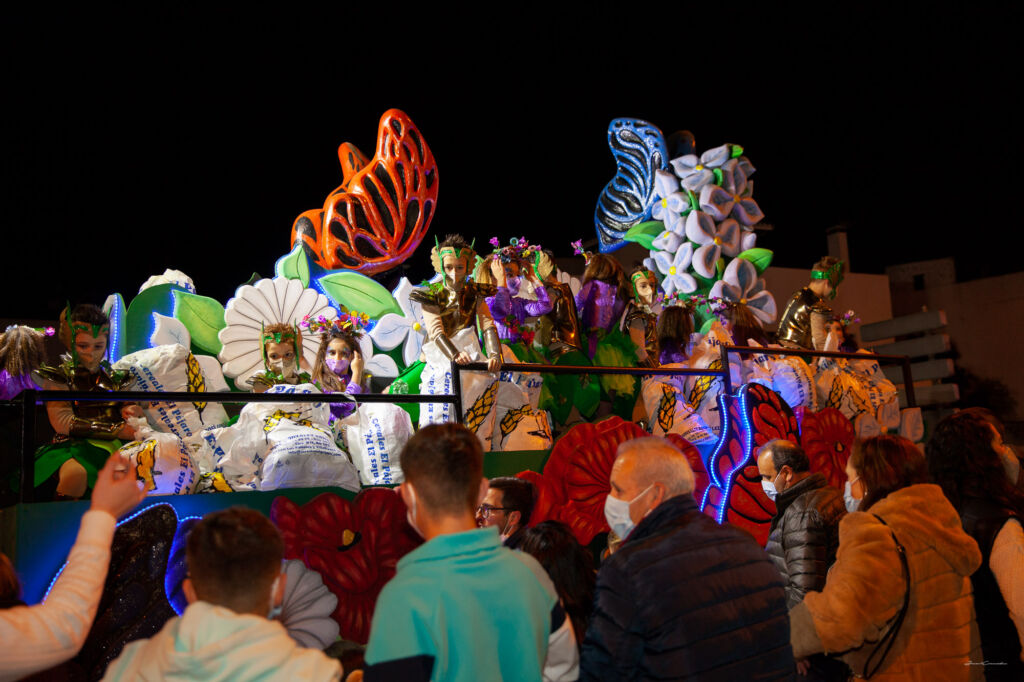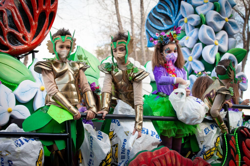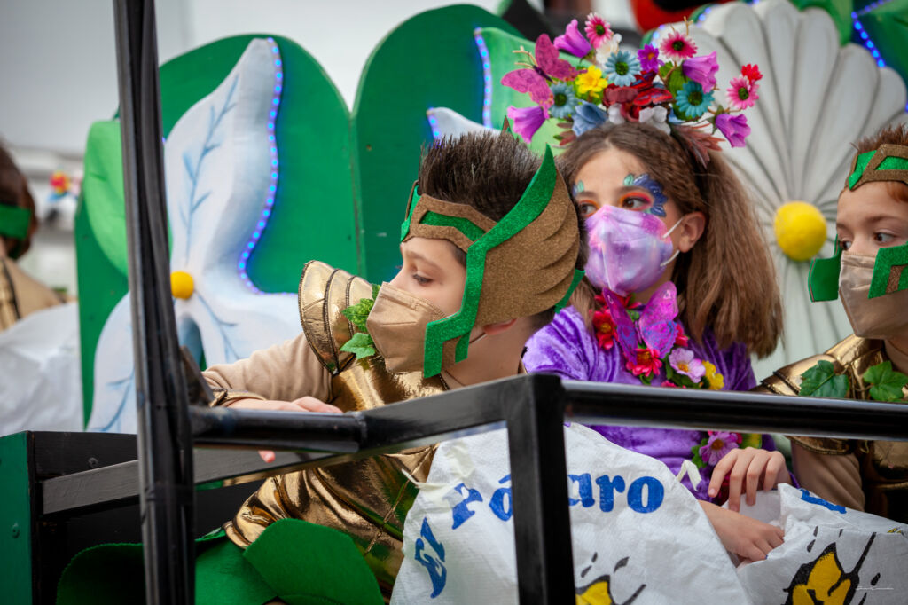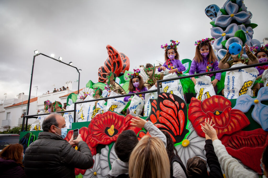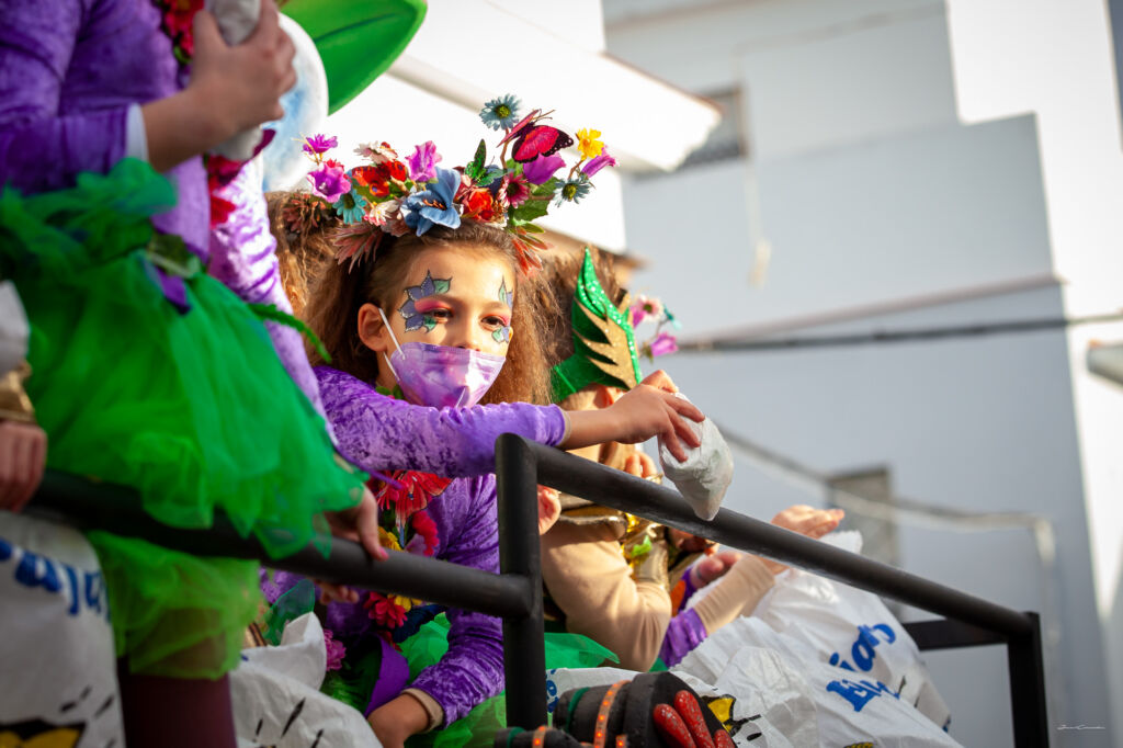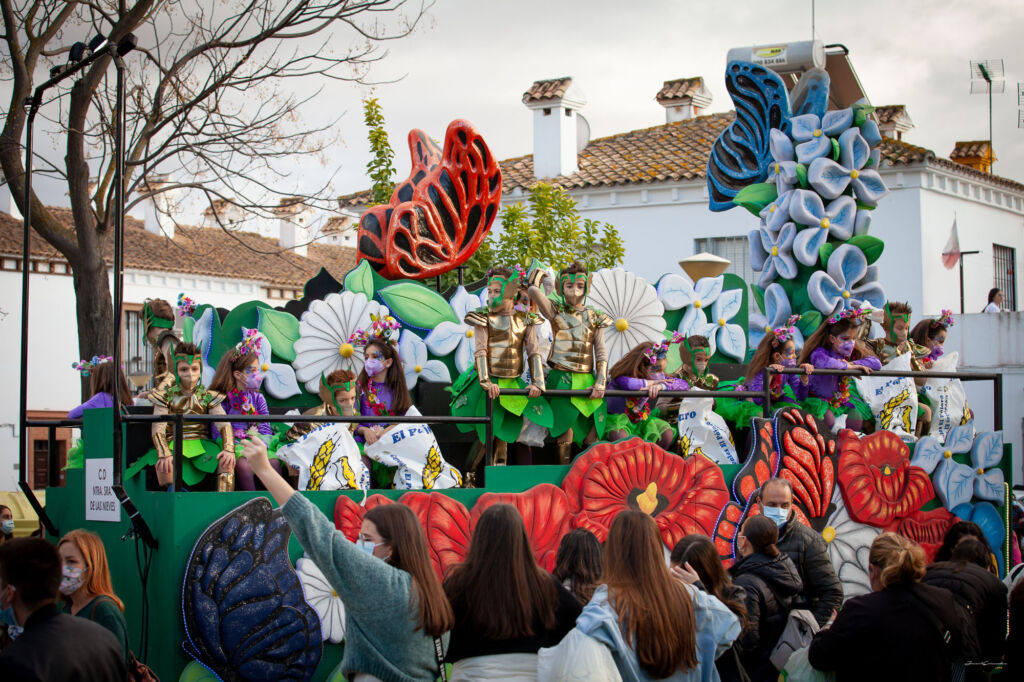 Seguidamente, se abría paso por nuestras calles la carroza “La Primavera”, cargada con los caramelos (bolsas de papel reciclado) y la ilusión que llevaban los alumnos de 3º de Primaria de nuestro Centro.