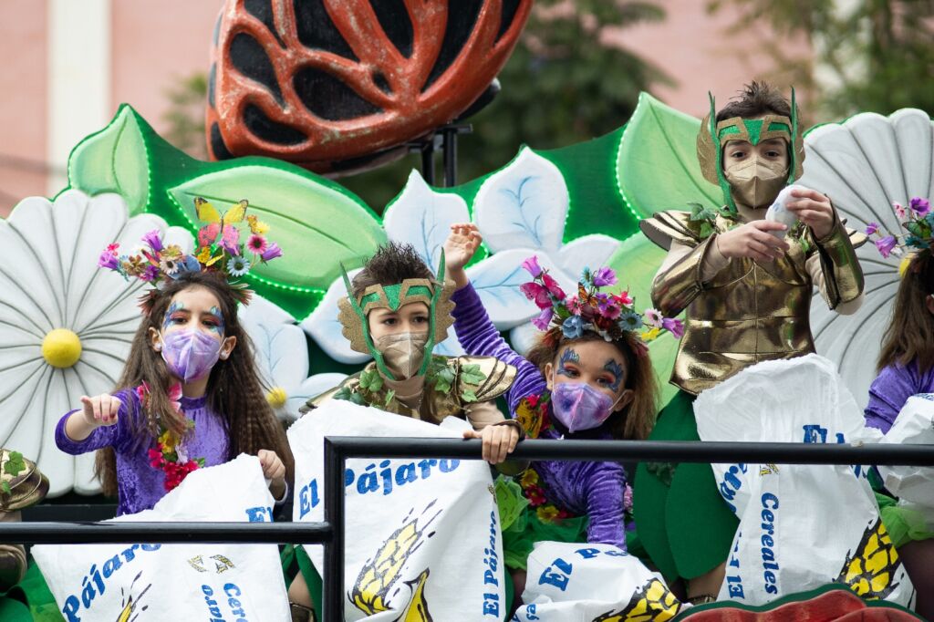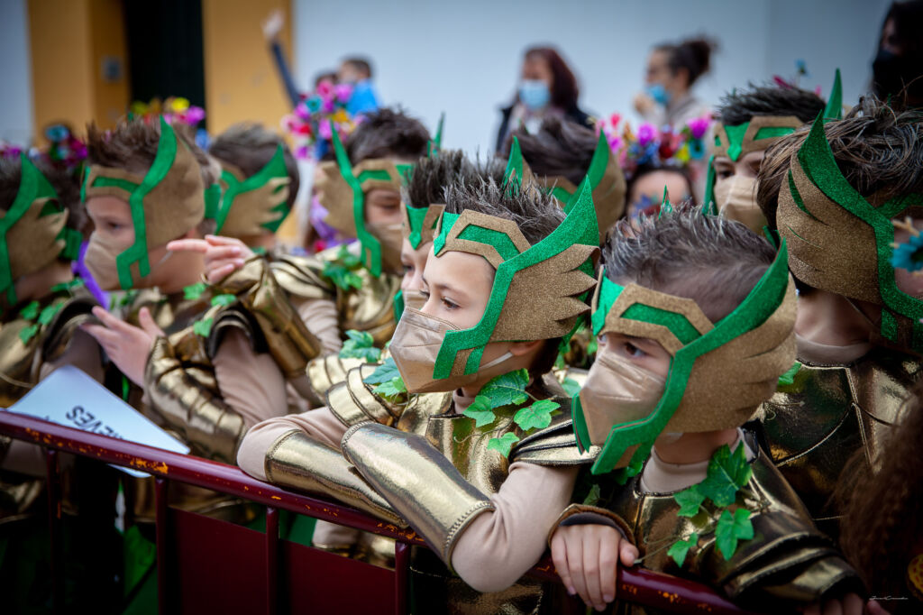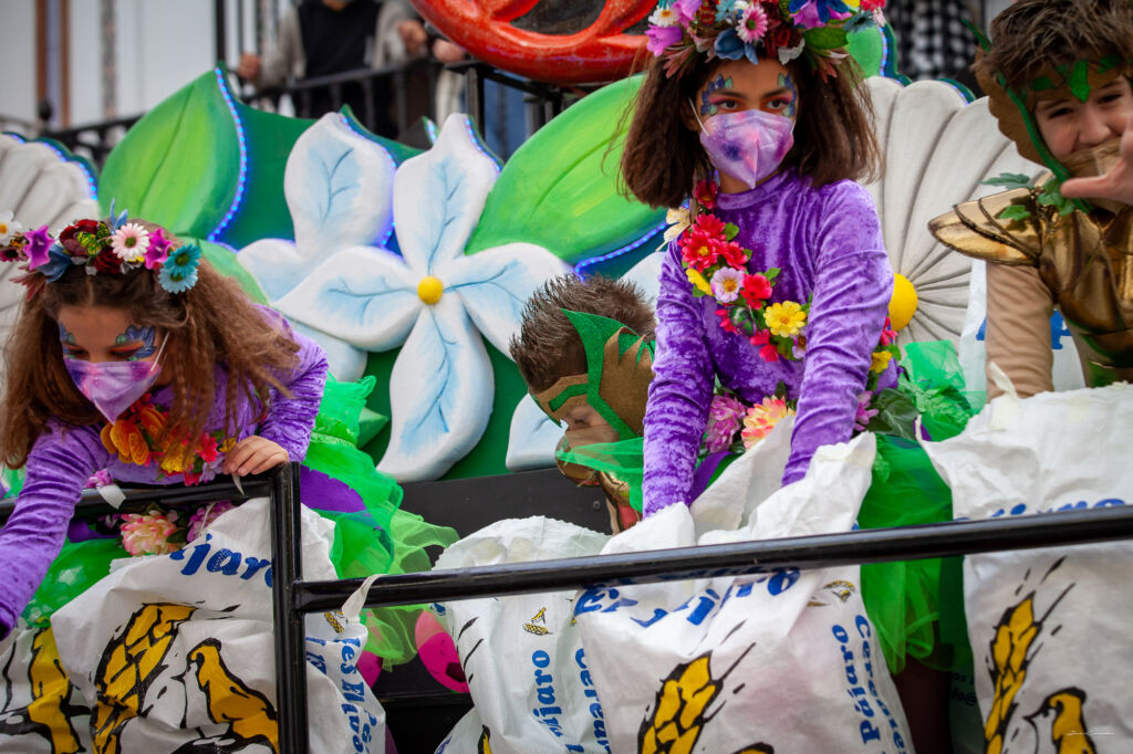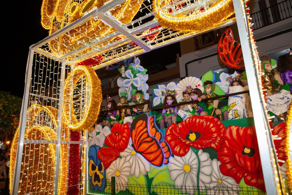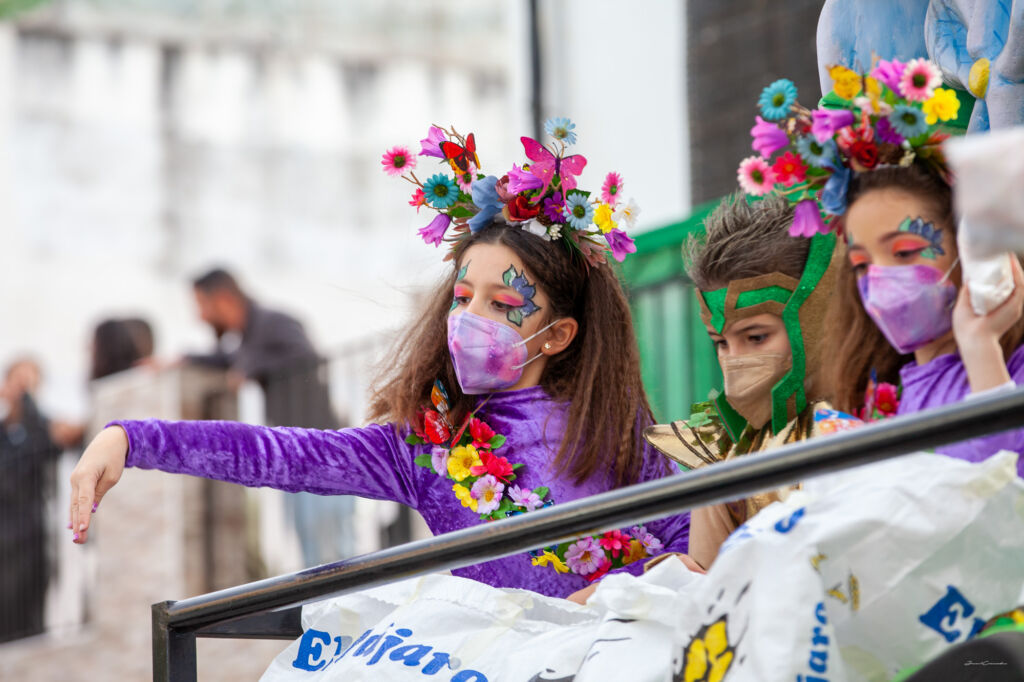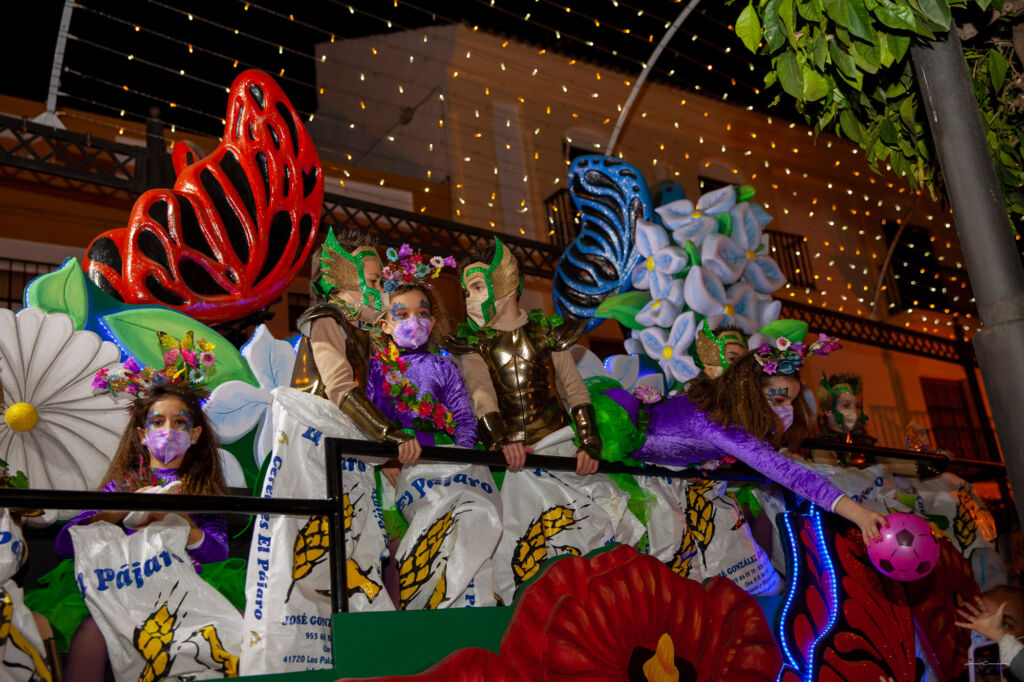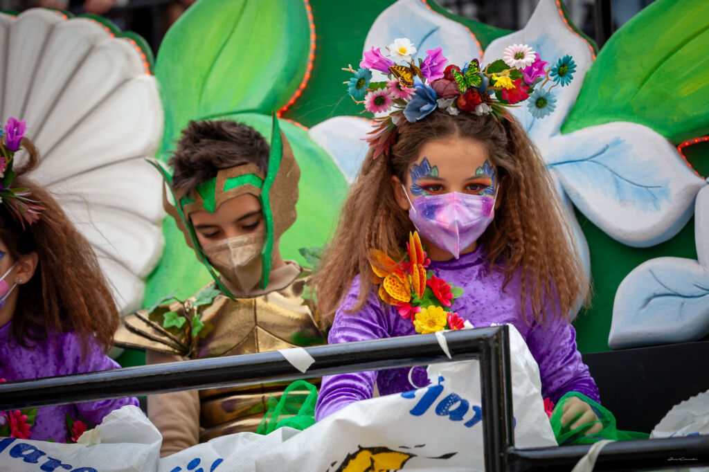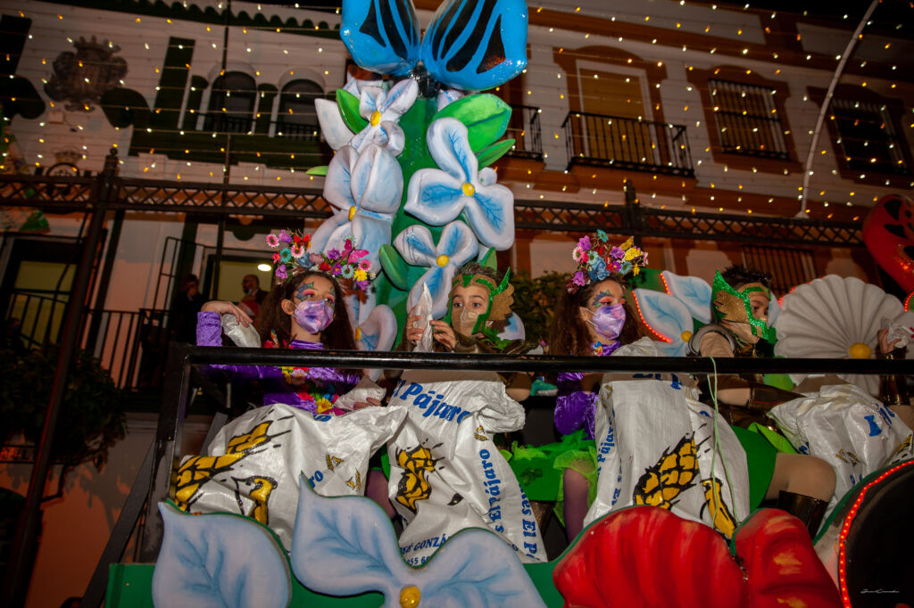 Seguidamente, se abría paso por nuestras calles la carroza “La Primavera”, cargada con los caramelos (bolsas de papel reciclado) y la ilusión que llevaban los alumnos de 3º de Primaria de nuestro Centro.