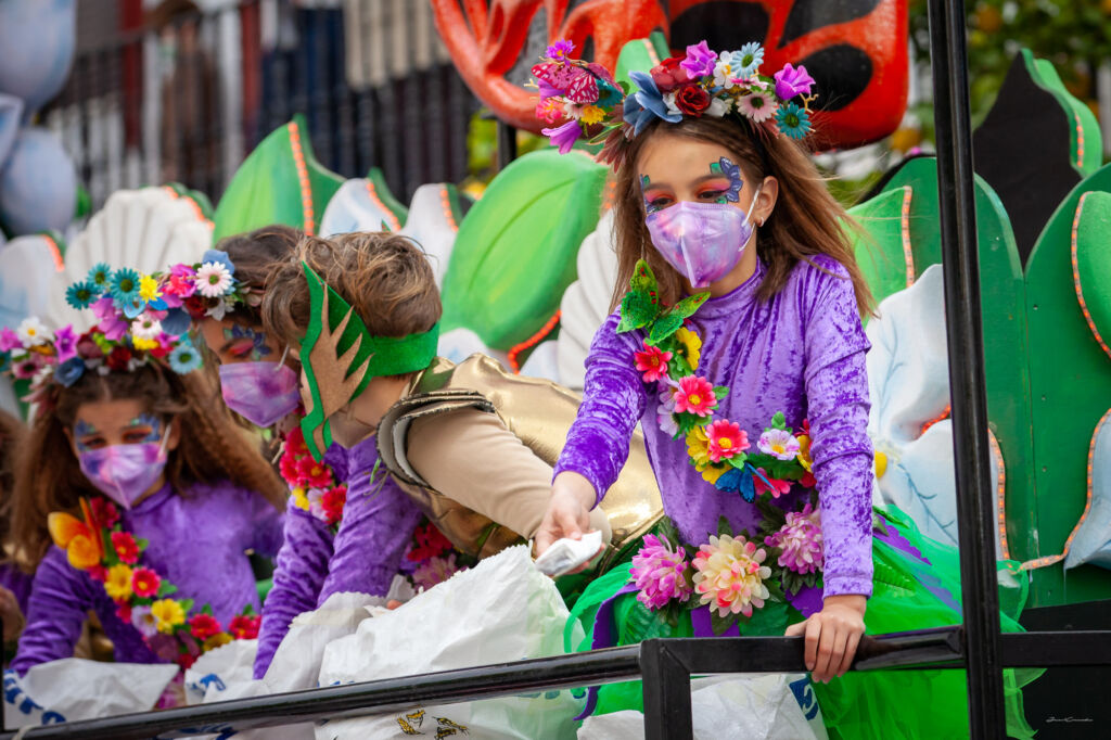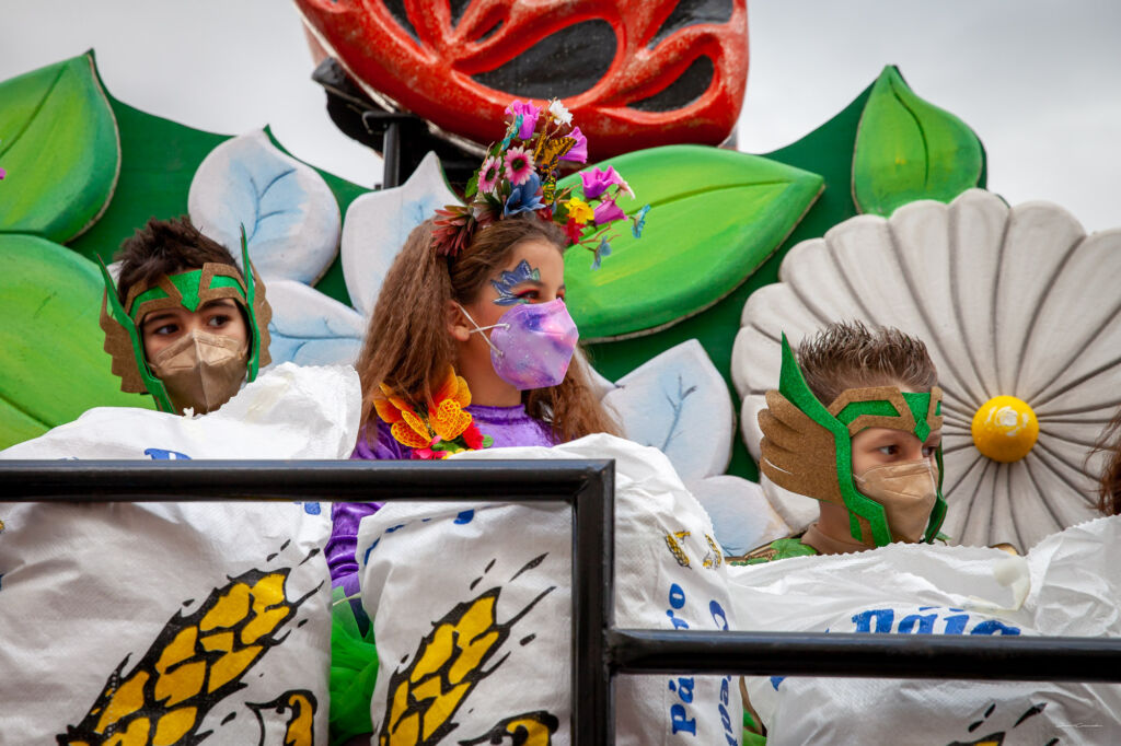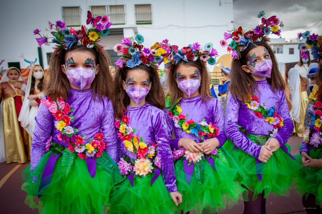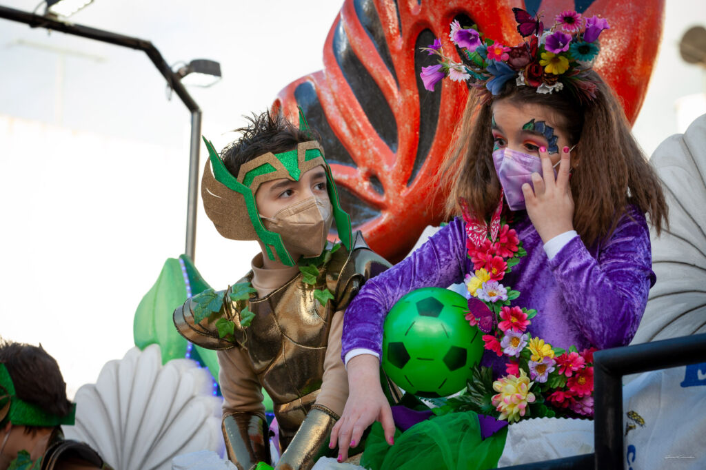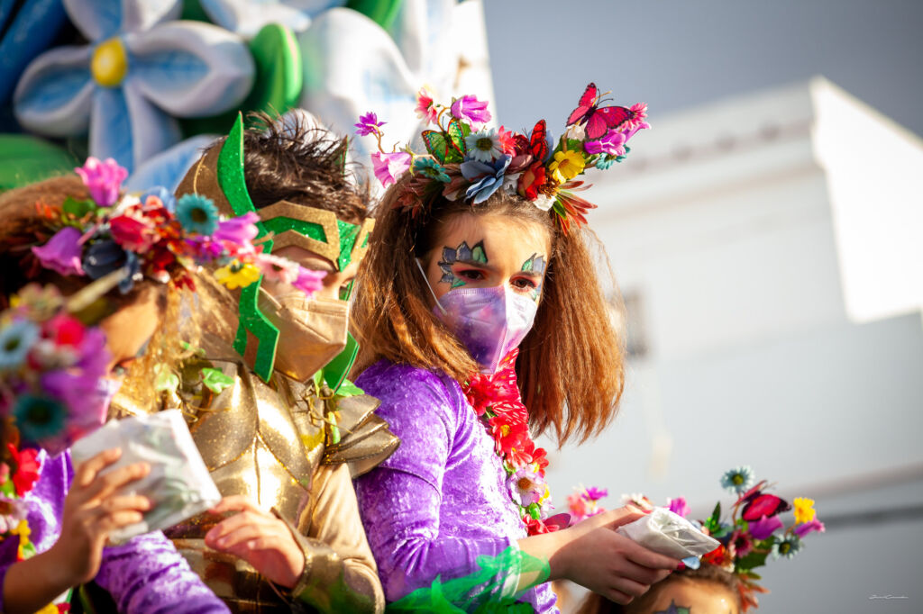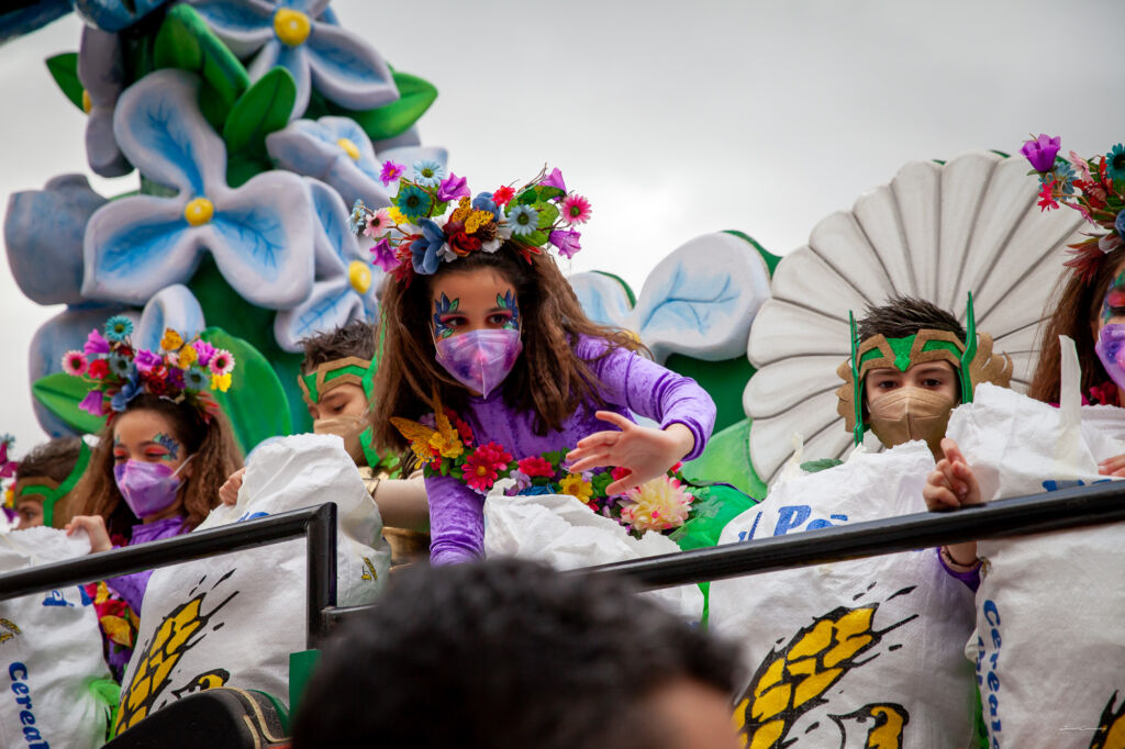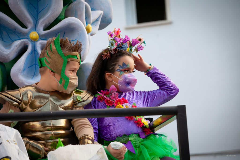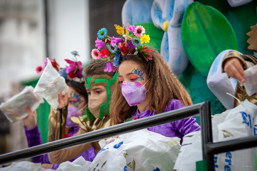 Seguidamente, se abría paso por nuestras calles la carroza “La Primavera”, cargada con los caramelos (bolsas de papel reciclado) y la ilusión que llevaban los alumnos de 3º de Primaria de nuestro Centro.