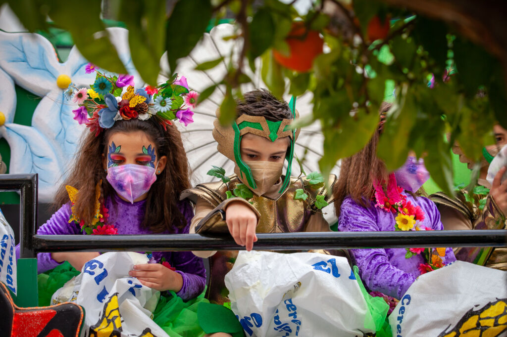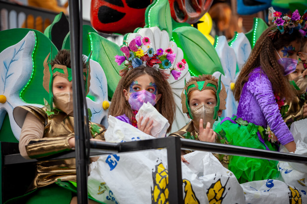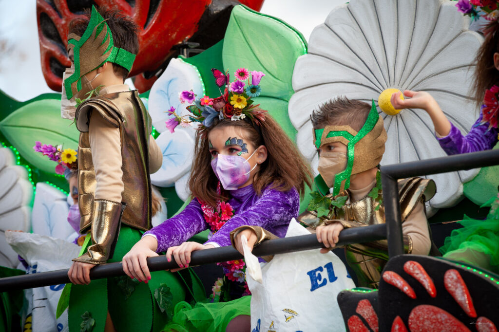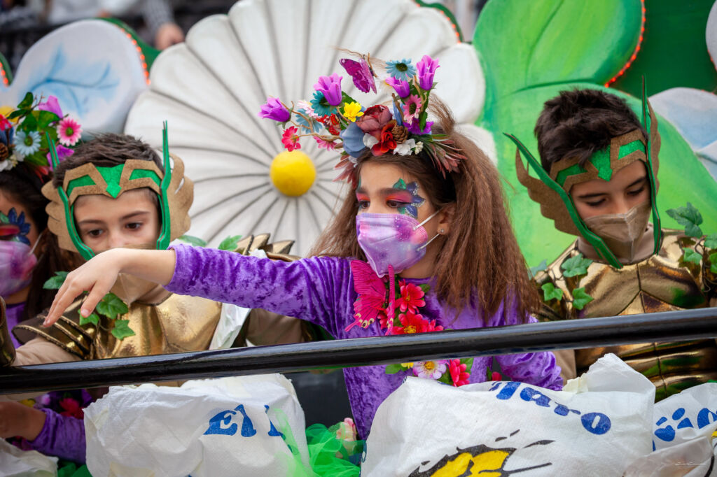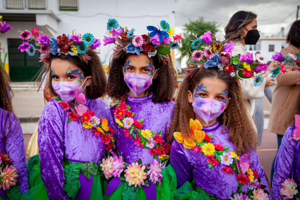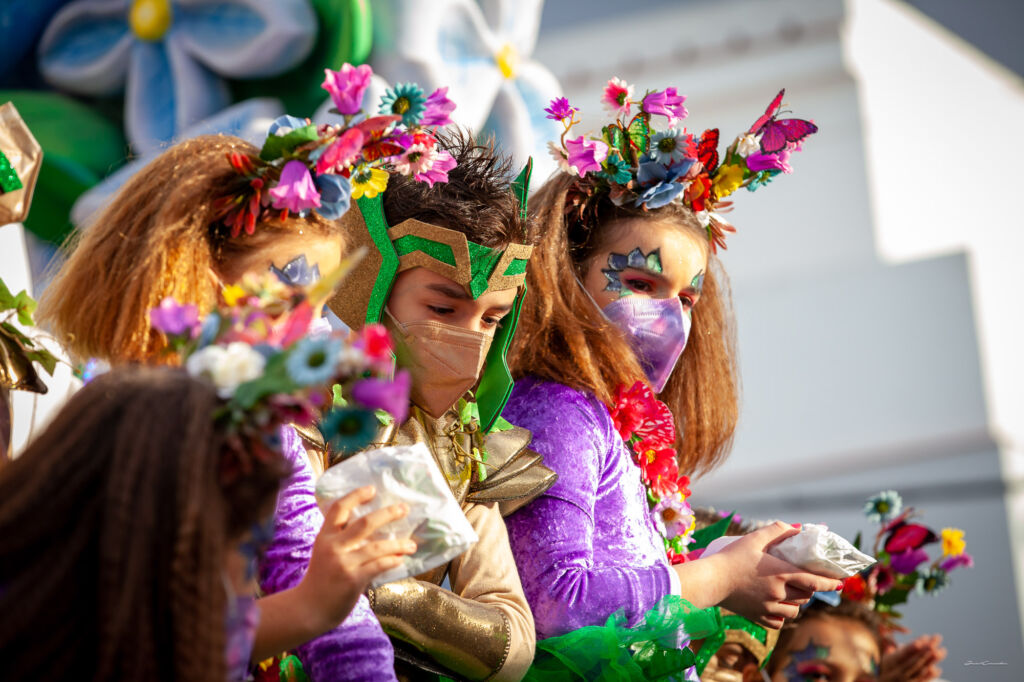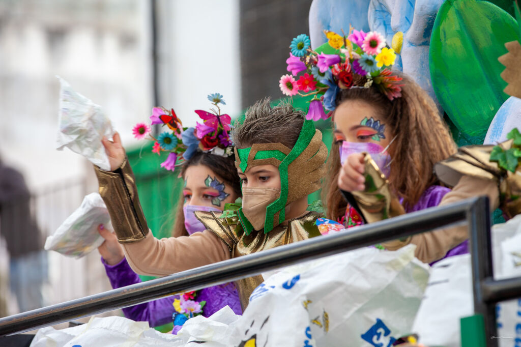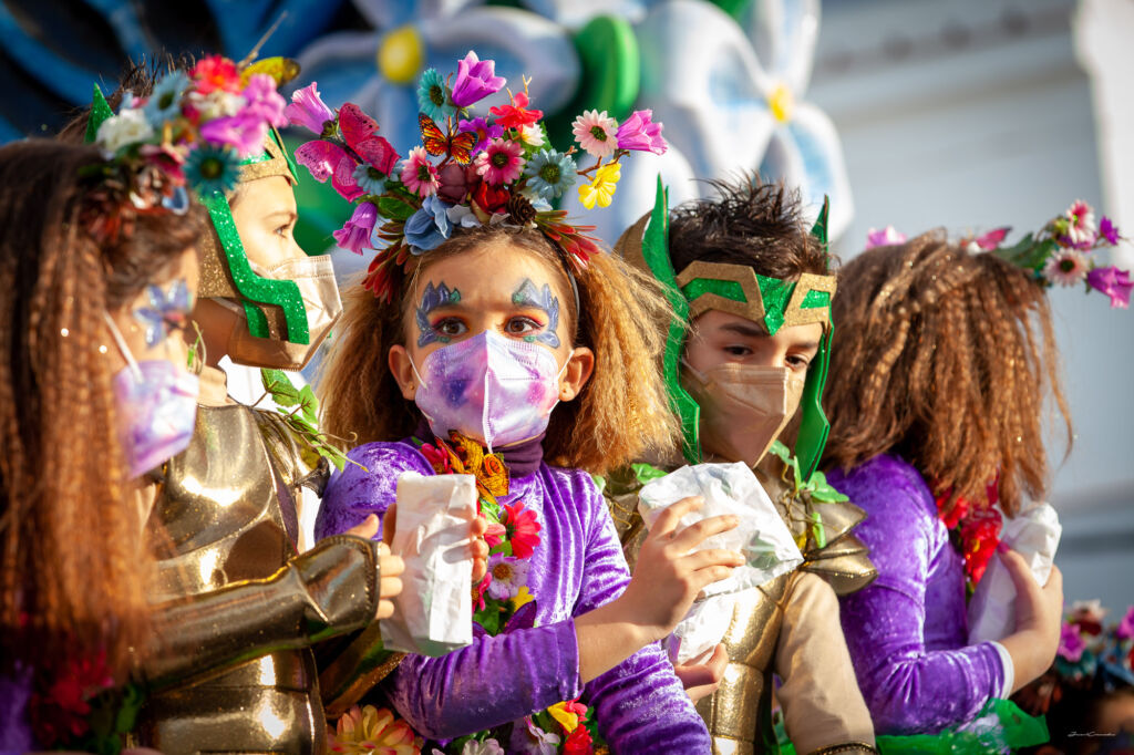 Seguidamente, se abría paso por nuestras calles la carroza “La Primavera”, cargada con los caramelos (bolsas de papel reciclado) y la ilusión que llevaban los alumnos de 3º de Primaria de nuestro Centro.