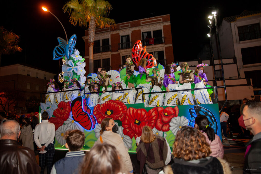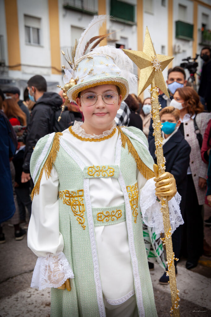 La comitiva, integrada por casi un millar de personas, estuvo encabezada por la carroza de la Estrella Guía y sus acompañantes, que en esta ocasión abanderaba Juan Manuel Begines Campos (alumno de 6º EP de nuestro Centro) dando vida al Cartero Real.