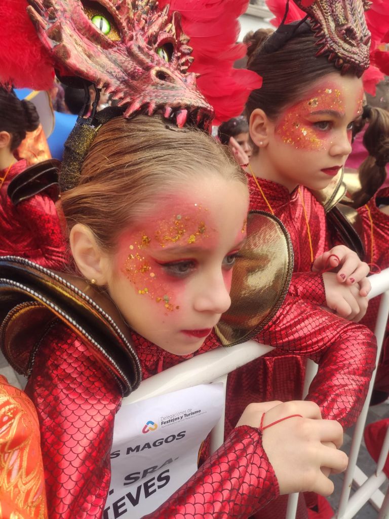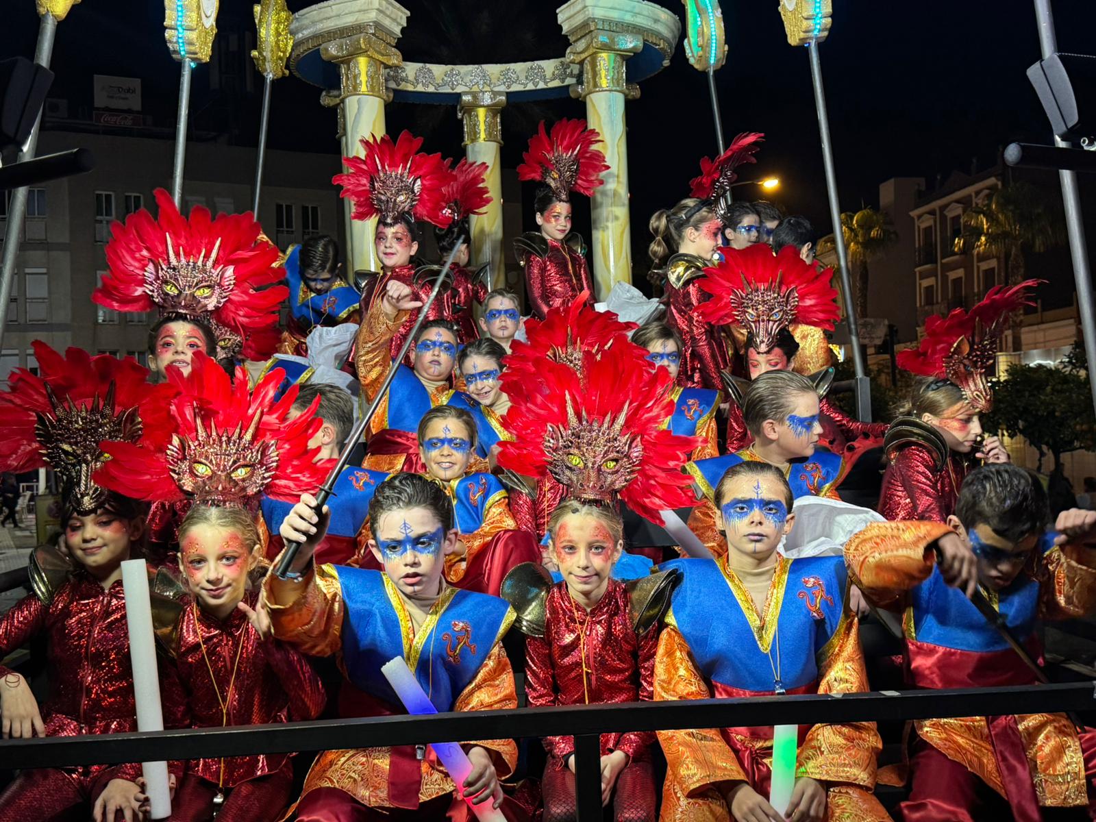 La comitiva, integrada por casi un millar de personas, estuvo encabezada por la carroza de la Estrella Guía y sus acompañantes, nuestra alumna David Cremades Begines (6º EP) representaba a nuestro centro.