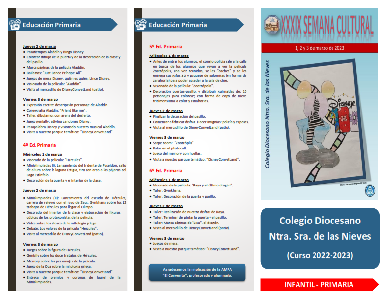 Cartel Anunciador y Programación – XXXIX Semana Cultural «Disney100»