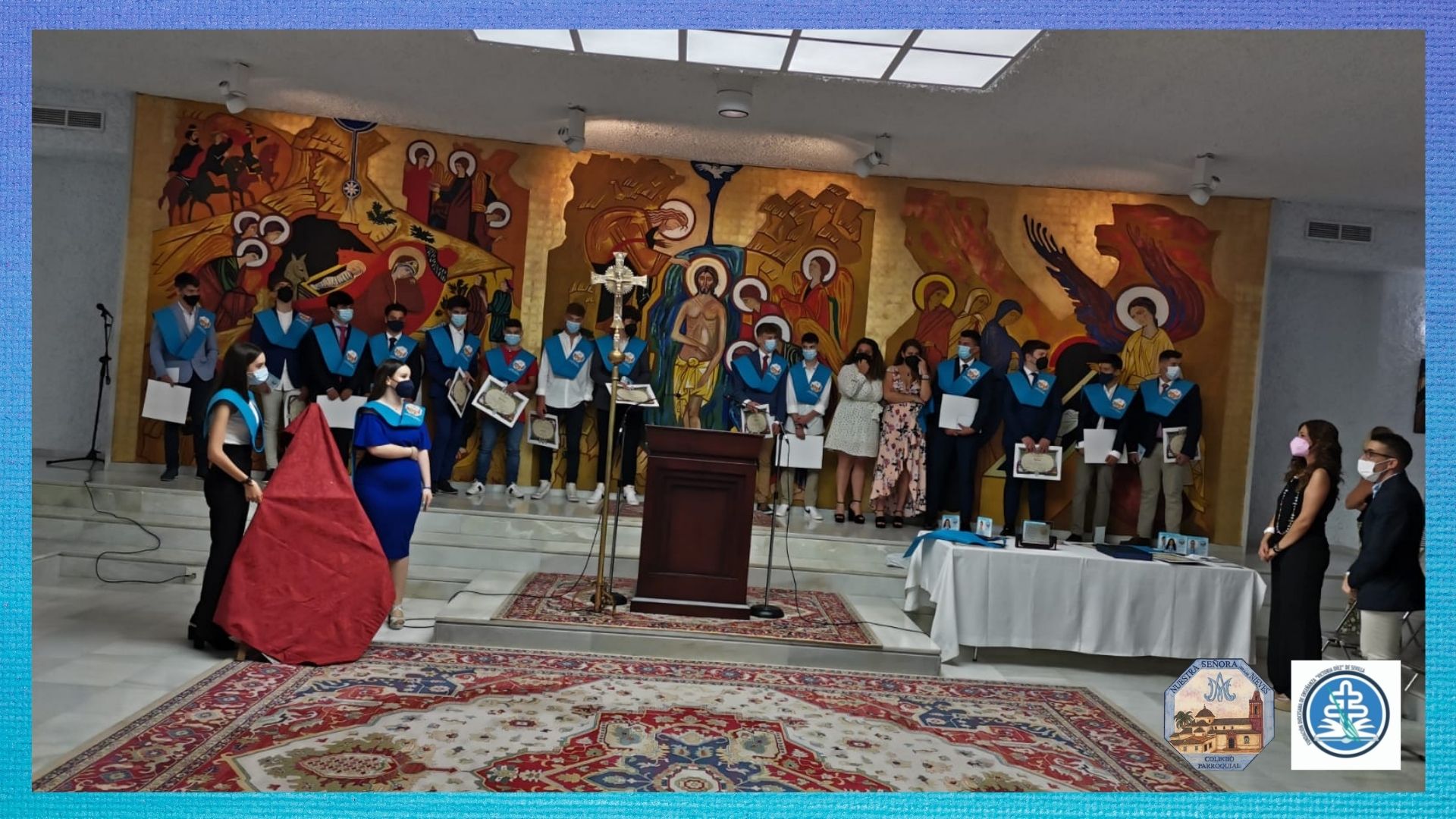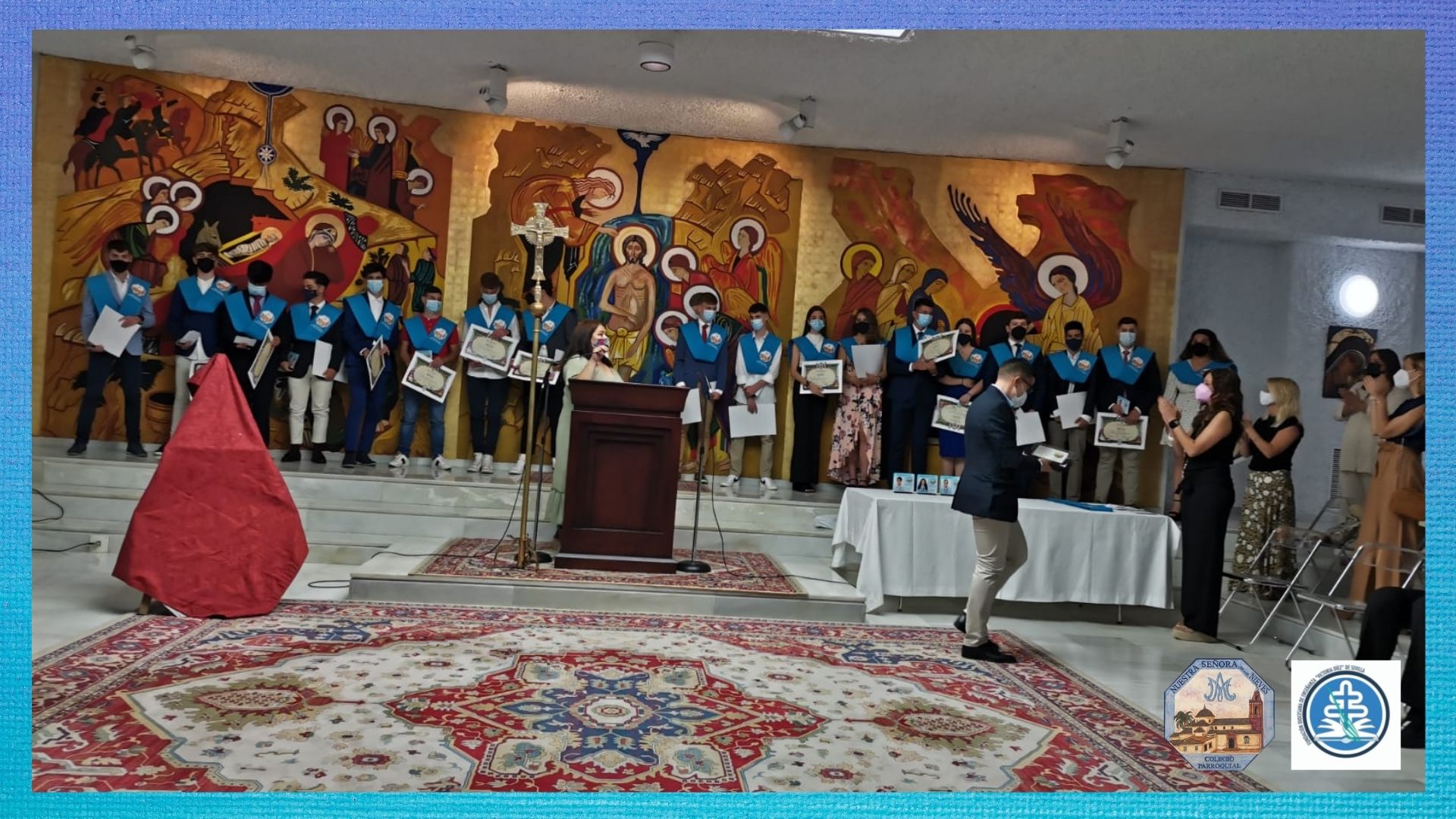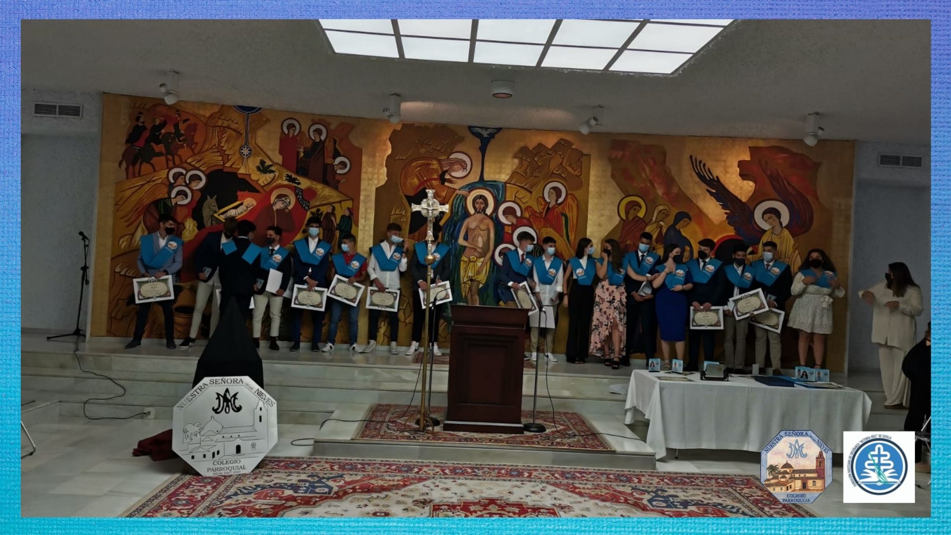 Posteriormente, un año después, se realizó la ceremonia de graduación en los Salones Parroquiales.