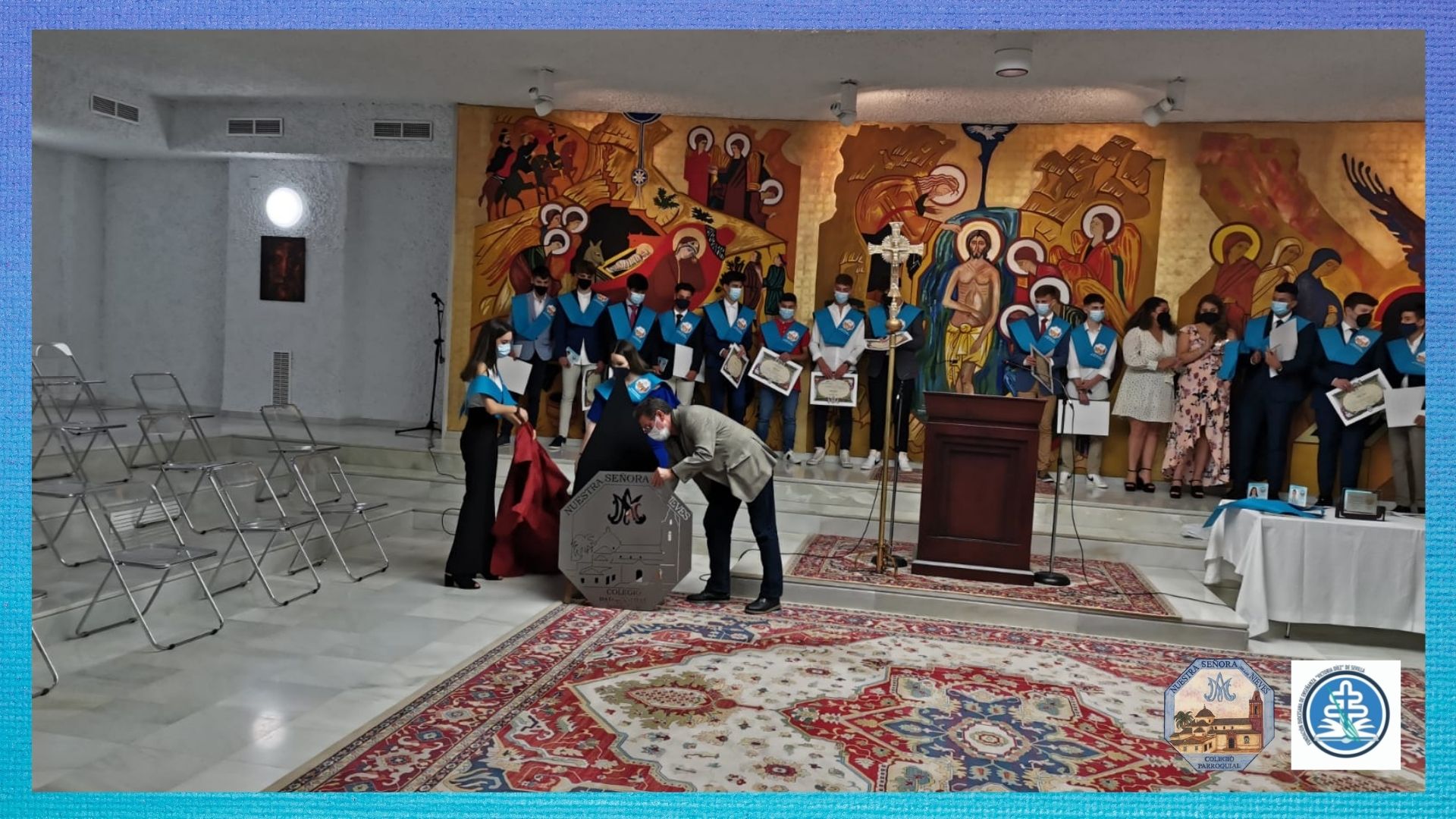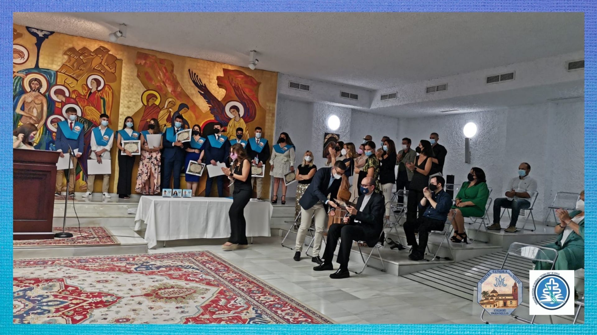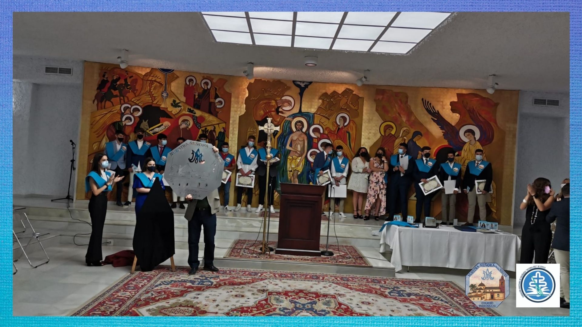Posteriormente, un año después, se realizó la ceremonia de graduación en los Salones Parroquiales.