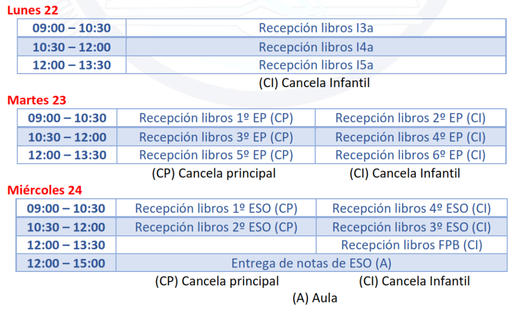 Las familias deben entregar en el centro los libros de texto, lectura y demás materiales en los horarios que se han establecido para ello.
