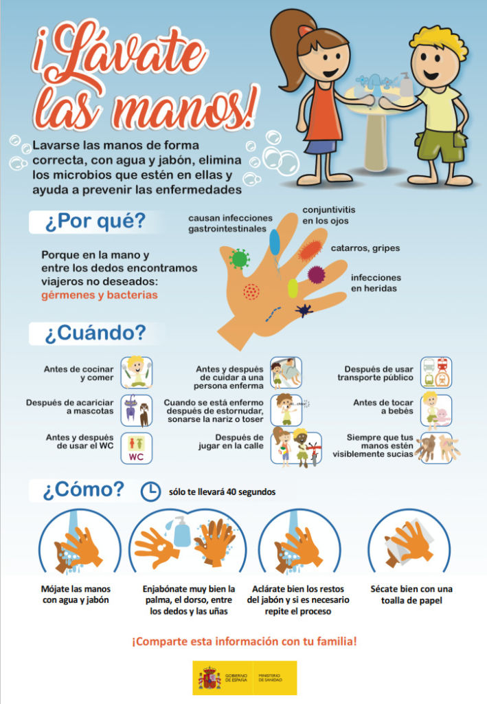 – Infografía y cartel sobre el lavado de manos dirigida a población infantil.