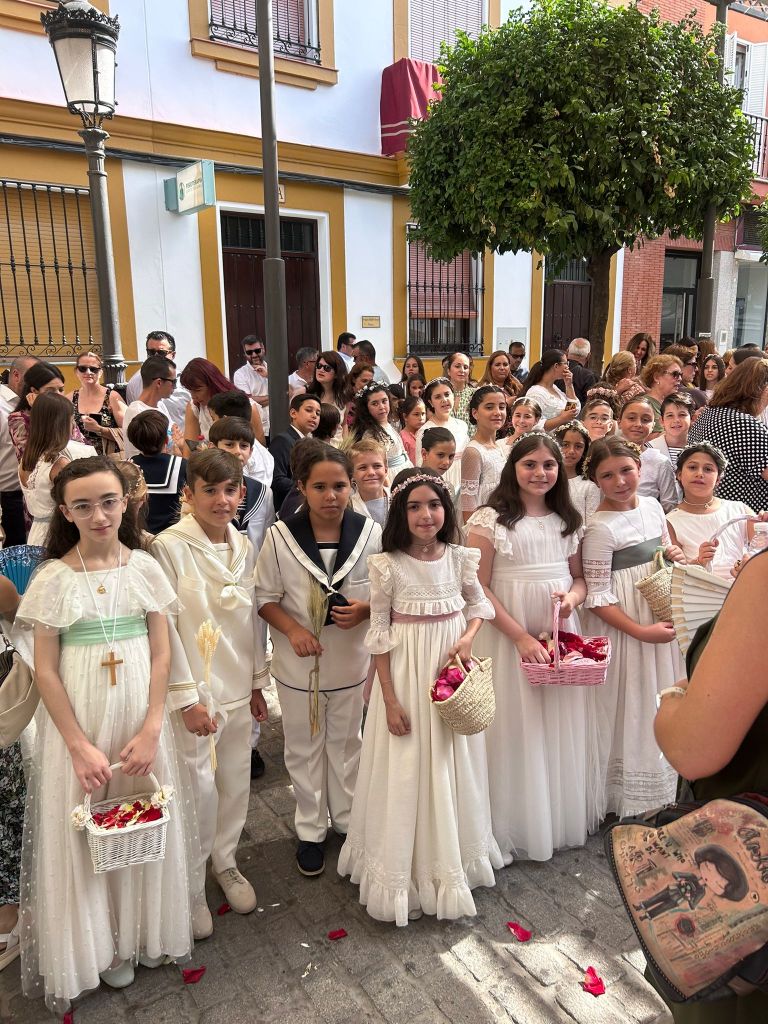 A su término, tuvo lugar la procesión eucarística por las calles de la feligresía para festejar la solemnidad del Corpus Chirsti de nuestra parroquia.