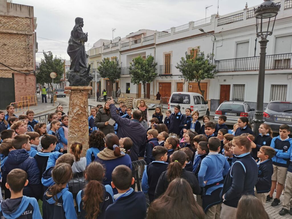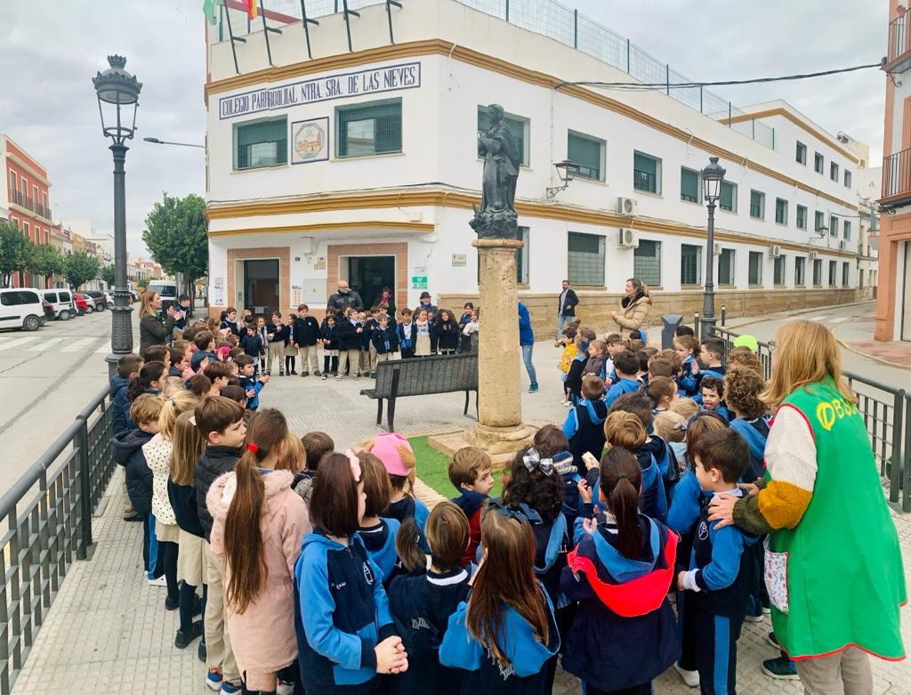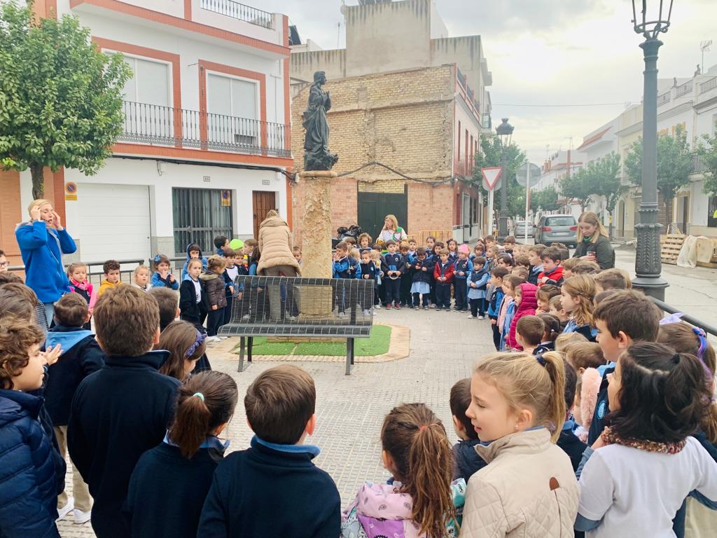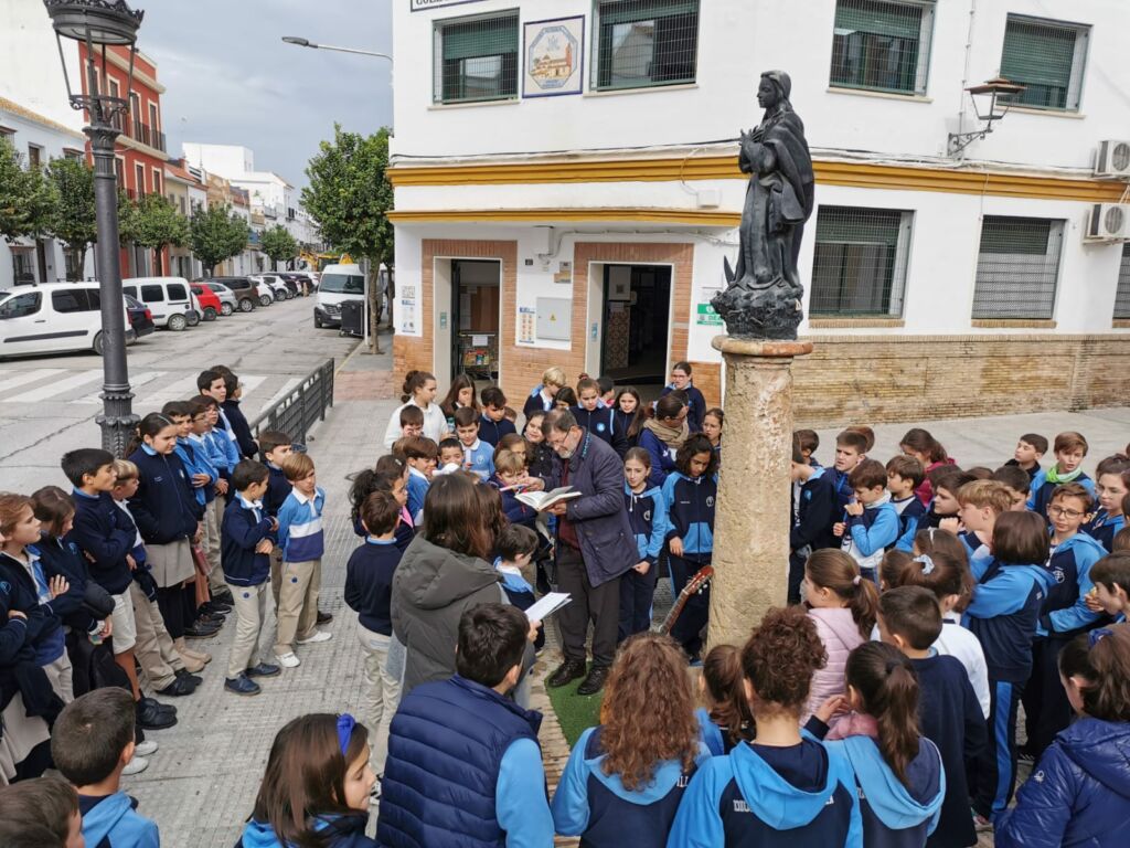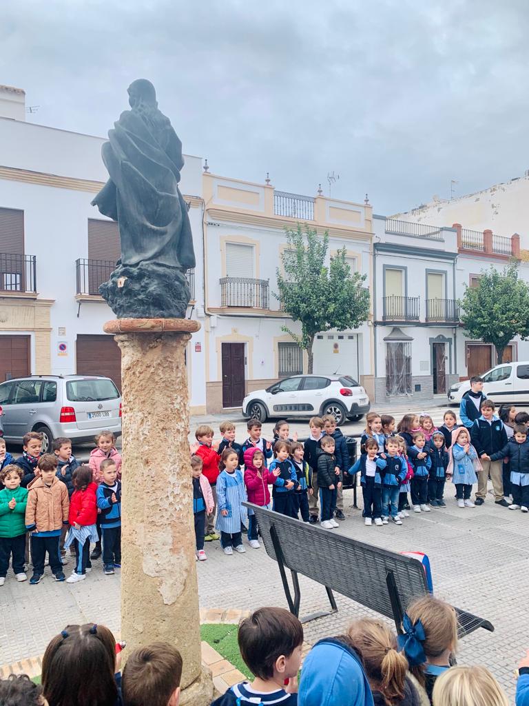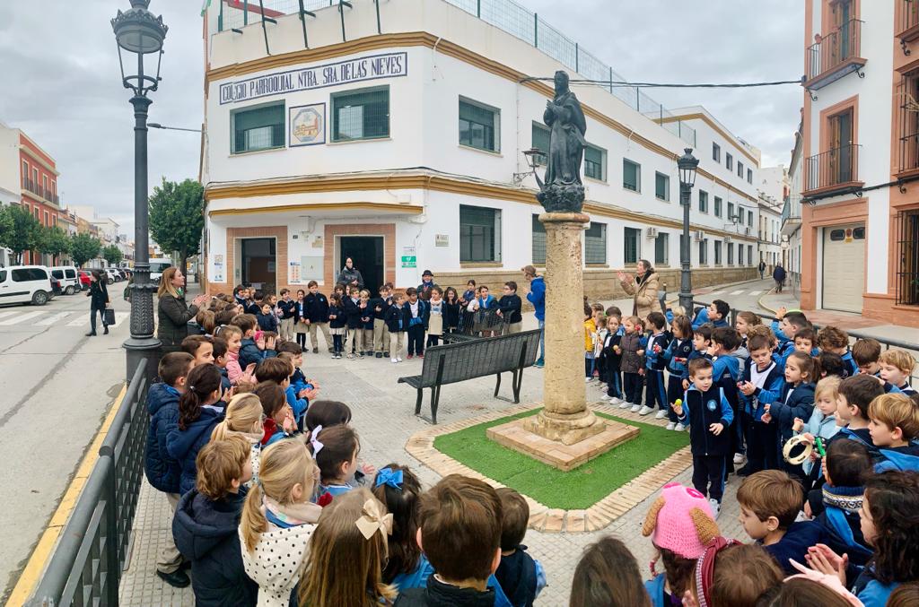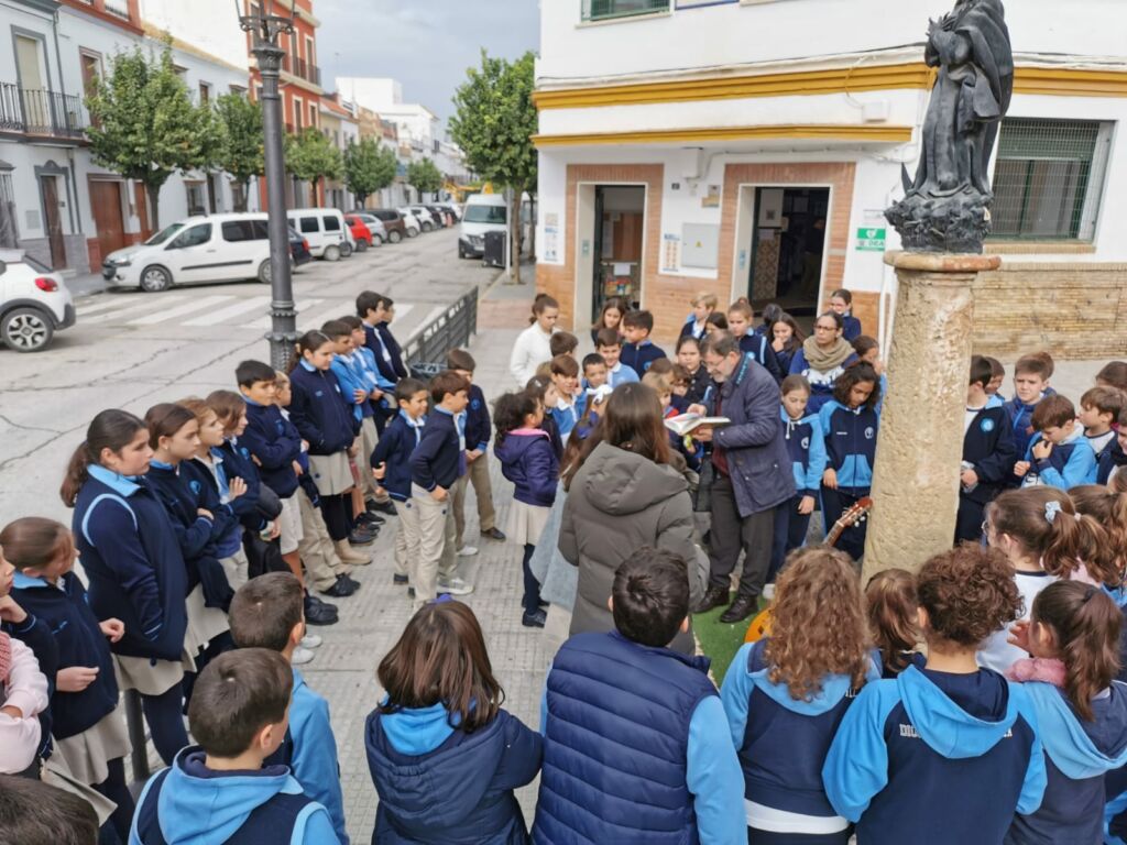 Nuestro alumnado de Infantil y Primaria ha salido a la puerta a cantar a la Virgen Inmaculada que está enfrente del Colegio.