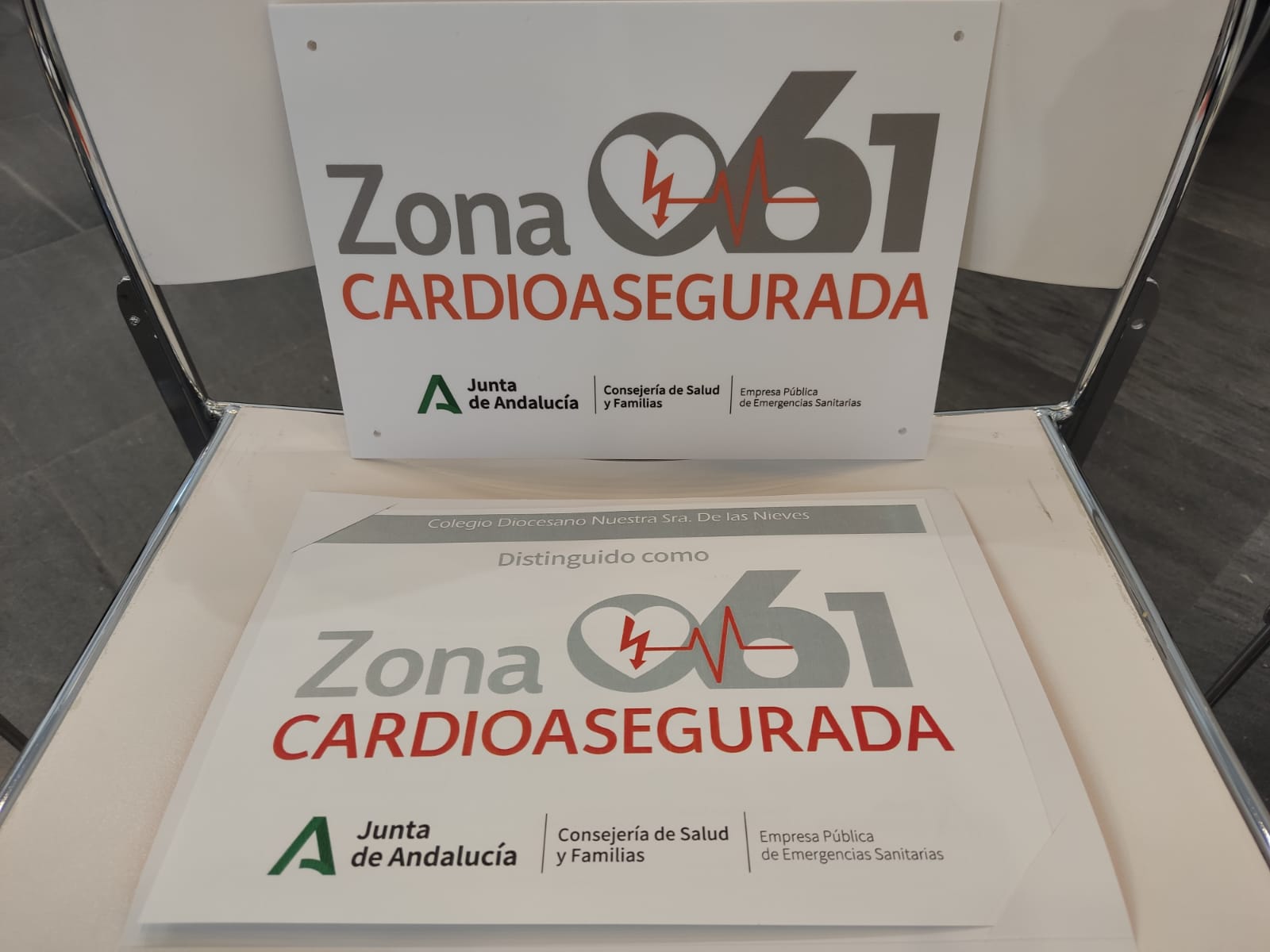 El Centro de Emergencias Sanitarias 061, perteneciente al Servicio Andaluz de Salud de la Consejería de Salud y Familias, ha concedido a nuestro Centro la distinción «zona cardioasegurada».