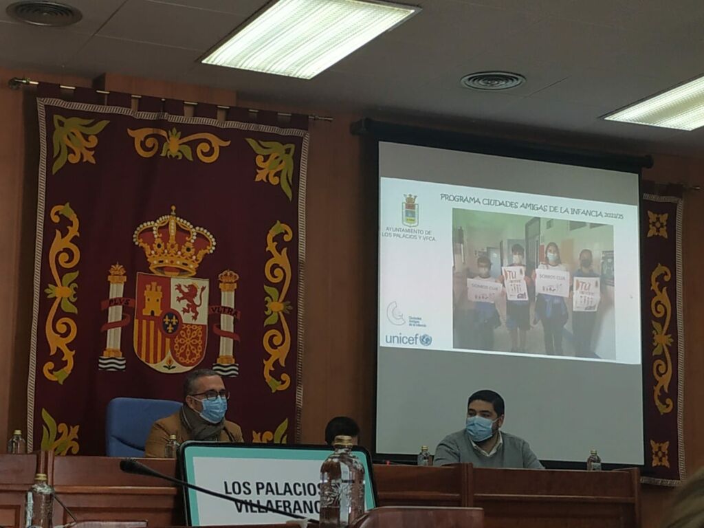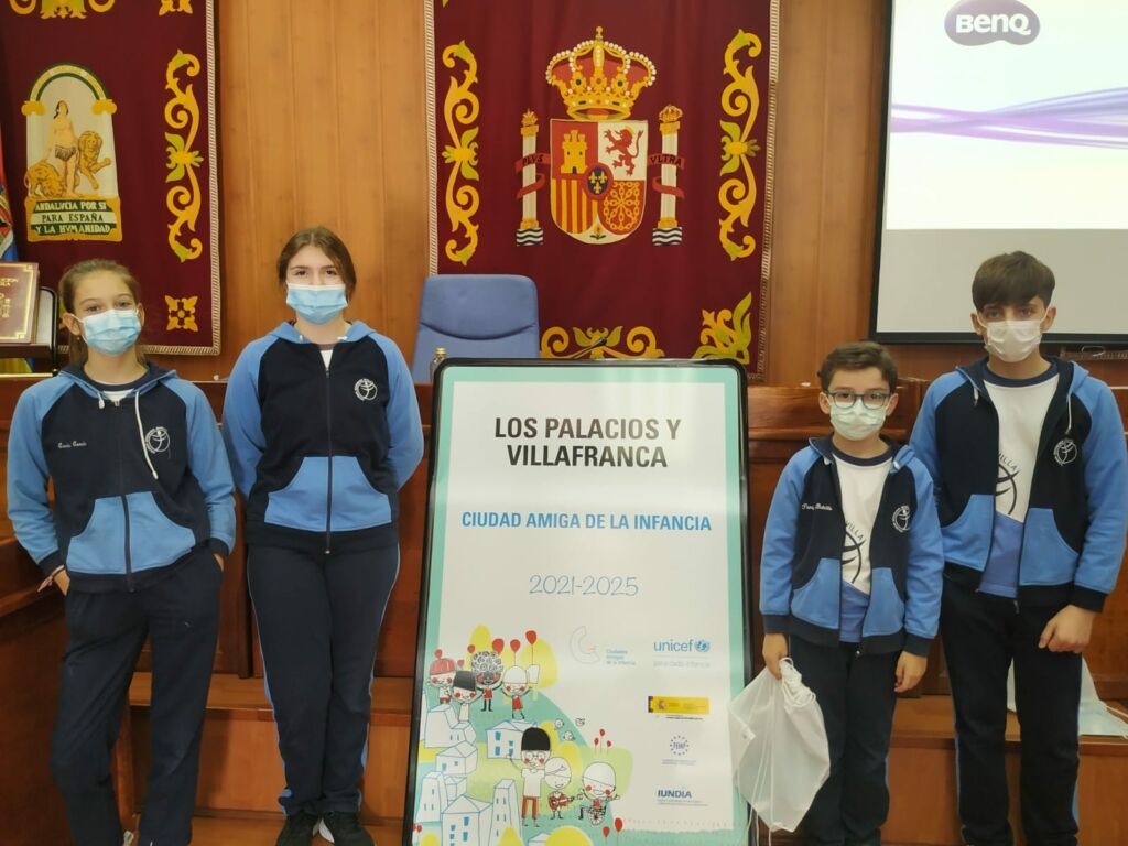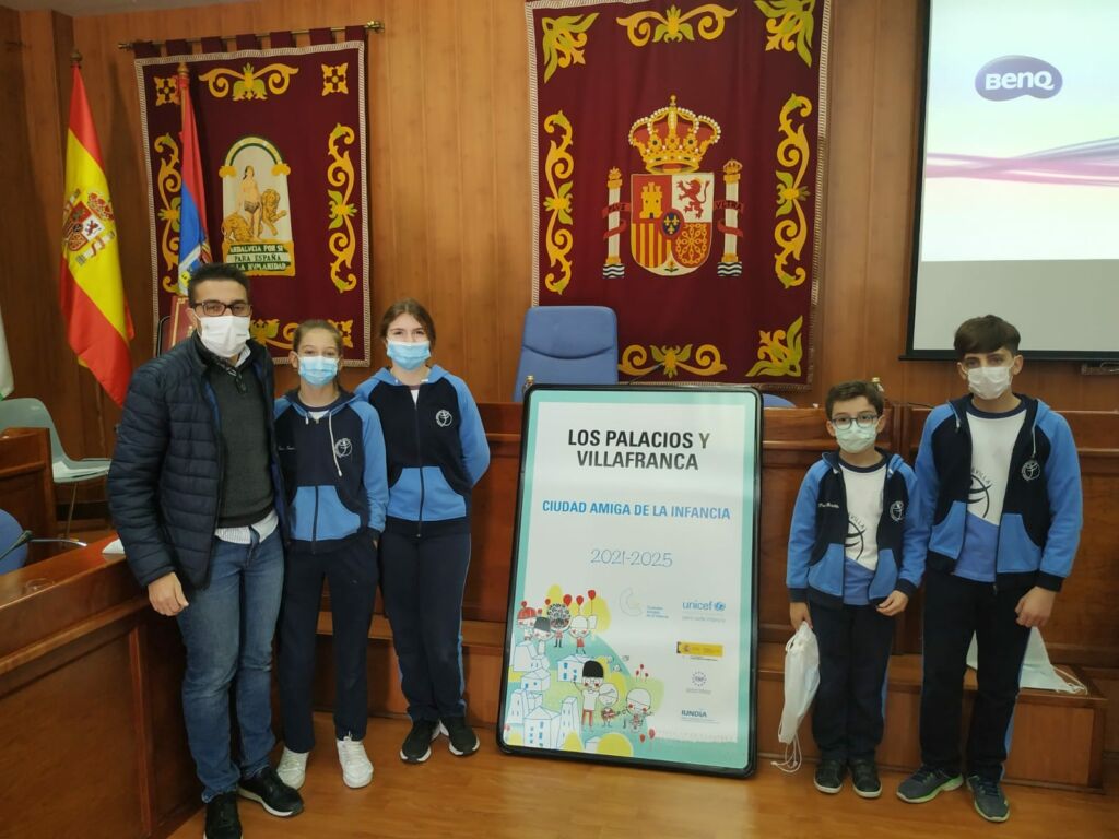 En el Salón de Plenos, el alcalde, Juan Manuel Valle, ha recibido, esta mañana, a los representantes del CLIA, el Consejo Local de la Infancia y la Adolescencia de nuestra localidad. Un acto que ha servido, además, para presentar la placa con la que se reconoce a Los Palacios y Villafranca como “Ciudad Amiga de la Infancia”.