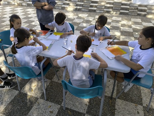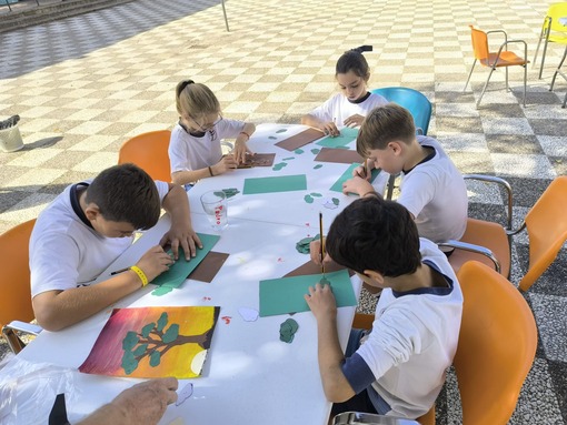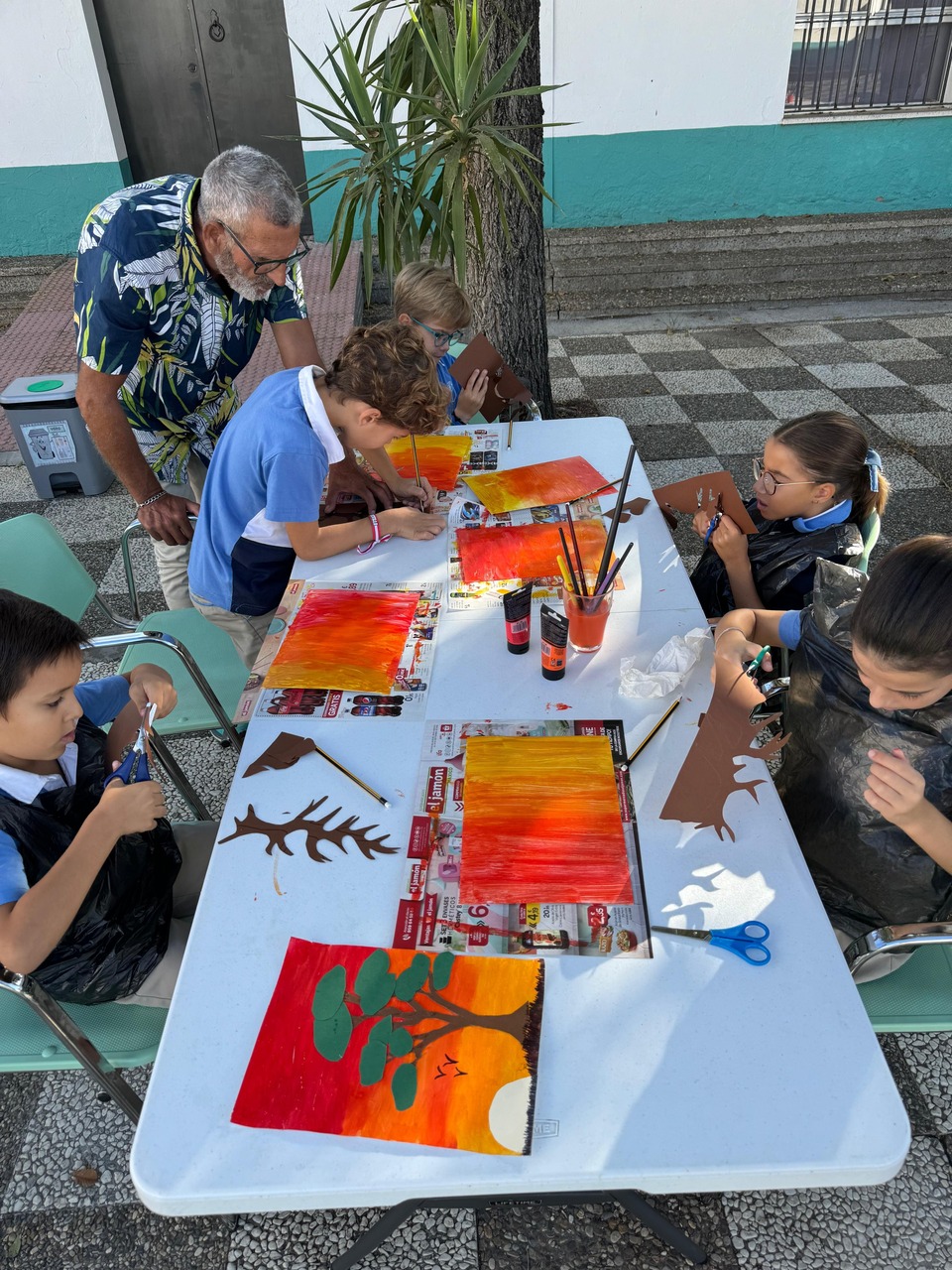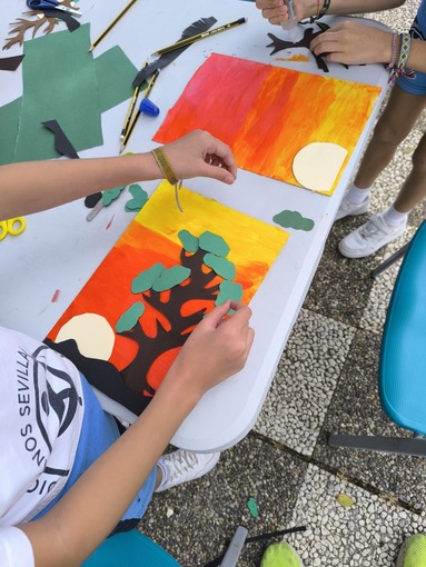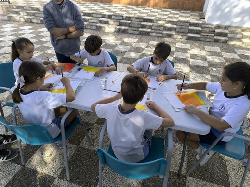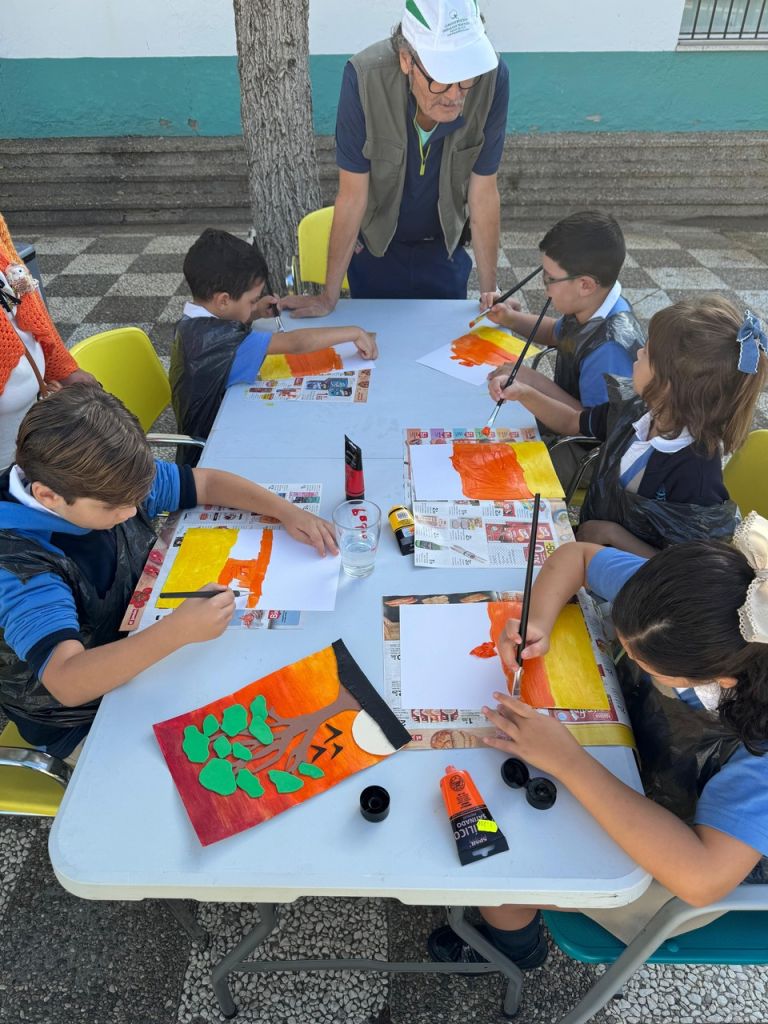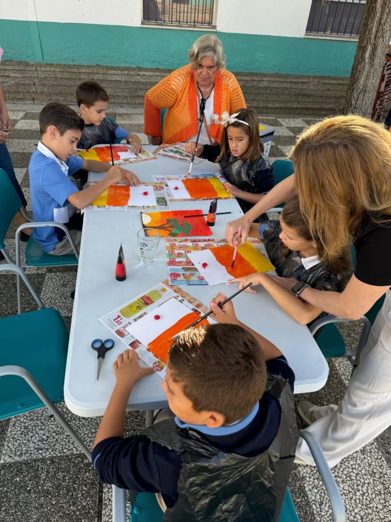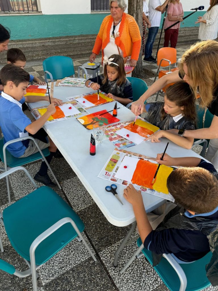 En esta ocasión, la actividad compartida entre niños y usuarios ha sido la realización de una pintura. Precisamente, Ricardo, usuario del Centro les explicaba que la pintura es una tarea que le gusta practicar, que le ayuda a tener la mente ocupada y expresar, a través de ella, sus emociones y estados de ánimo. El propio Ricardo expresaba como buena y terapéutica su experiencia en el Centro Social Los Palacios, y gracias a las diferentes ocupaciones y talleres que les programan a diario, teatro, cocina, huerto, manualidades…