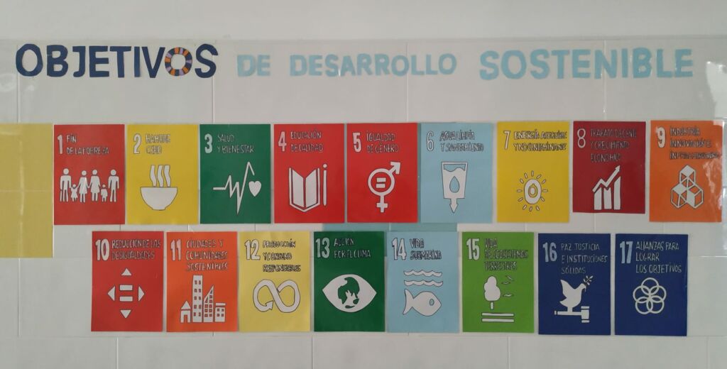 El alumnado de 2º y 3º ESO matriculado en la materia de diseño propio «Proyecto Aprendizaje Servicio» (P.A.S) ha realizado los 17 puntos sobre el Desarrollo Sostenible de la ONU.