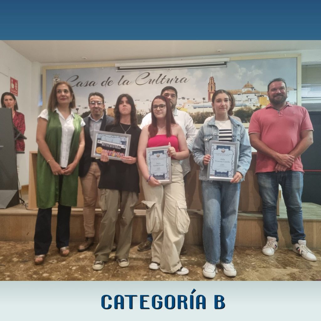 En categoría B, alumnos que cumplen 13, 14, y 15 años, en tercer lugar ha quedado la obra “Cuento de mar”, de Lucía García Curado. En segundo puesto ha sido para la obra “Suburbio”, de Julia Troncoso Castillo; y la ganadora ha sido la obra “La tristeza exterior”, de la alumna del IES Marismas Eva Liébanas Sánchez que se lleva también un vale de 75 euros para canjear por material escolar.