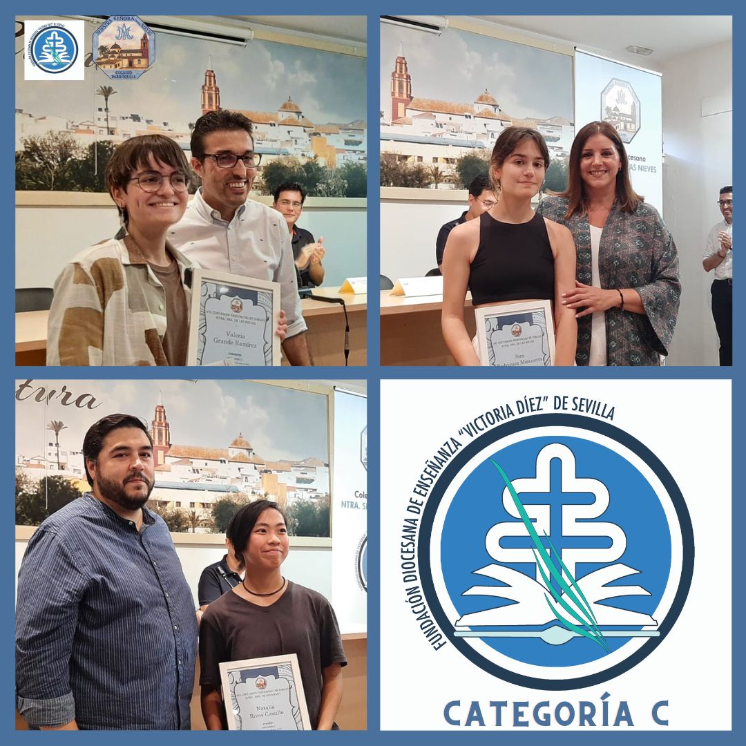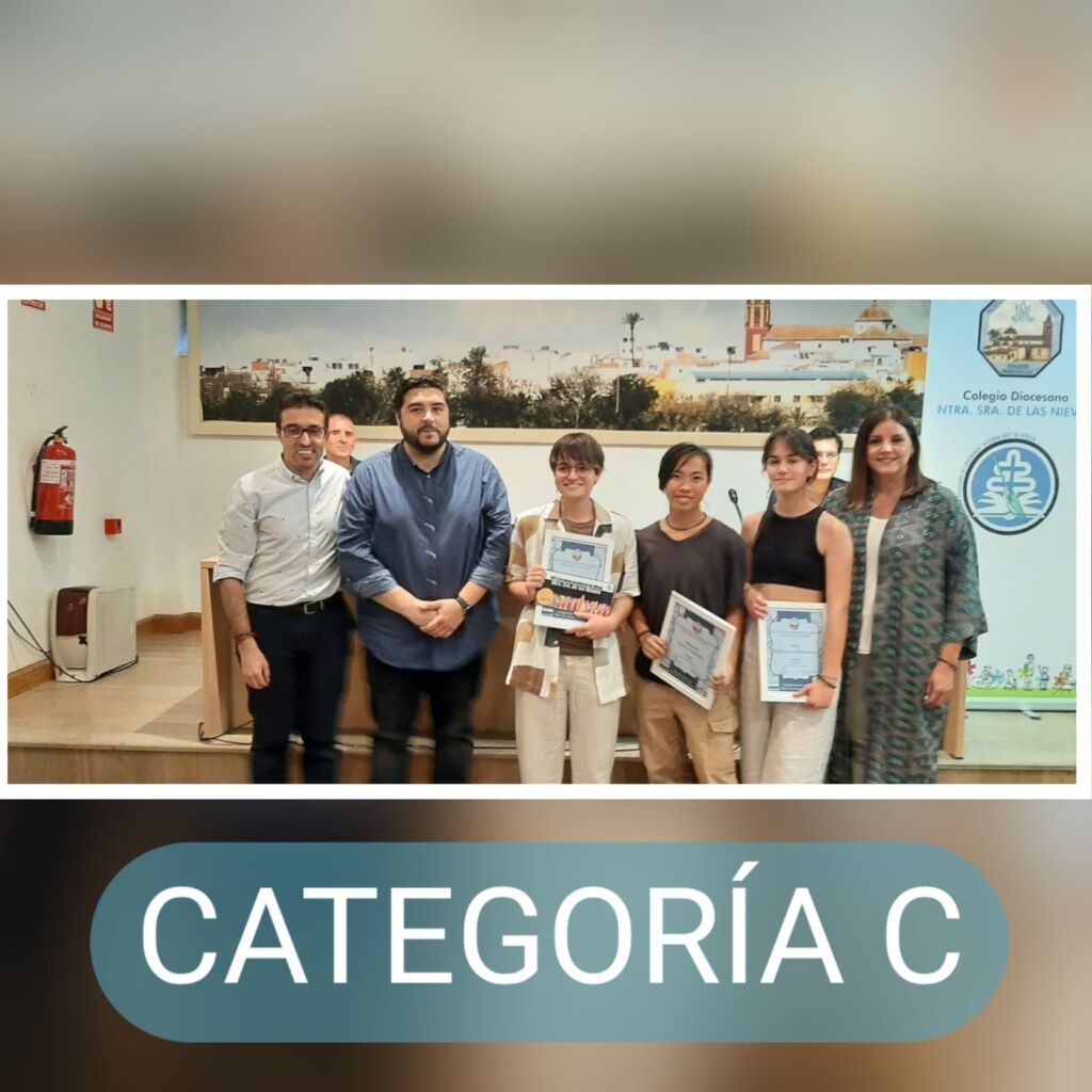 En categoría C, a la que han concurrido alumnos de 4º de la ESO y los dos primeros cursos de educación postobligatoria, la tercera clasificada fue Natalia Rivas Castillo del IES Almudeyne de Los Palacios, una obra sin título; la segunda clasificada fue Sira Rodríguez Mirasierra del IES José María Infante de Utrera con su obra “Tres personas en la playa”, y la ganadora de la categoría que recibió un premio dotado con 100 euros fue para Valeria Grande Ramírez del IES Castillo de Cote de Montellano con su obra “Selflove”.