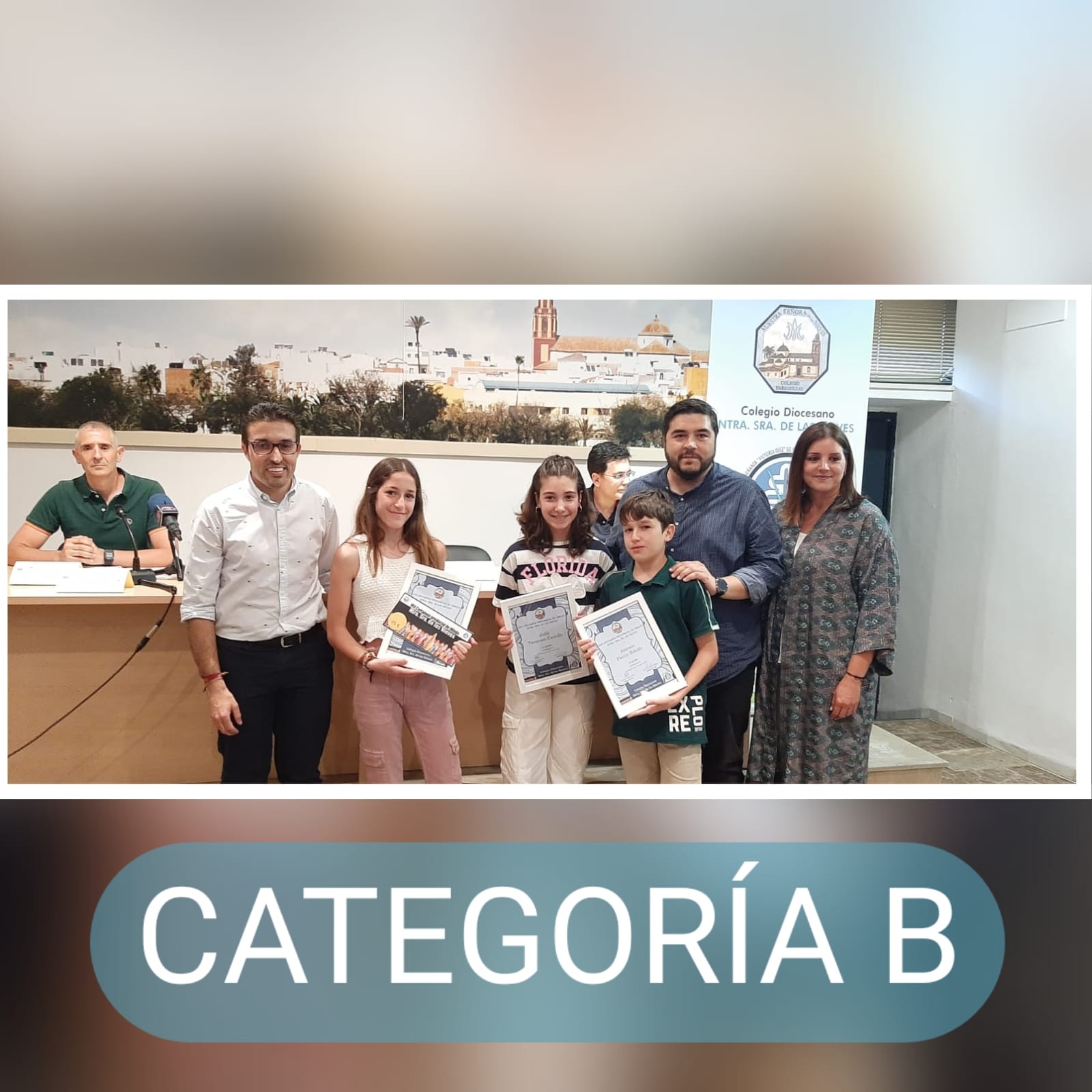 En categoría B, para alumnos de 1º, 2º y 3º de Educación Secundaria Obligatoria; el tercer clasificado era Antonio parejo Bobillo con su obra “Mi noche estrellada”; la segunda fue Julia Troncoso Castillo con su obra “Un mundo mágico” y la ganadora que recibió un premio en metálico dotado con 75 euros fue para Laura Ramos Parrales con su obra “El reflejo del atardecer”.