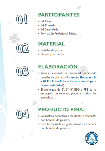 Dicha iniciativa ha consistido en la decoración del Árbol de Navidad utilizando materiales reciclados por el alumnado de todos los centros educativos, incluyendo las pedanías.