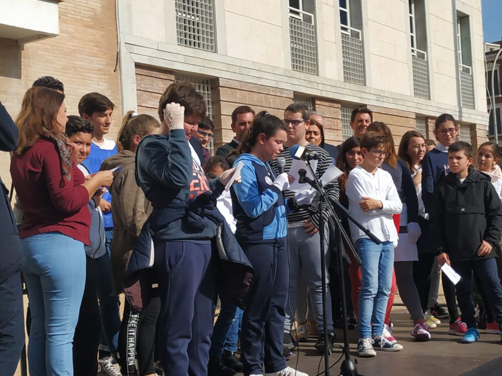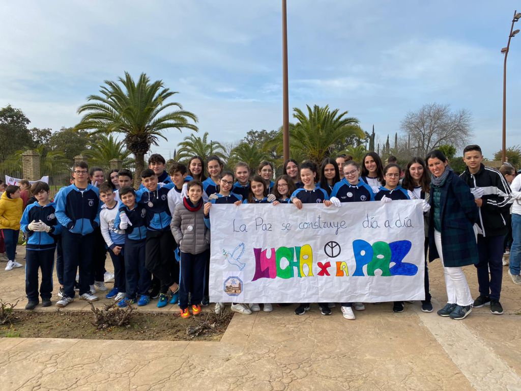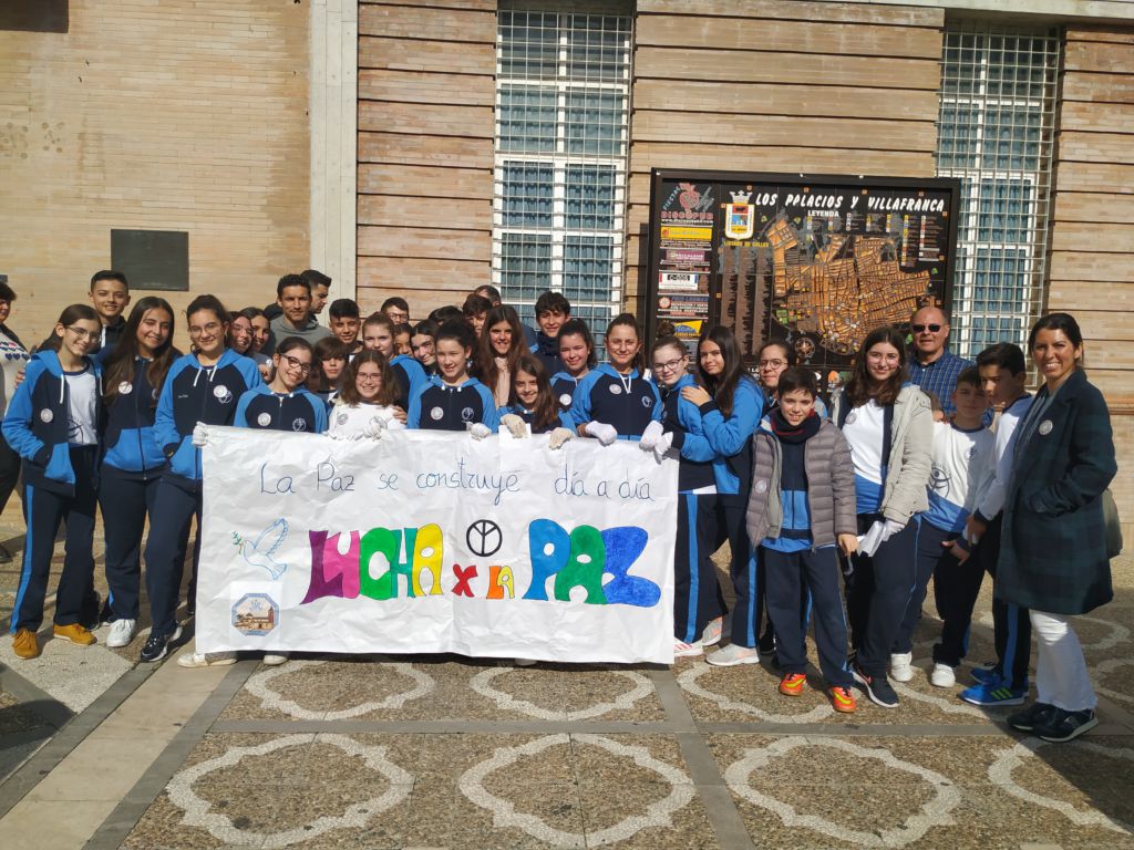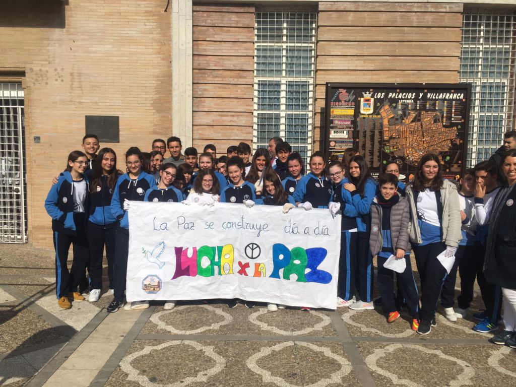 La Comunidad Educativa de Los Palacios y Villafranca al completo participaba, esta mañana, en una nueva edición de la Marcha por la Paz que culminaba en la Plaza de Andalucía con la lectura de un manifiesto y la interpretación de una coreografía. Un acto que, en esta segunda edición, se enmarca dentro de la programación del I Congreso Nacional de Mediación Deportiva.