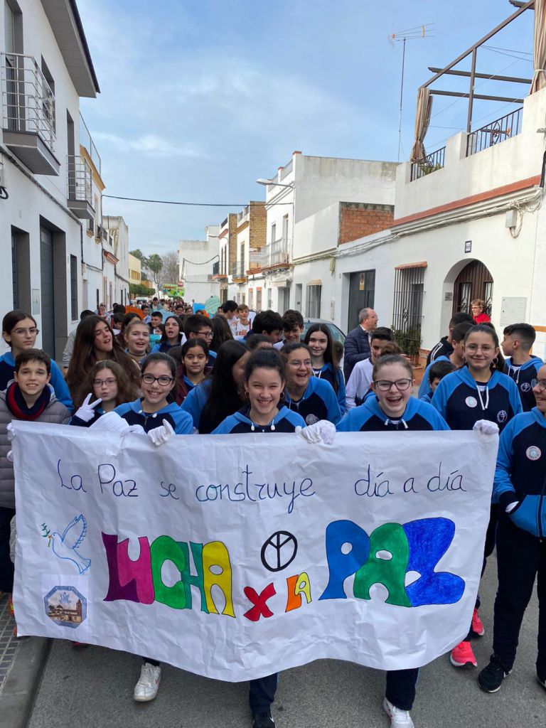 En esta segunda edición de la Marcha por la Paz participaban profesores y alumnos de todos los centros educativos de la localidad, tanto institutos como colegios. A las 11.30, aproximadamente, se organizaban en una gran comitiva que salía desde el Parque de las Marismas en dirección a la Plaza de Andalucía. Los alumnos y alumnas portaban pancartas conmemorativas del Día Mundial de la Paz y la No Violencia.