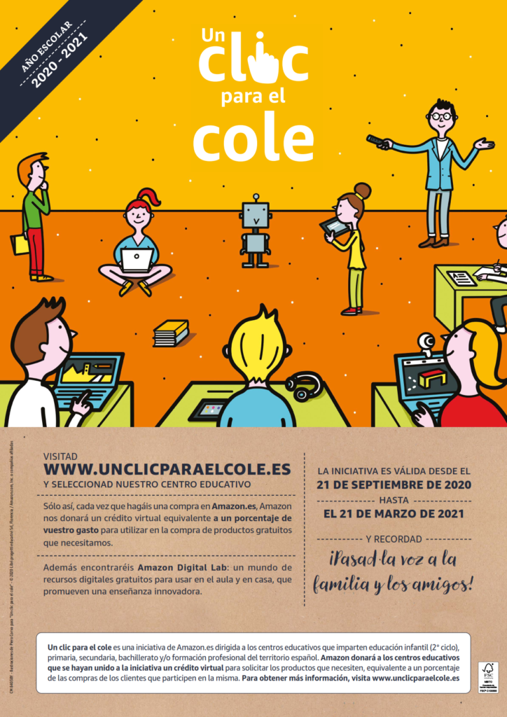 Visita la web http://bit.ly/unclicparaelcole y participa en la iniciativa de Amazon para apoyar a nuestro centro educativo de forma gratuita.
