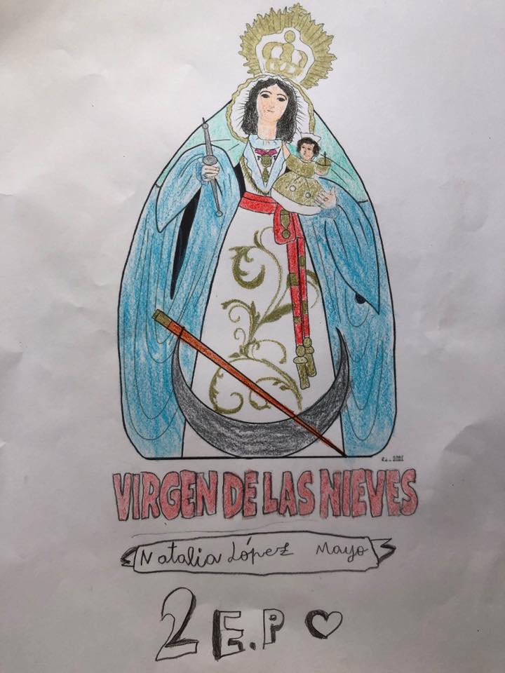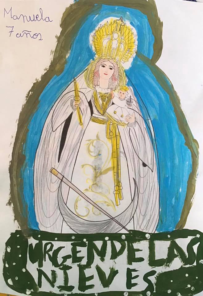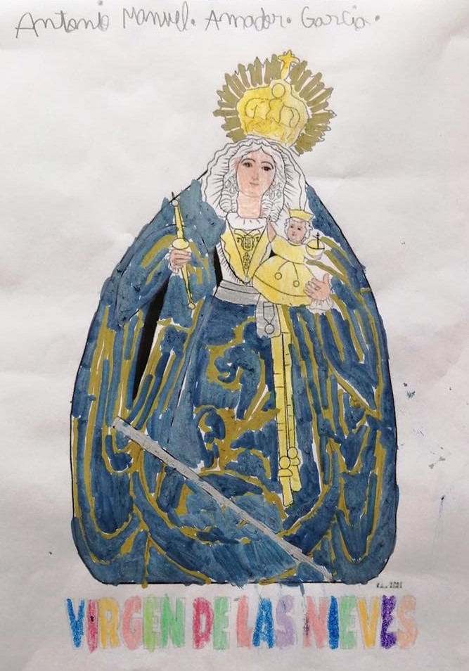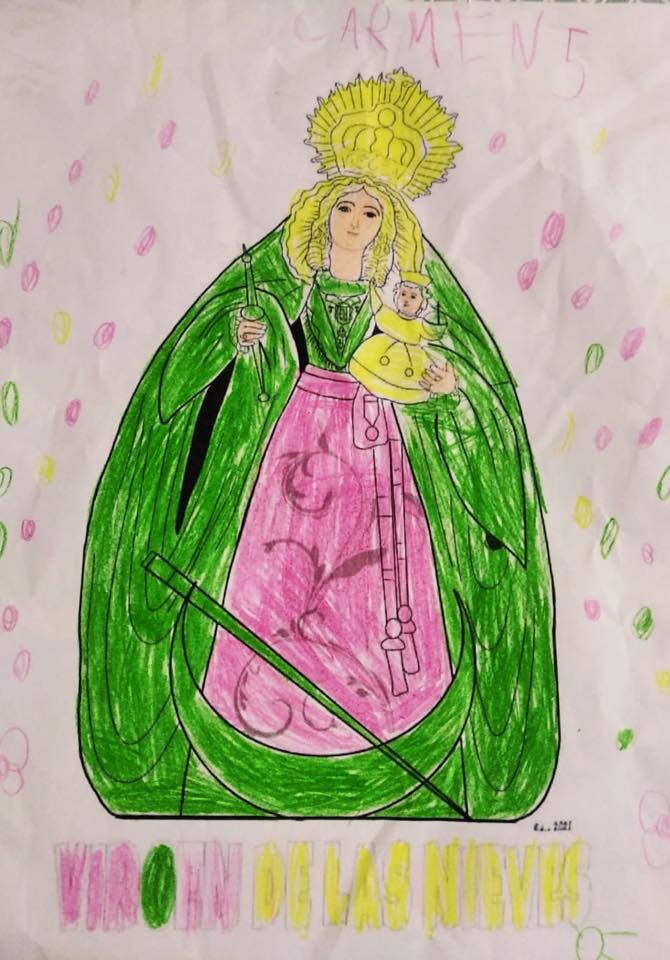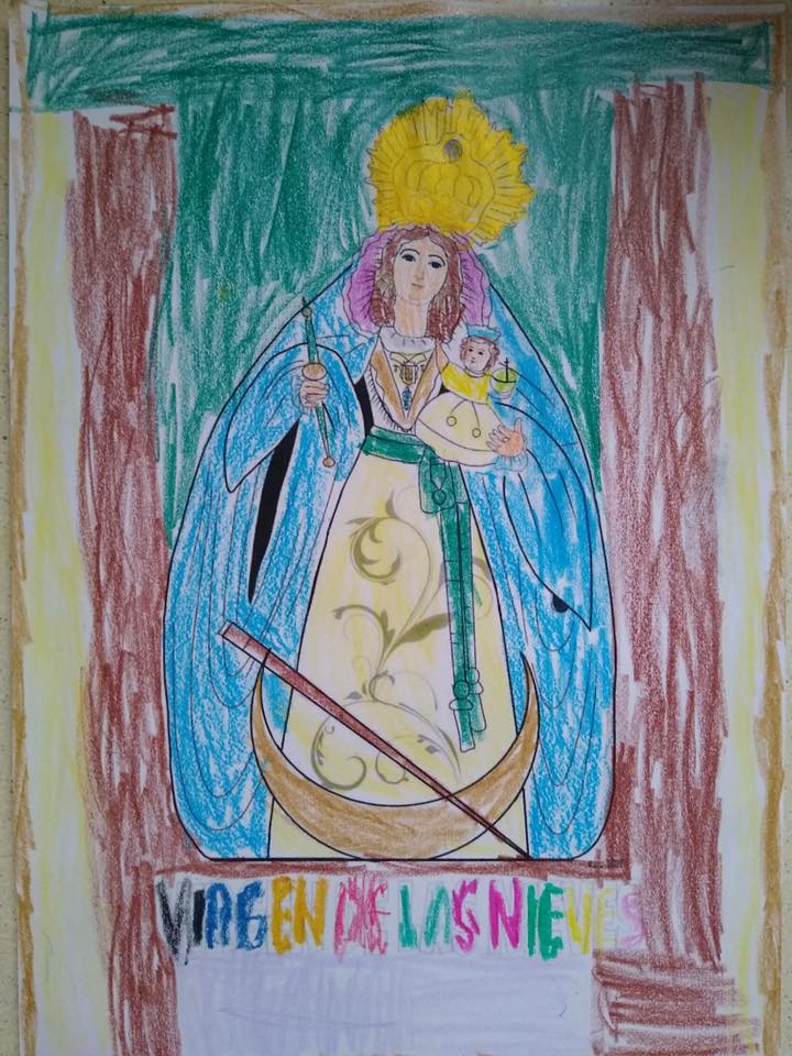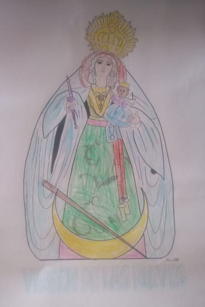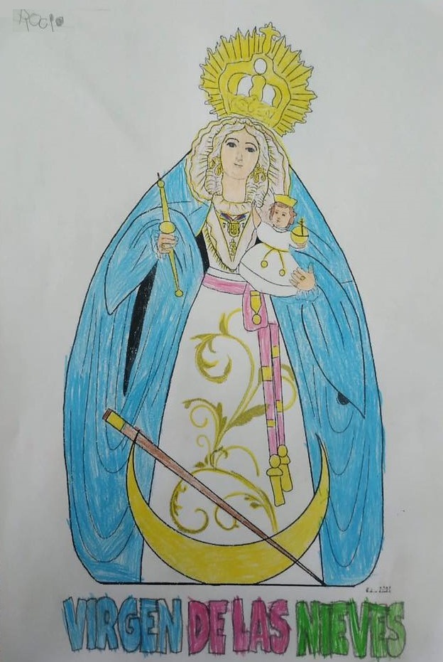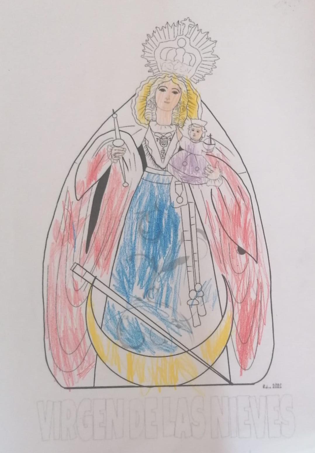 Como «regalos» para Ella, nuestro alumnado de Ed. Infantil y 1º Ciclo EP ha coloreado la imagen de la Virgen Ntra. Sra. de las Nieves, Patrona, Alcaldesa de Los Palacios y Titular de nuestro Centro.