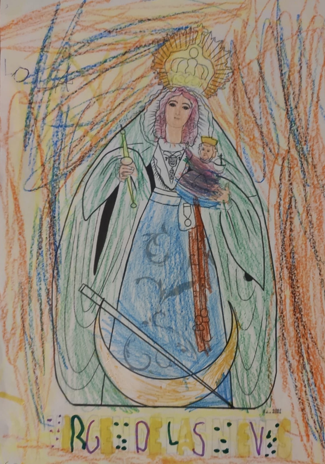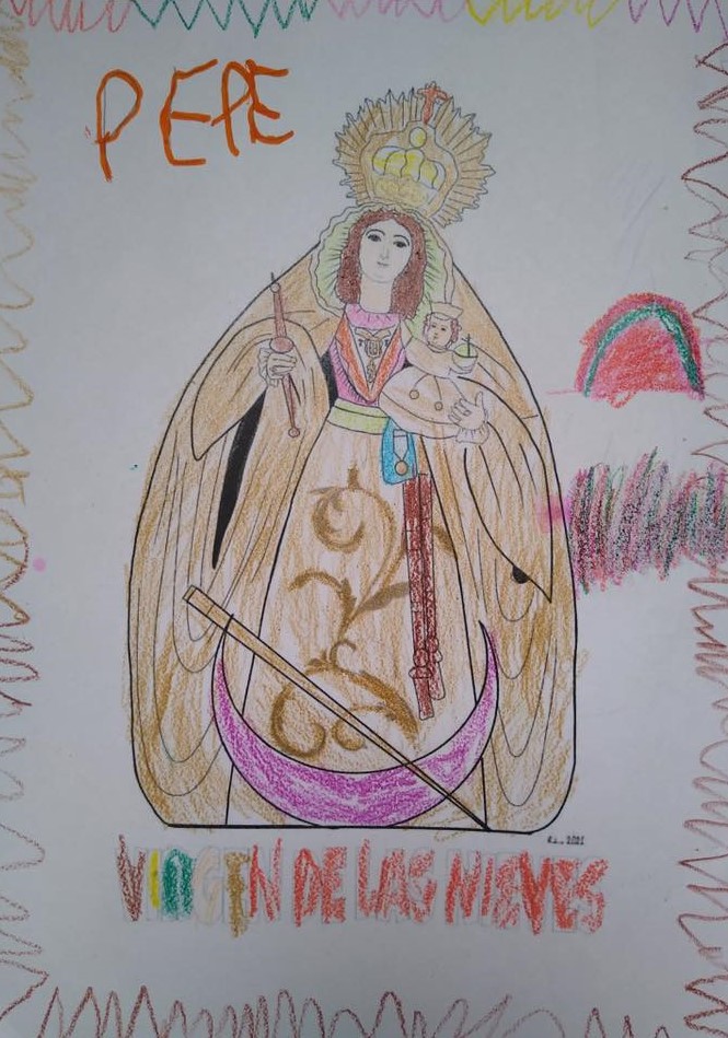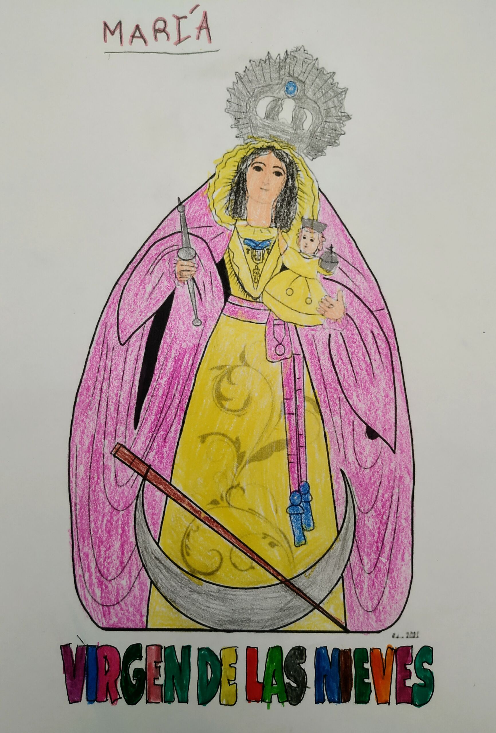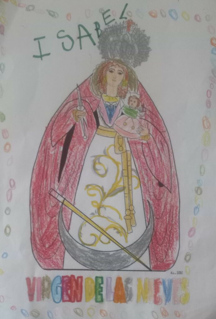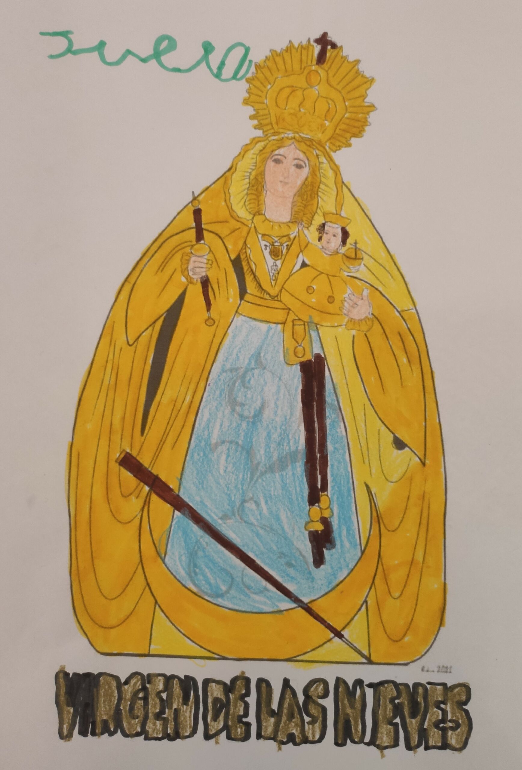 Como «regalos» para Ella, nuestro alumnado de Ed. Infantil y 1º Ciclo EP ha coloreado la imagen de la Virgen Ntra. Sra. de las Nieves, Patrona, Alcaldesa de Los Palacios y Titular de nuestro Centro.