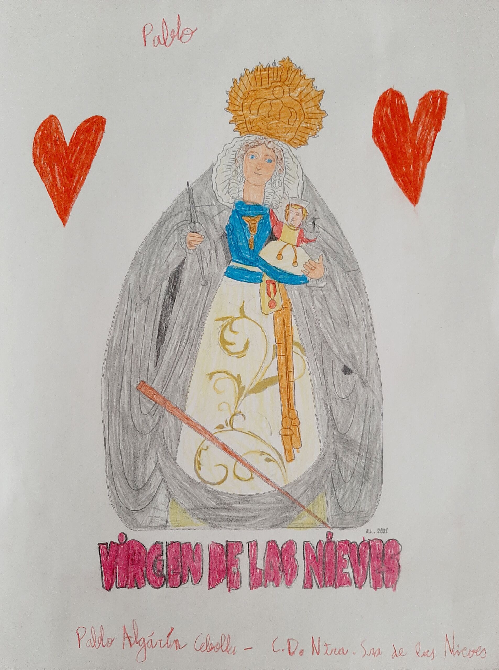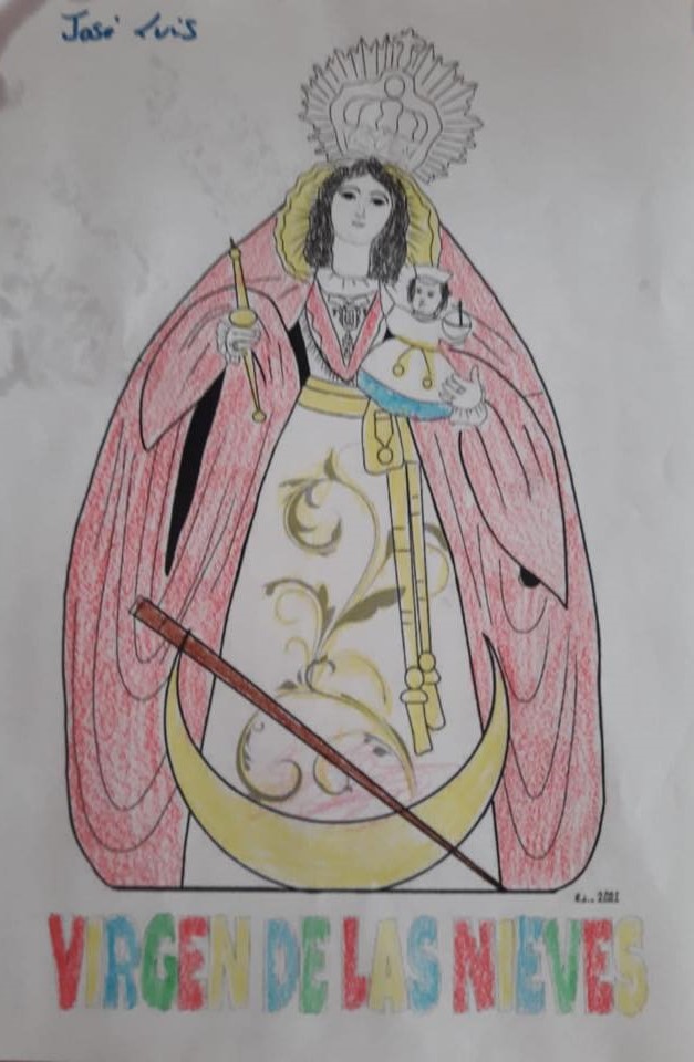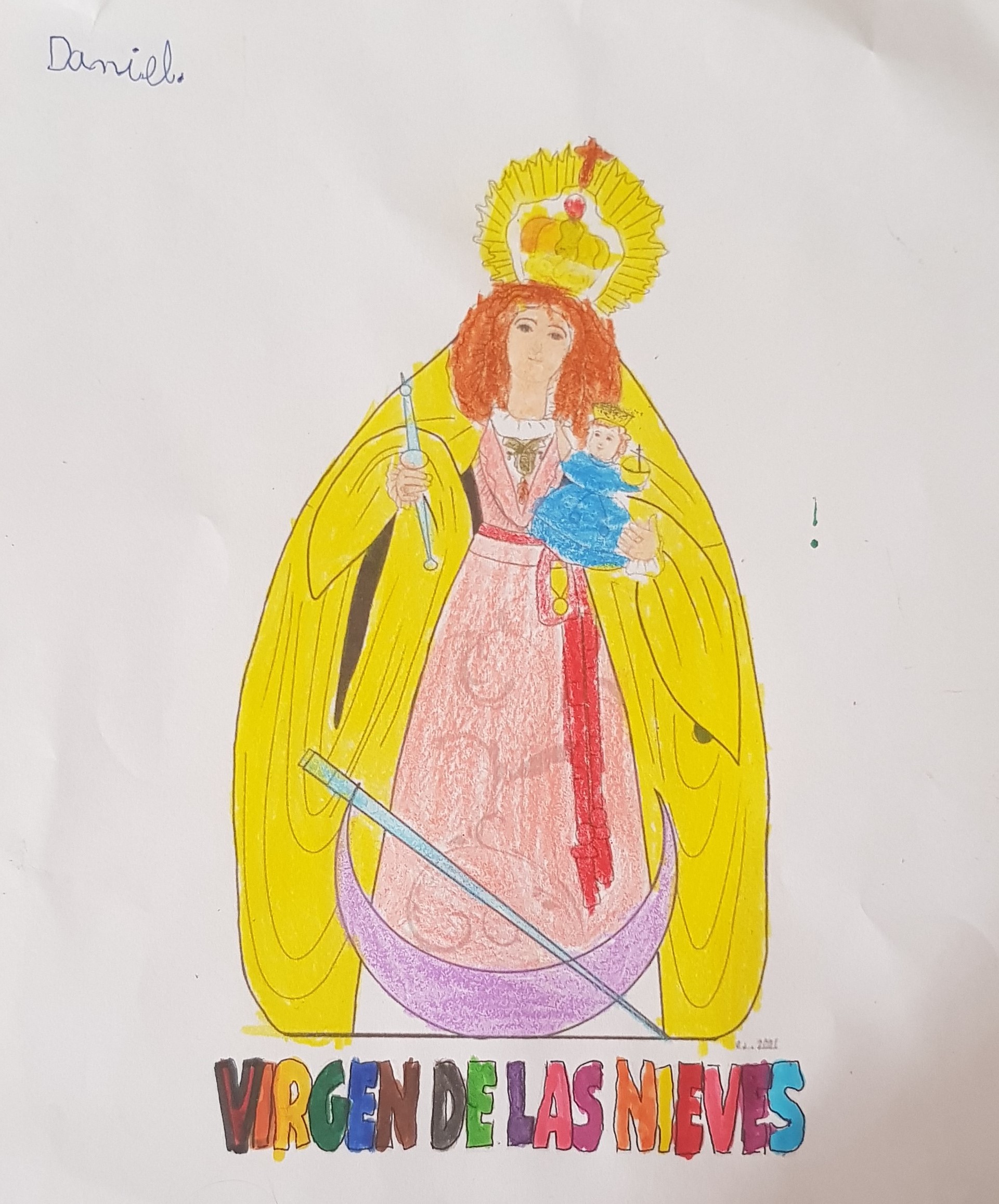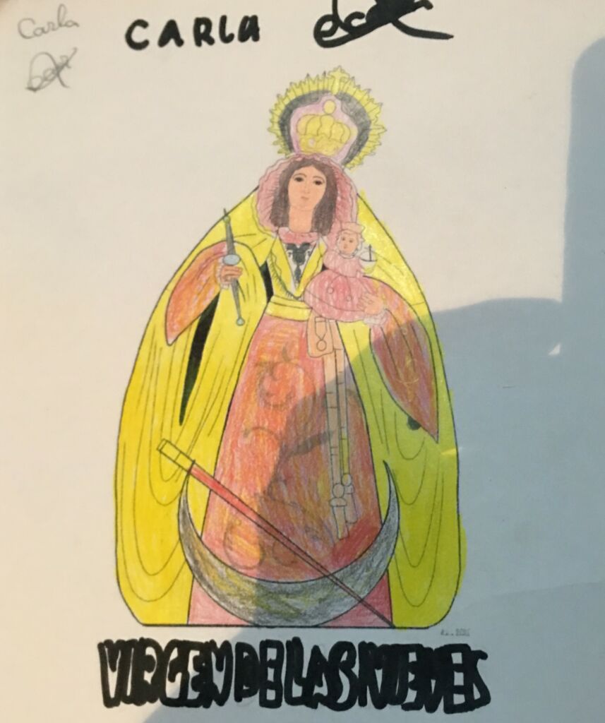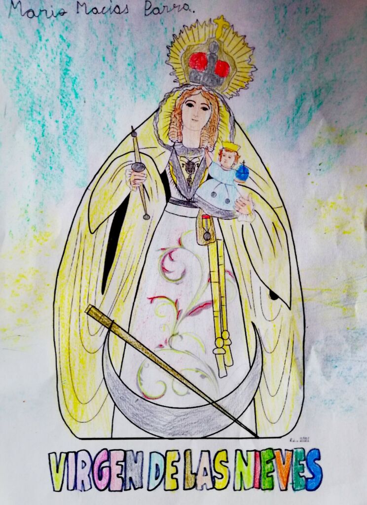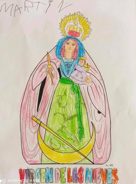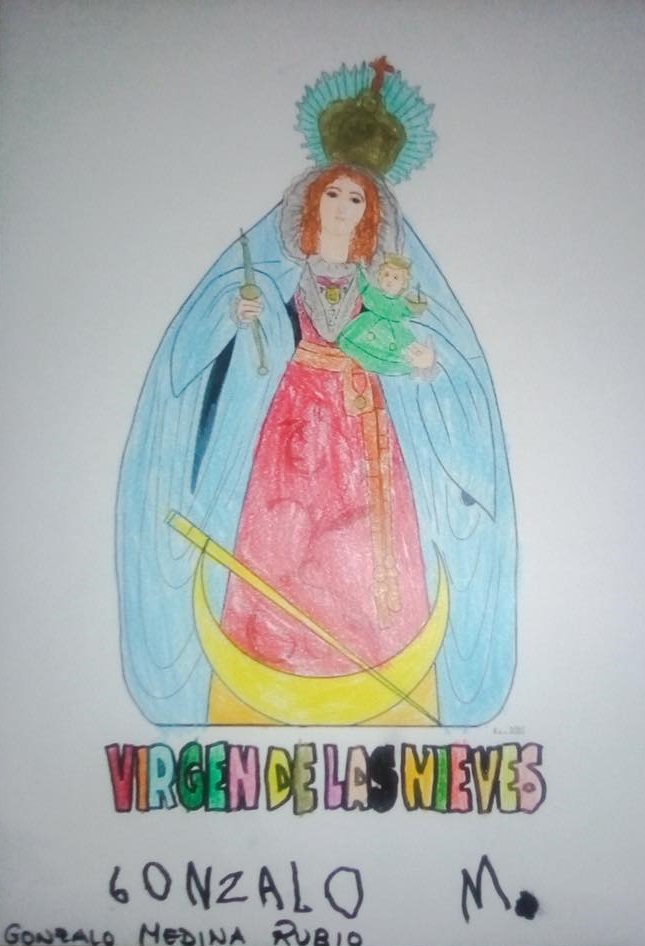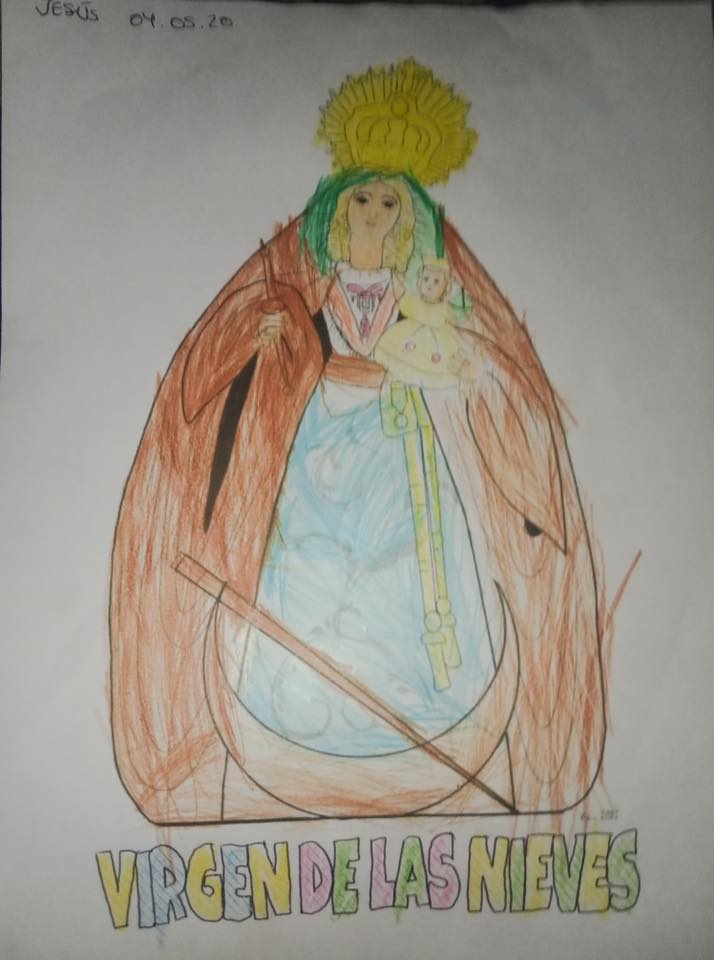 Como «regalos» para Ella, nuestro alumnado de Ed. Infantil y 1º Ciclo EP ha coloreado la imagen de la Virgen Ntra. Sra. de las Nieves, Patrona, Alcaldesa de Los Palacios y Titular de nuestro Centro.