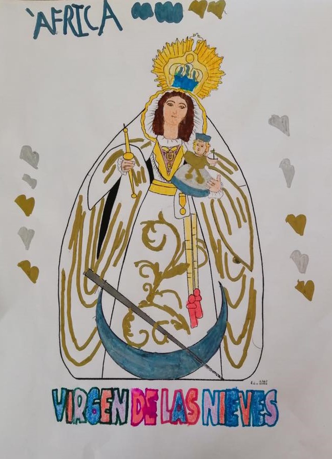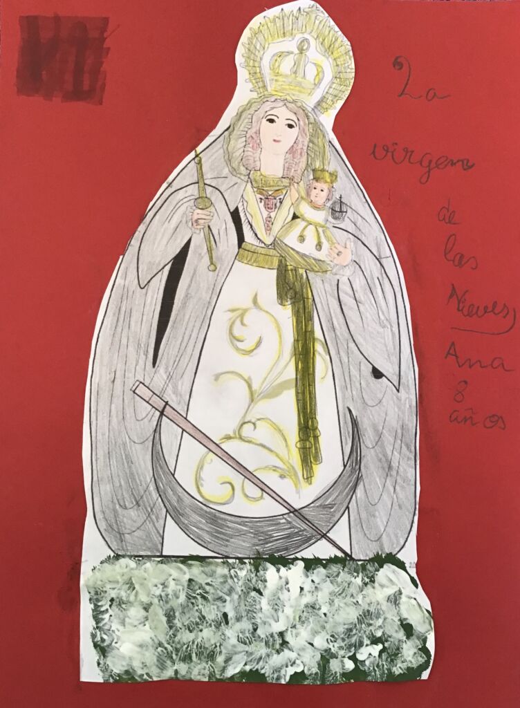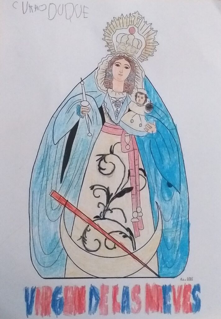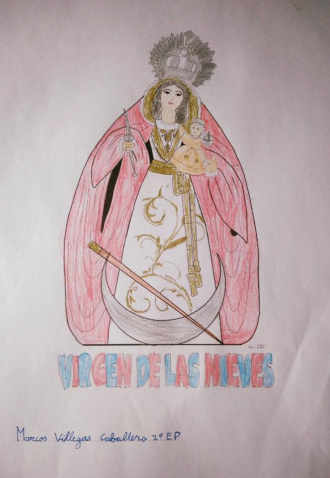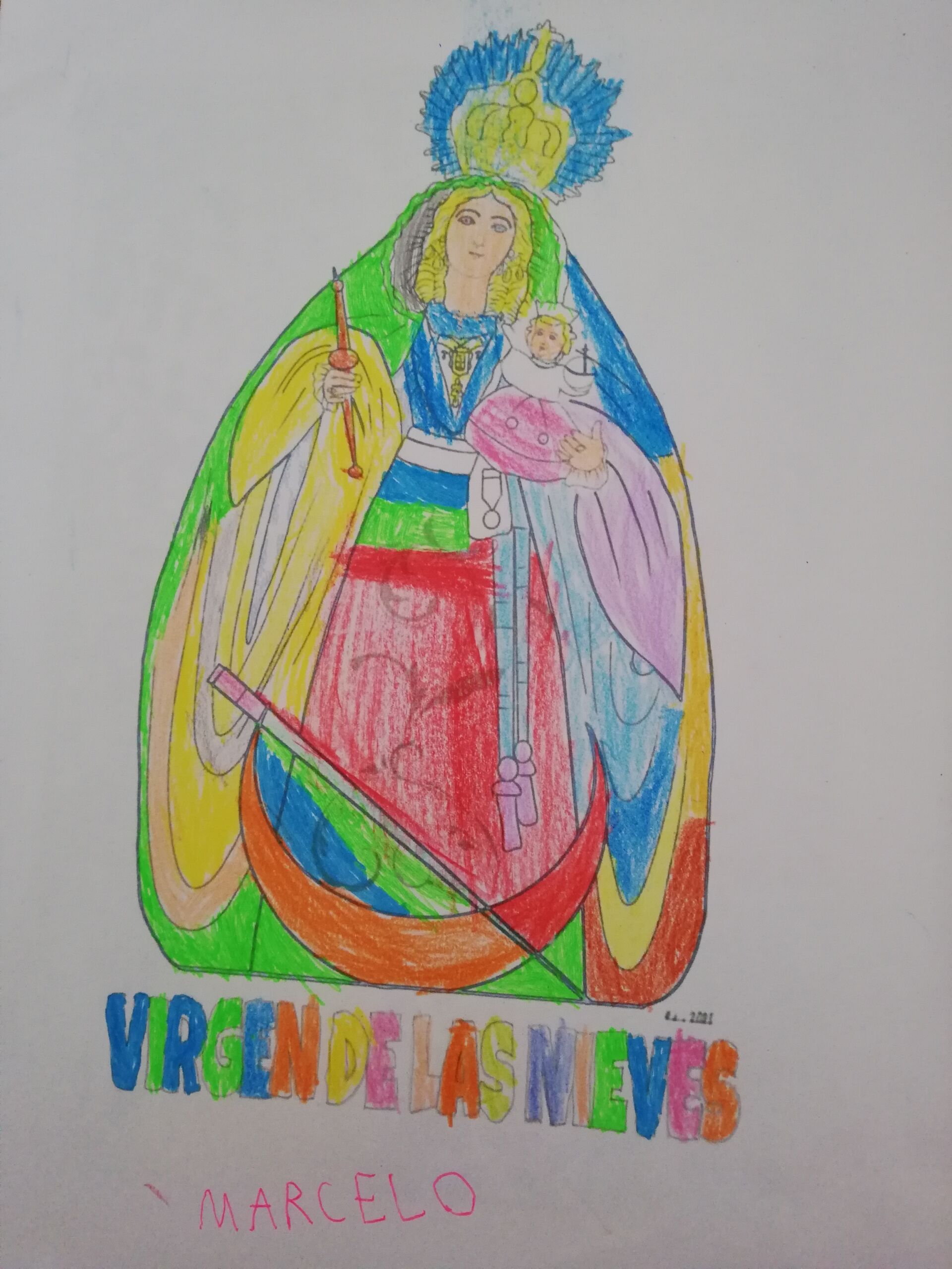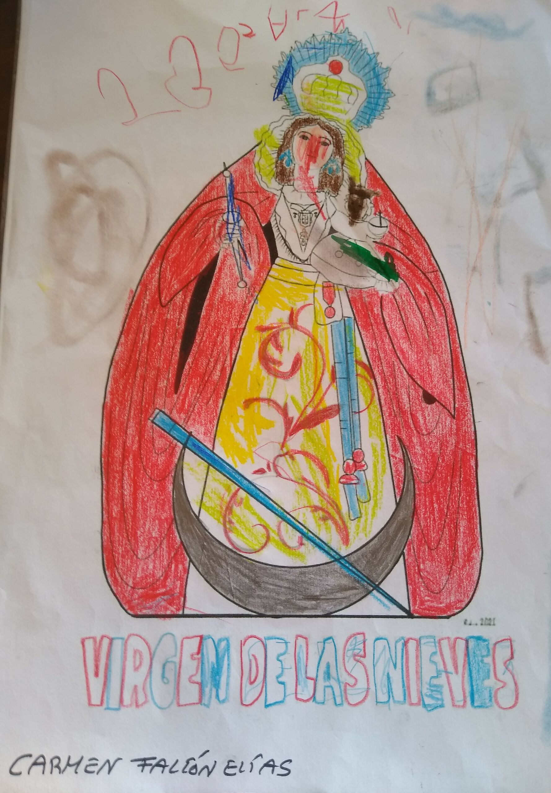 Como «regalos» para Ella, nuestro alumnado de Ed. Infantil y 1º Ciclo EP ha coloreado la imagen de la Virgen Ntra. Sra. de las Nieves, Patrona, Alcaldesa de Los Palacios y Titular de nuestro Centro.
