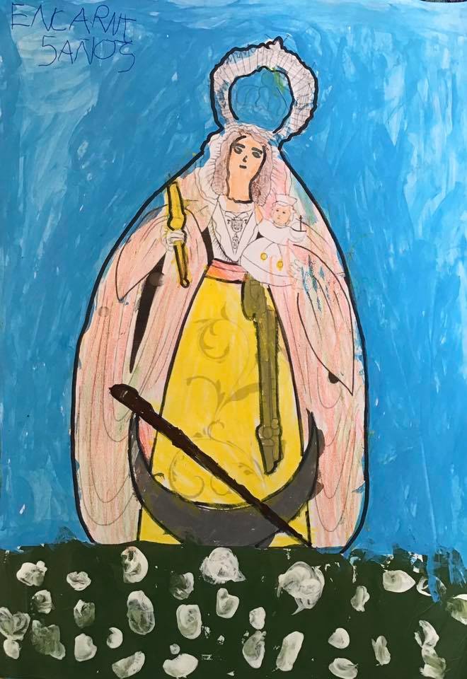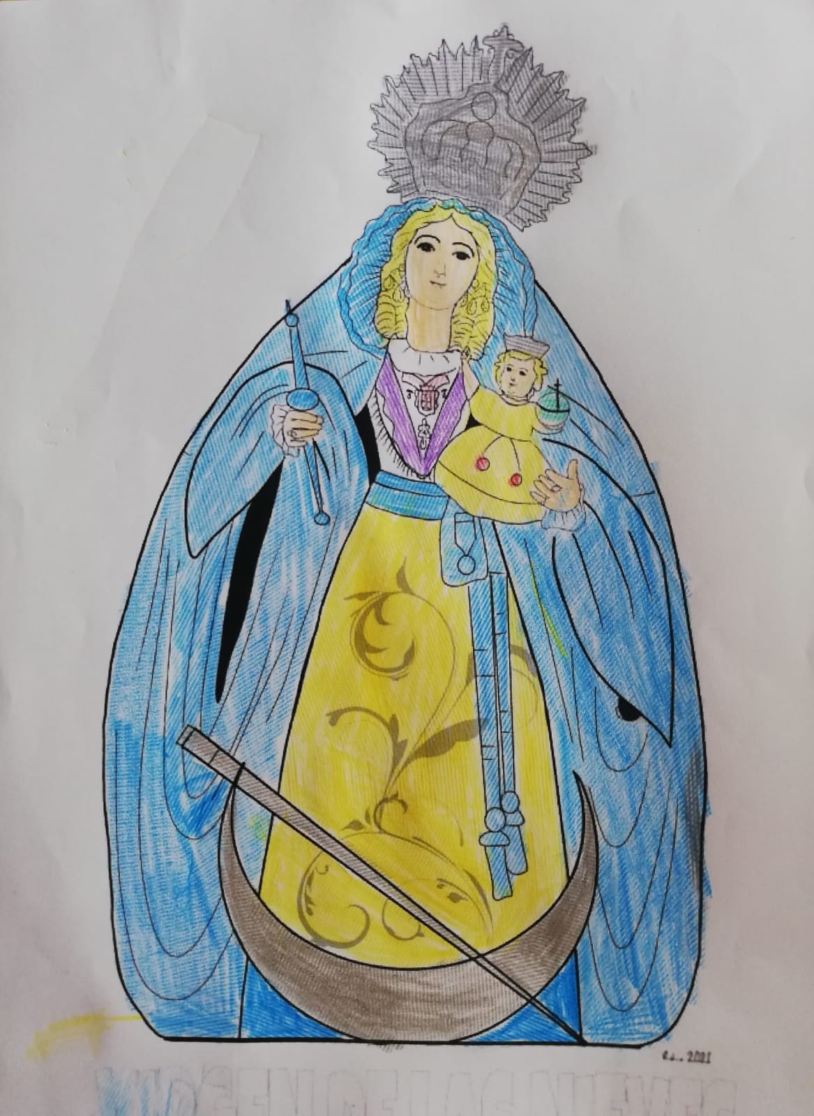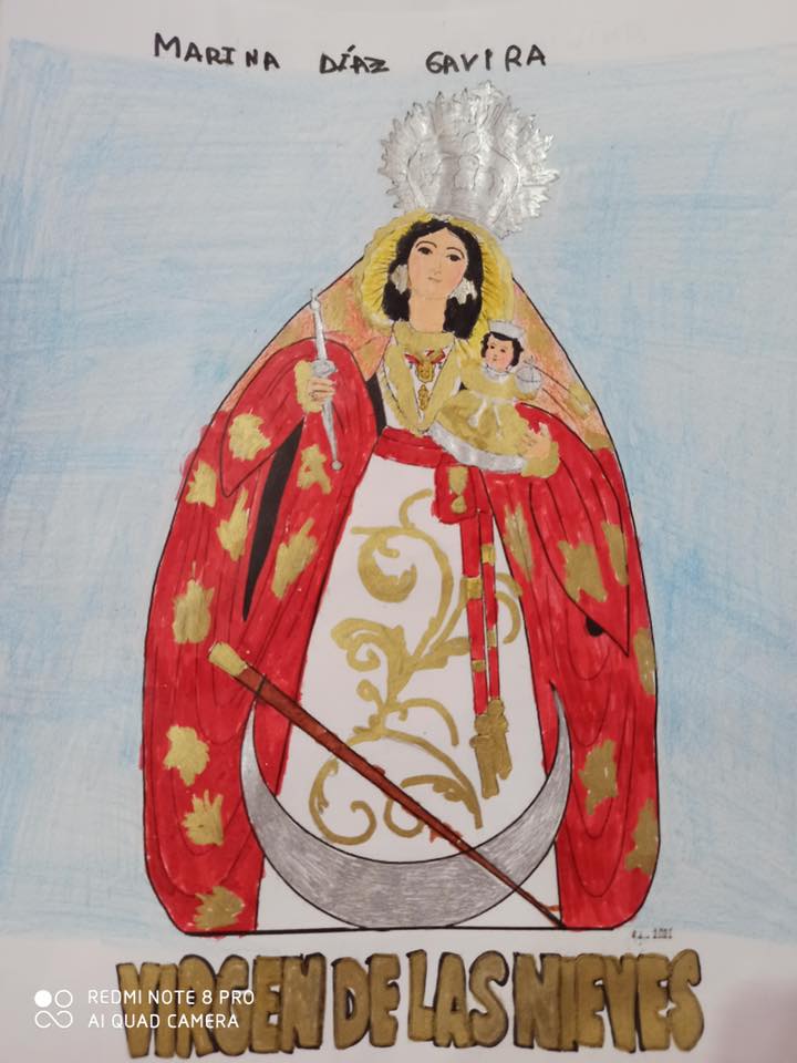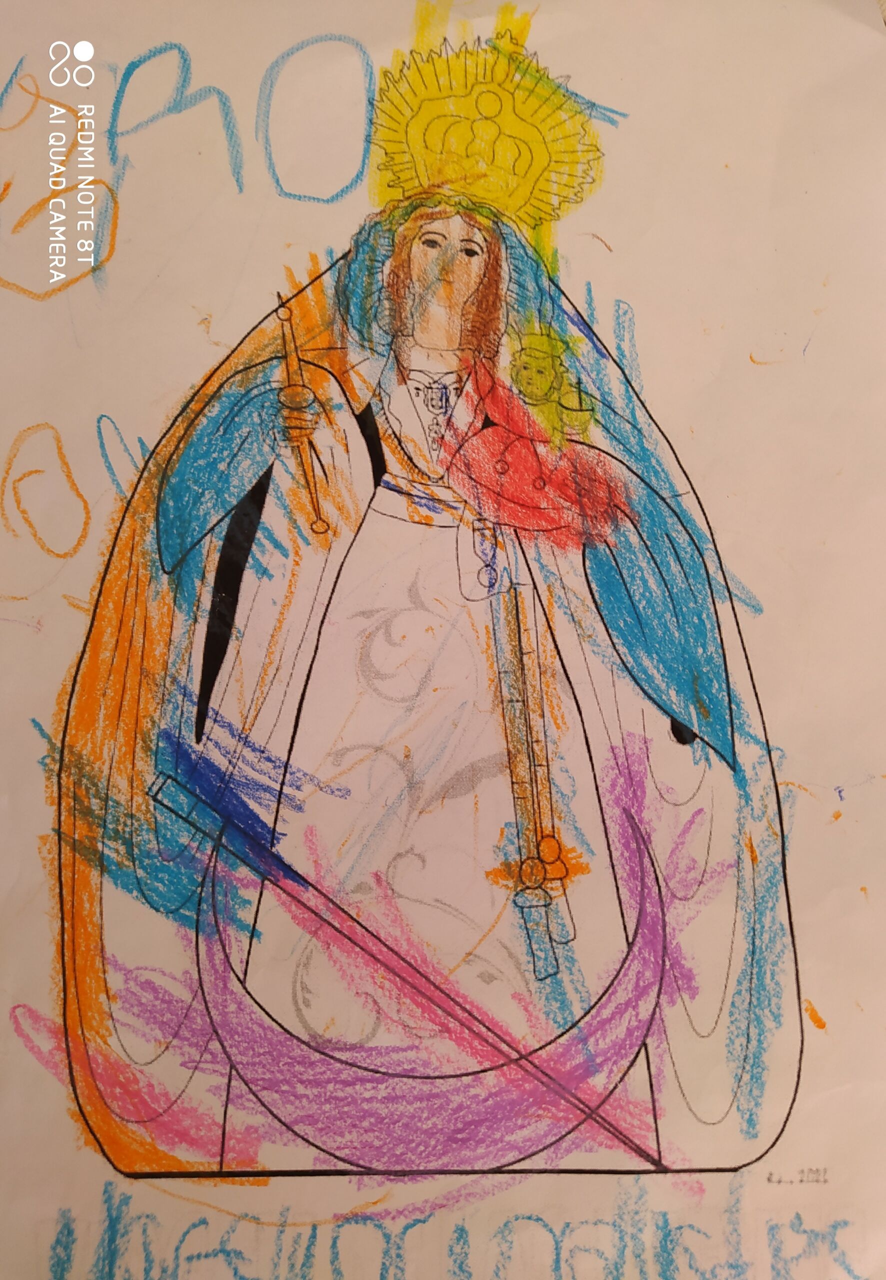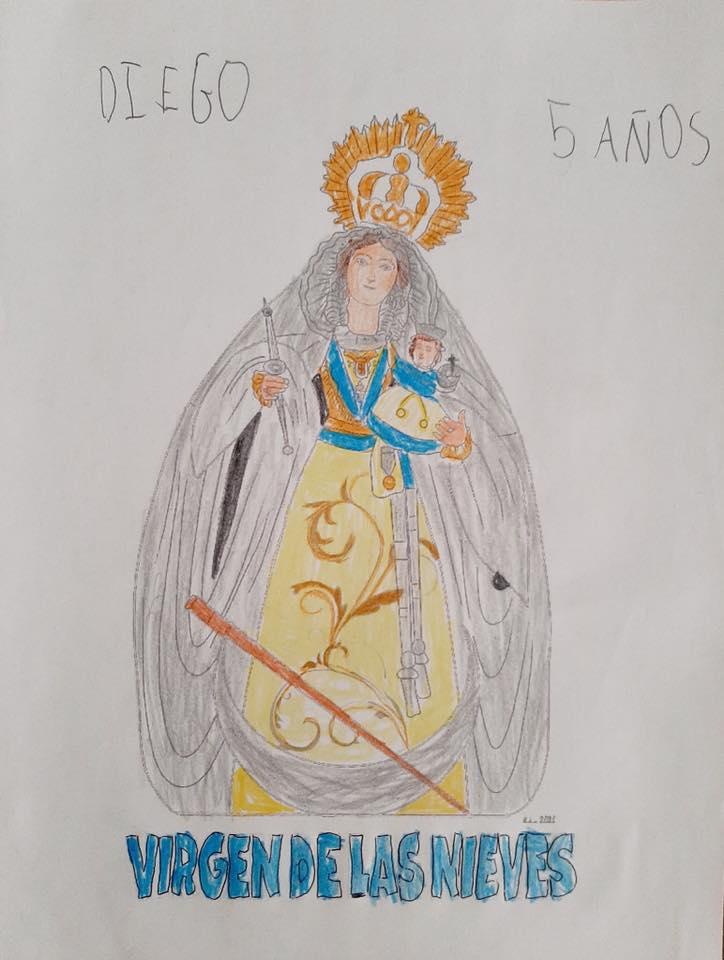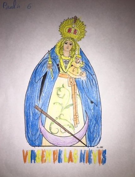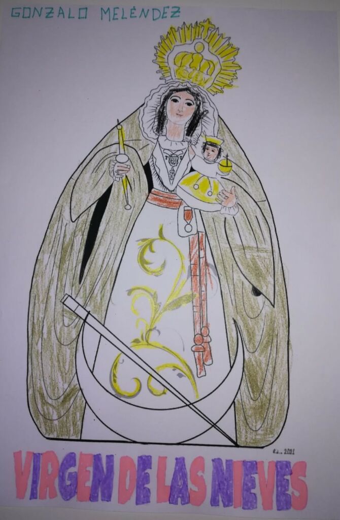 Como «regalos» para Ella, nuestro alumnado de Ed. Infantil y 1º Ciclo EP ha coloreado la imagen de la Virgen Ntra. Sra. de las Nieves, Patrona, Alcaldesa de Los Palacios y Titular de nuestro Centro.