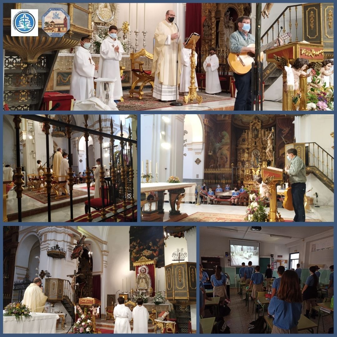 Dicha celebración fue presidida por nuestro Párroco y Director Espiritual D. Diego Pérez Ojeda y asistió el alumnado de 4º EP, que recientemente ha recibido el Sacramento de la Comunión, y 5º EP. El resto de cursos asistieron, desde sus aulas, por vía telemática a través del canal YouTube de la Parroquia.