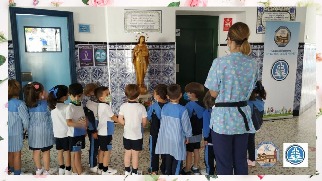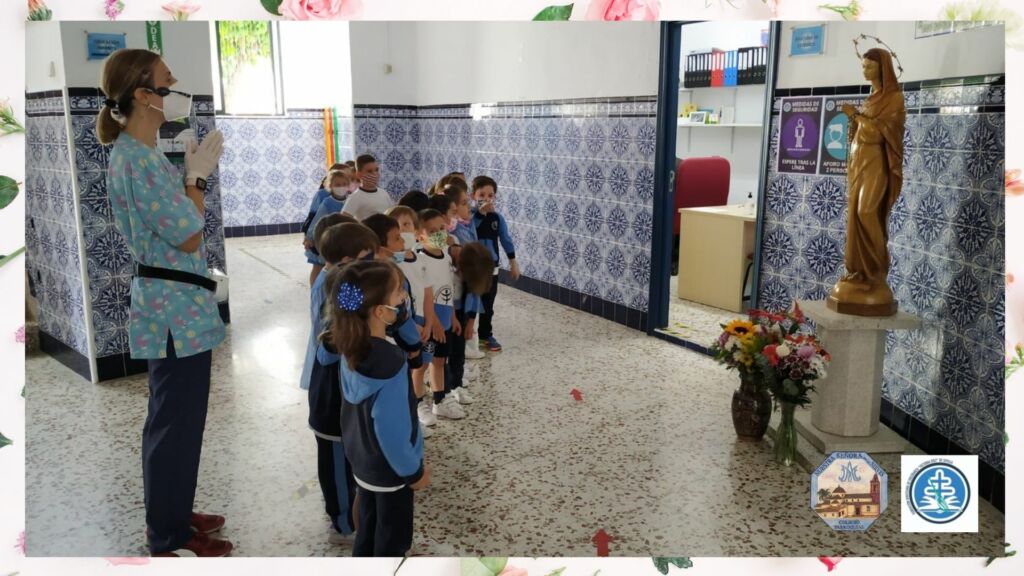 Cada día nuestro alumnado se reúne en torno a la imagen de la Virgen Inmaculada de nuestro colegio para rezar y cantar juntos en su honor.