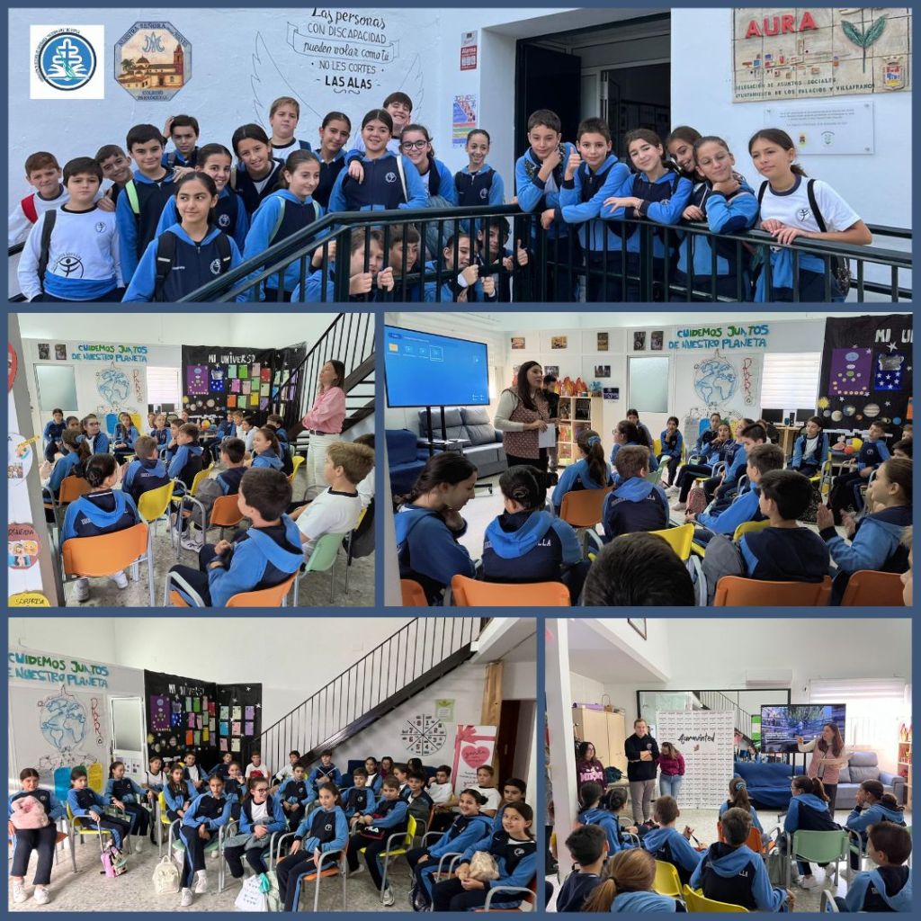 En esta ocasión a las jornadas de puertas abiertas de Aura acudían, en primer lugar, alumnos de sexto de primaria del Colegio Diocesano Nuestra Señora de las Nieves que atentamente asistían a todas las explicaciones que recibían sobre la asociación, las actividades que en ella se realizan y los objetivos que persigue desde su fundación.