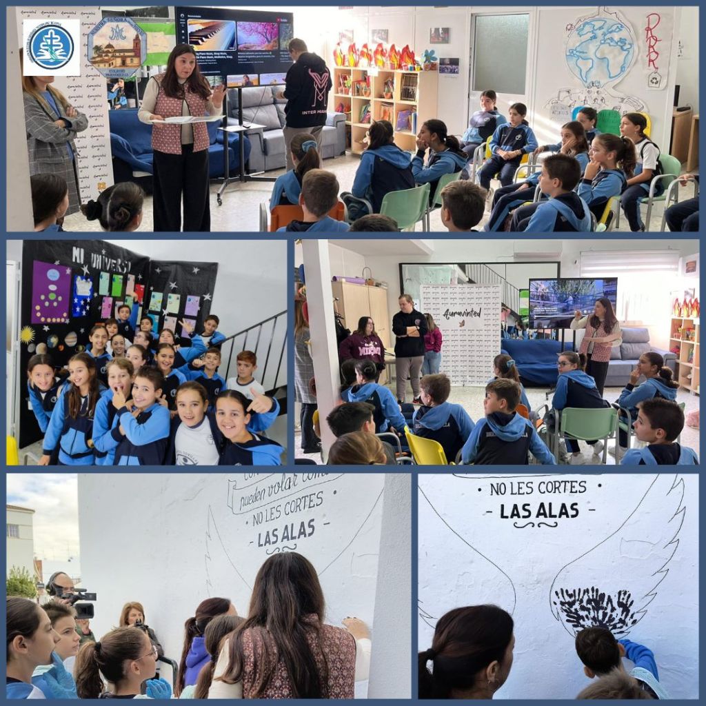 Esta actividad desarrollada en la sede de Aura que se encuentra en la Plaza de la Almazara ha contado también con la realización de un mural con el lema de la misma “Las personas con discapacidad pueden volar como tú. No les cortes las alas”, y donde los alumnos han podido dejar las huellas de sus manos, como reflejo de su participación.