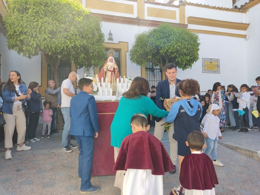 Como cada año por estas fechas, el pasado miércoles 29 de marzo, nuestro alumnado de Primaria realizó una ofrenda floral a las imágenes de los pasitos infantiles de la procesión organizada por el Colegio Palenque.