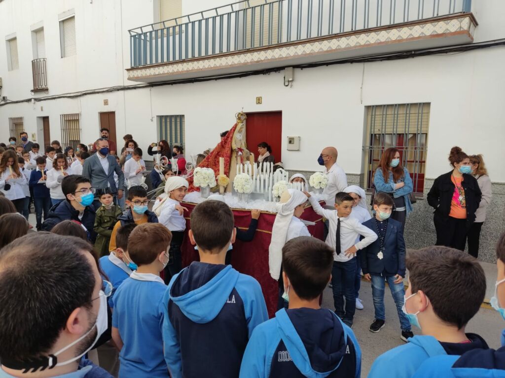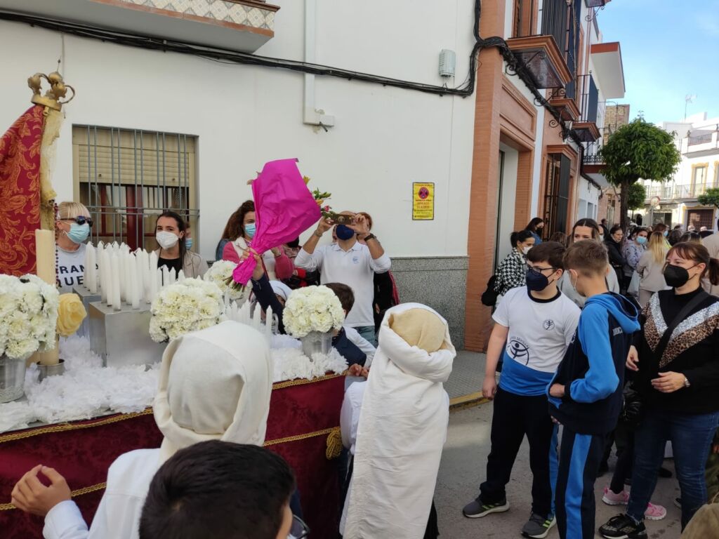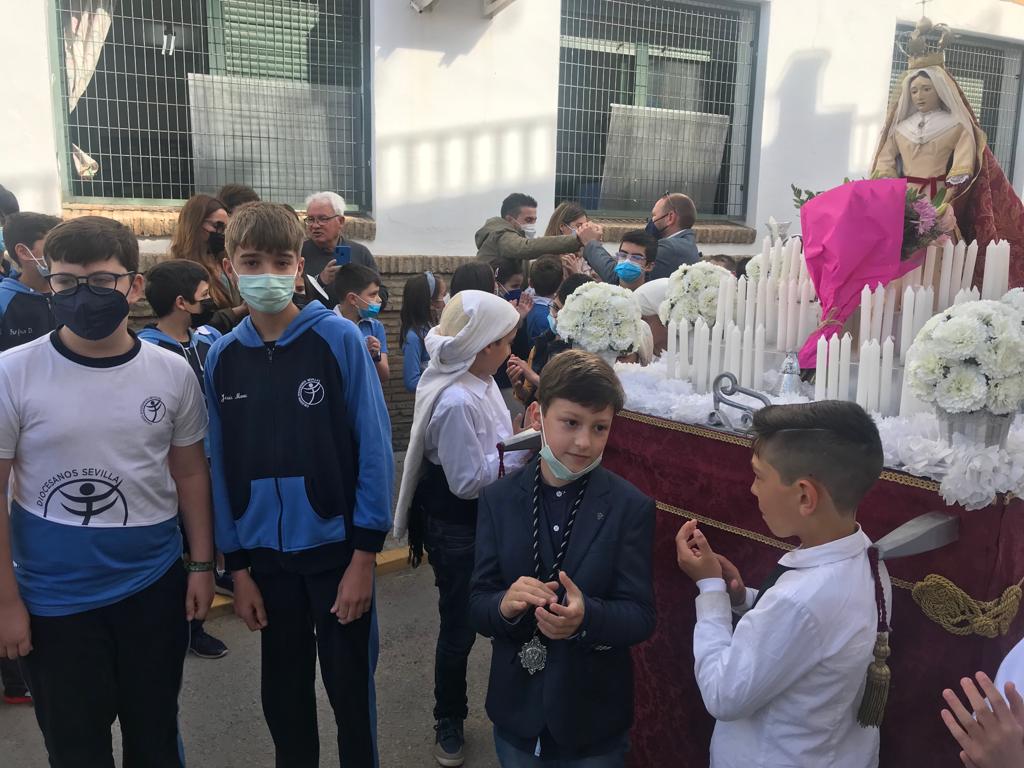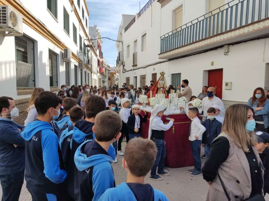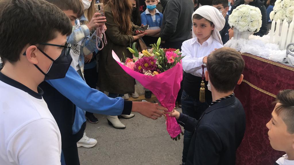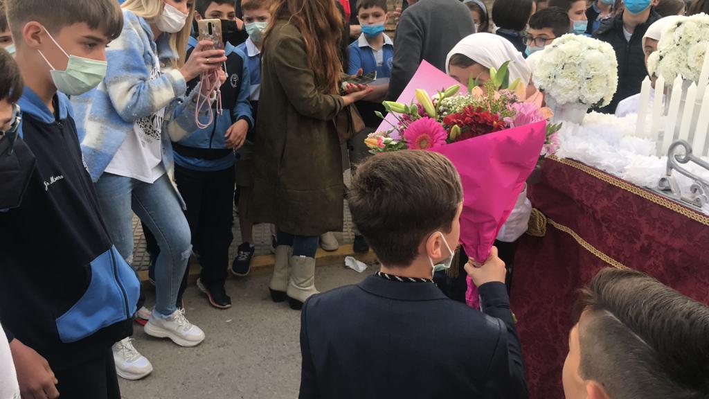 Como cada año por estas fechas, el Viernes de Dolores, nuestro alumnado de Primaria realizó una ofrenda floral a las imágenes de los pasitos infantiles de la procesión organizada por el Colegio Palenque.