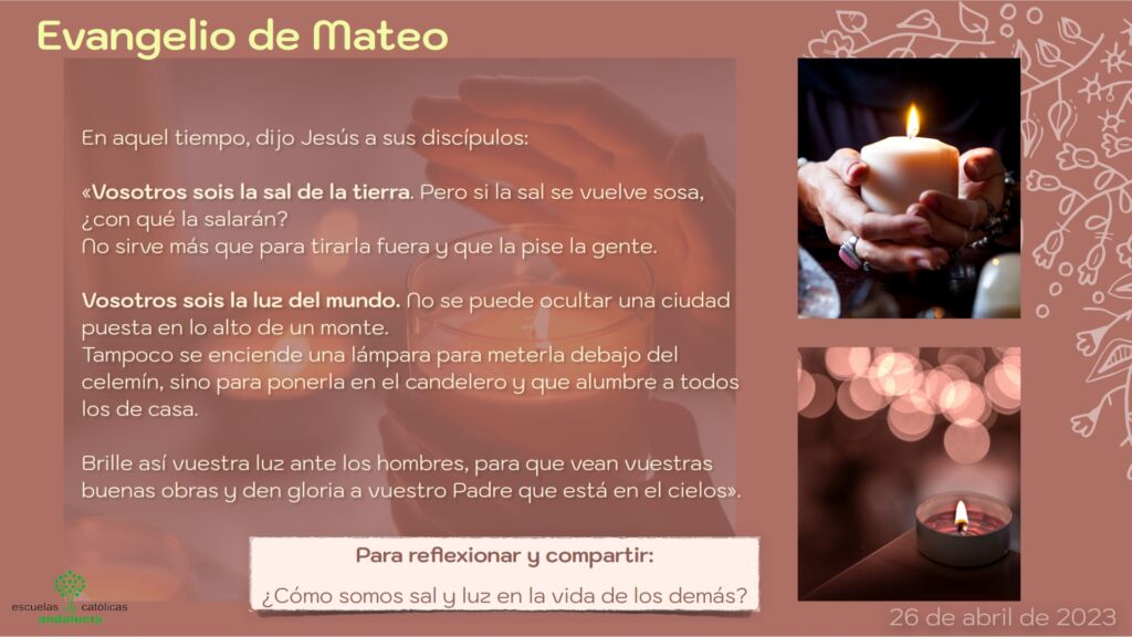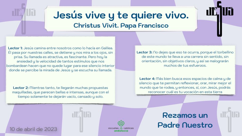 Os presentamos, unas oraciones que el profesorado utiliza cada jornada para hacer reflexionar y orar al alumnado.