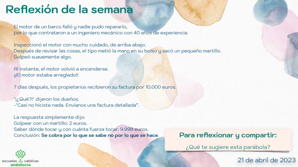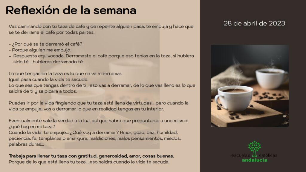 Se trata de parábolas, cuentos, apuntes sobre algún acontecimiento especial, fragmentos de la Palabra de Dios o cualquier texto que pueda servir para provocar el pensamiento, la contemplación y el alimento de nuestro espíritu y nuestra fe.